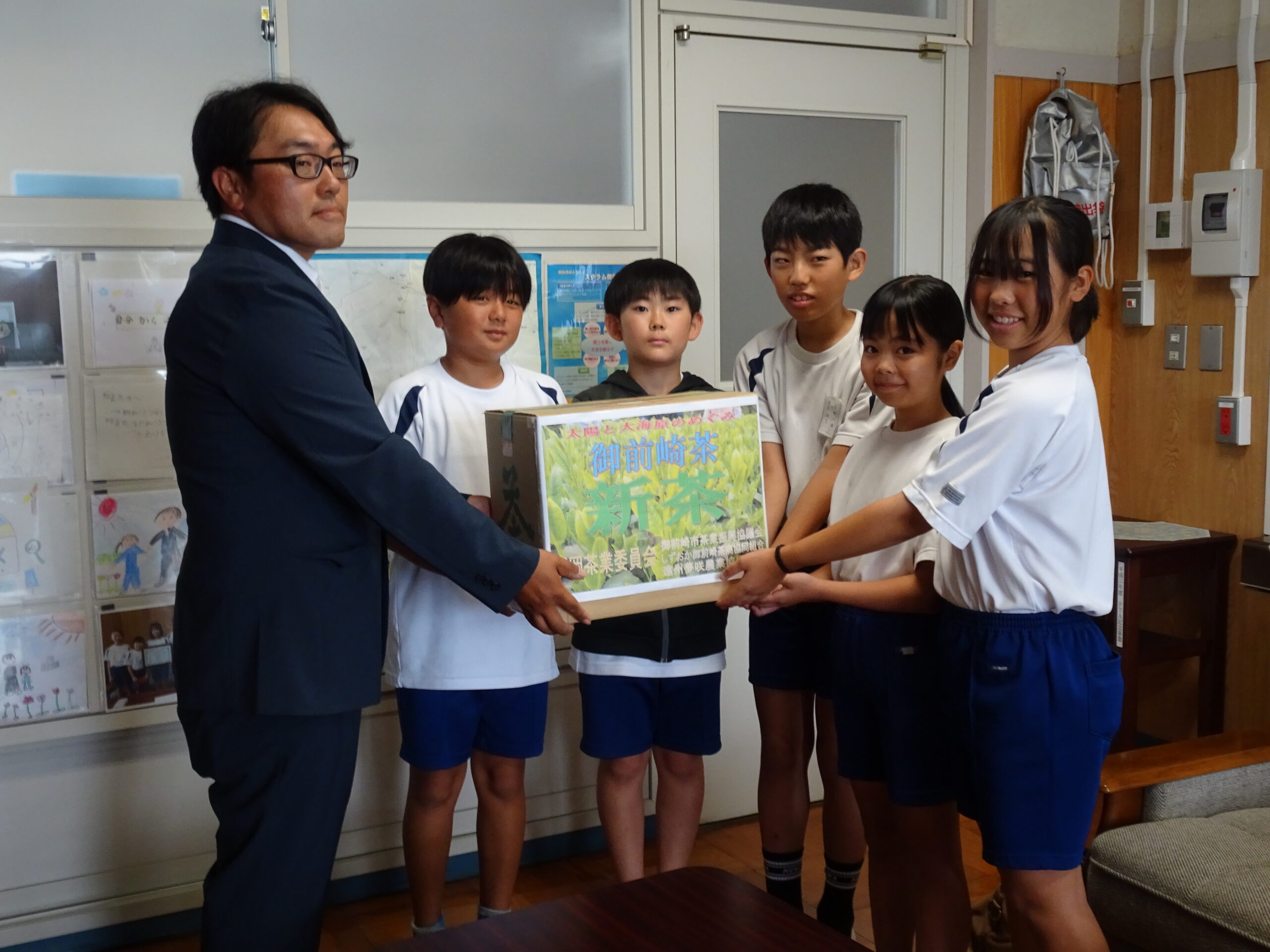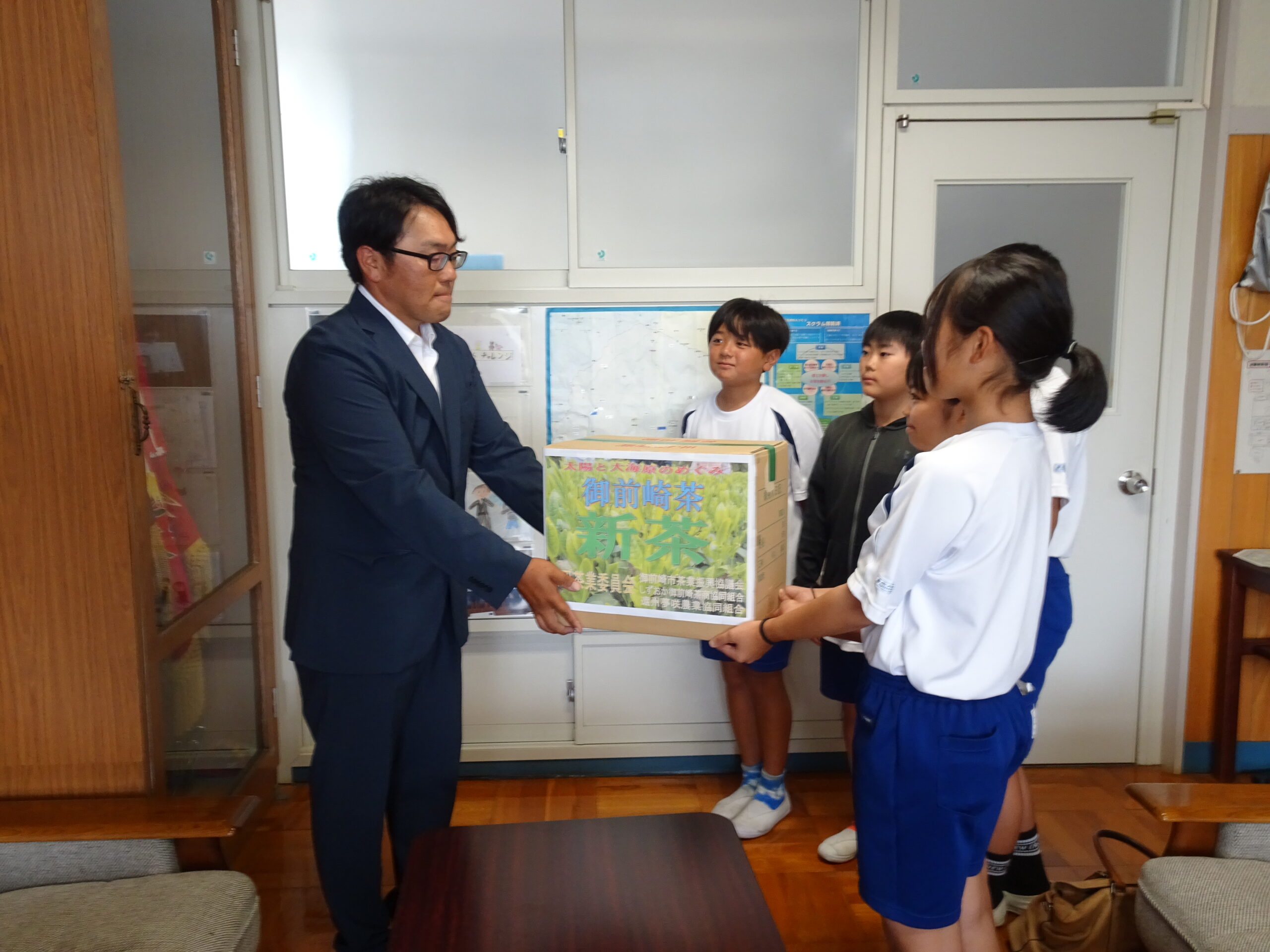 おいしいお茶をいただきました 2025/07/04 浜岡茶業委員会さんからお茶をいただきました。 北小学校の子供たちは、お茶が大好きで水筒の中身がなくなると冷茶機のお茶で水分補給をしています。 「学校のお茶が一番おいしい!」と言っている子もいます。 今日はおいしいお茶がいただけたので、これからが楽しみですね。 茶業委員会の皆さん、ありがとうございました。