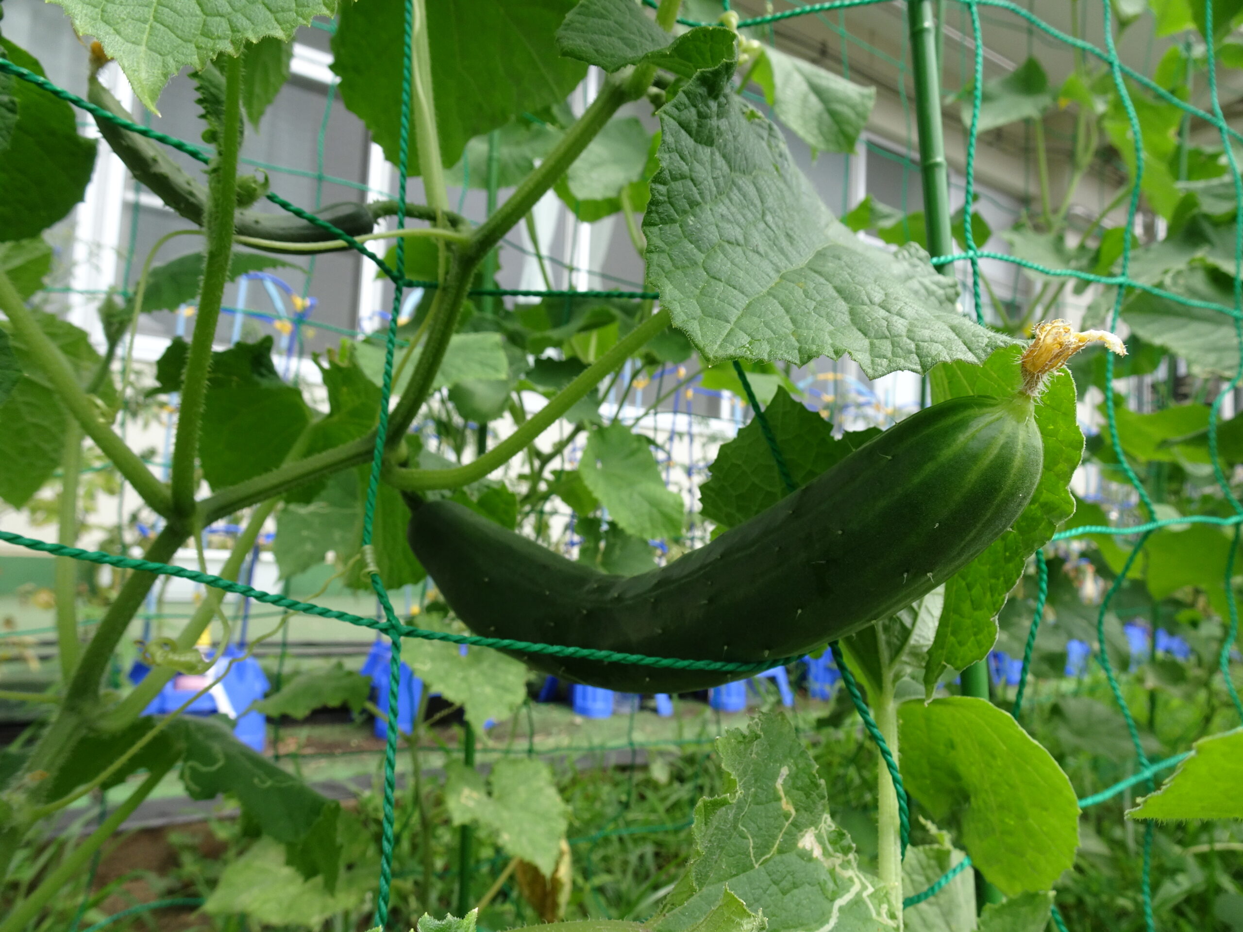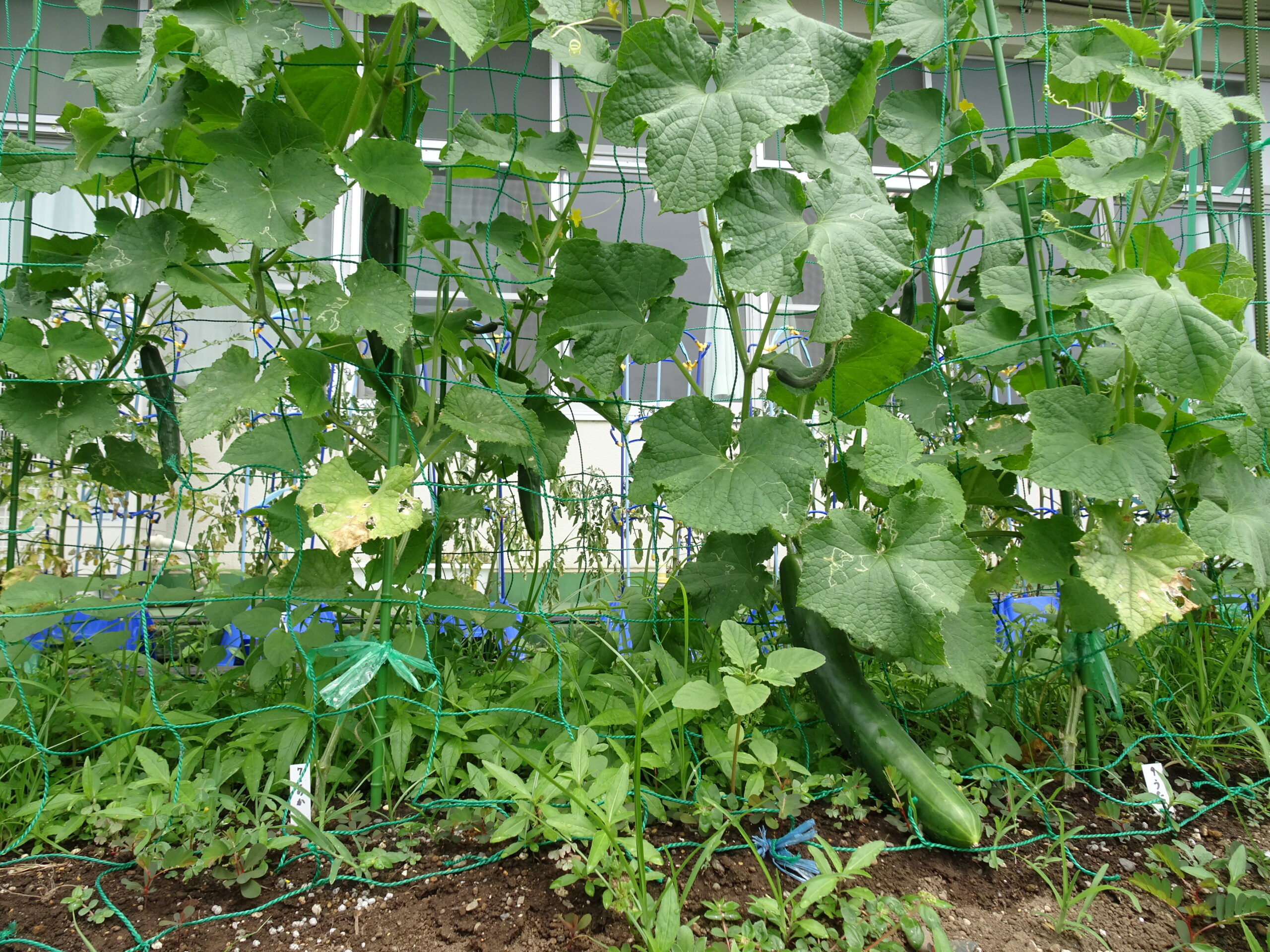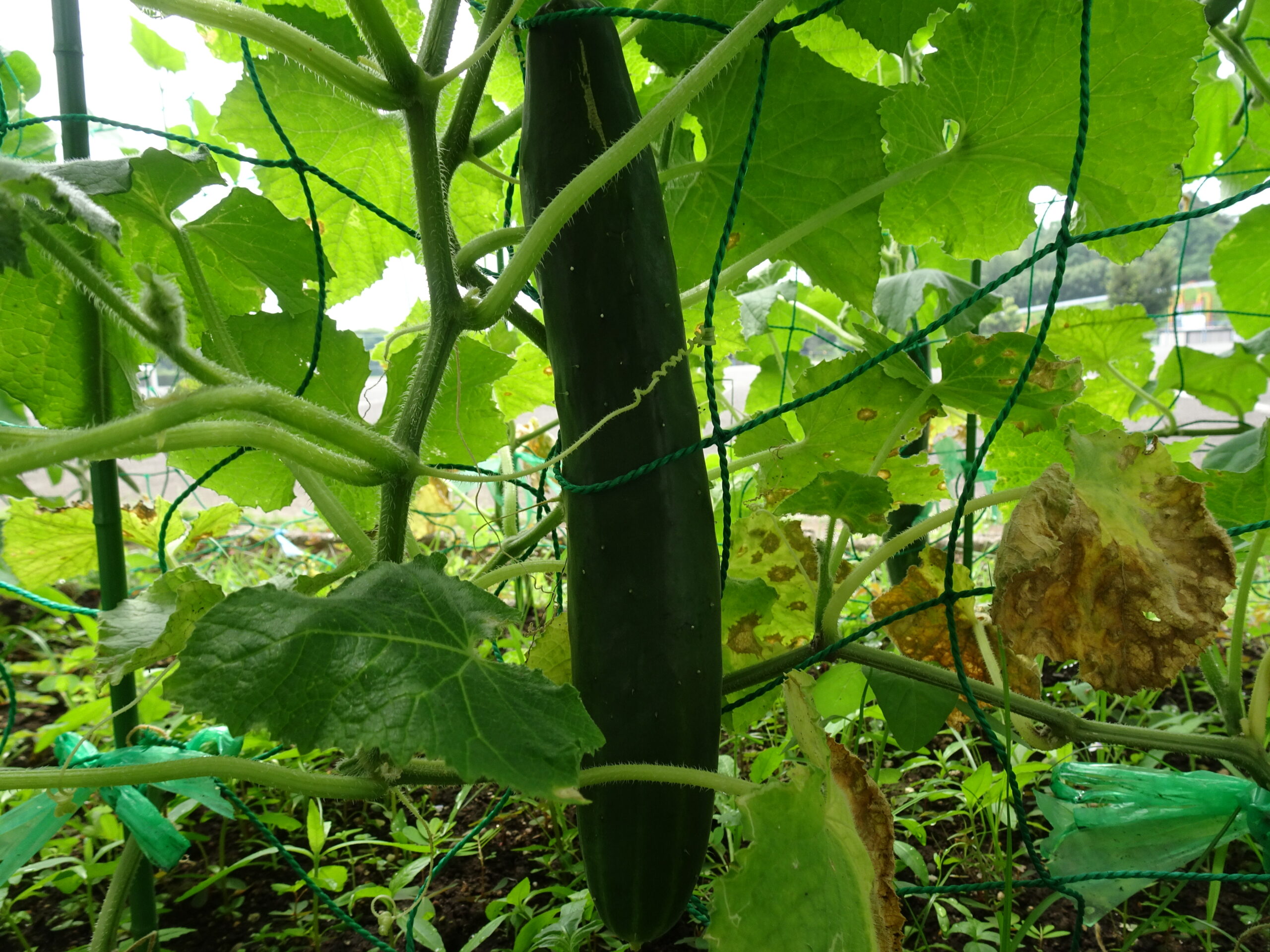 今朝、登校してみると 2025/07/07 土日で、キュウリが急成長です。 「こんなに大きくなっている!!」 「金曜日は全然なかったのに、今日来てみたら、ぼくのもキュウリがなっているよ」と驚きの声が響いていました。 一日でどのくらい大きくなるのかな??