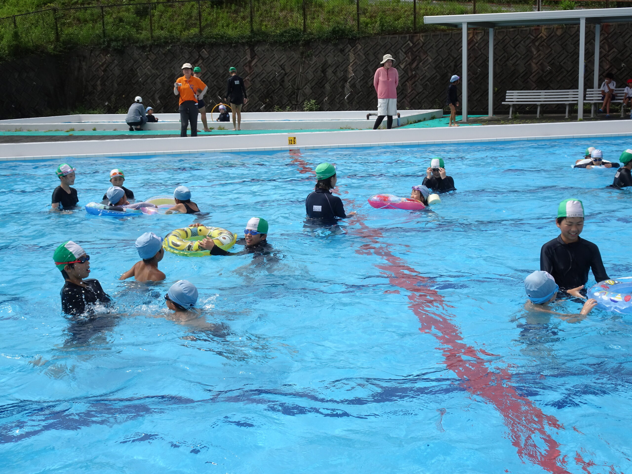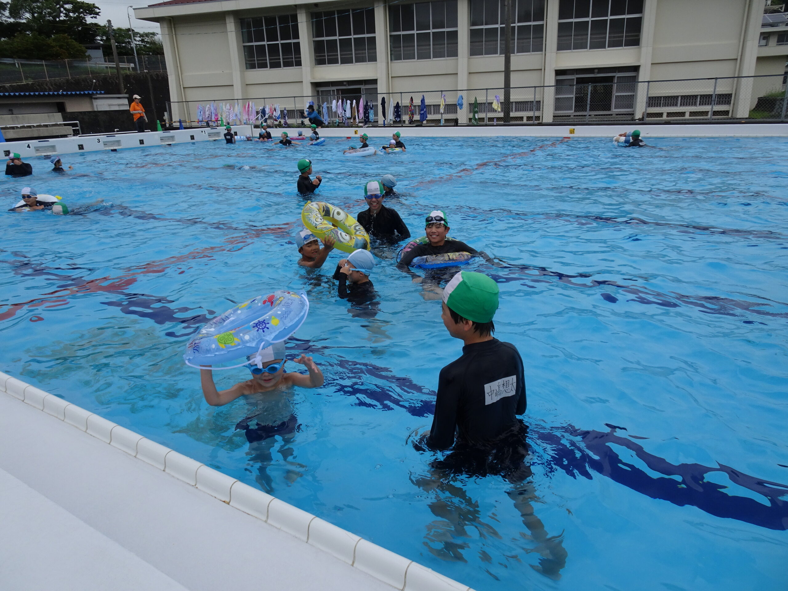 1年生は、仲良しの6年生と一緒に入れると、朝からワクワクの様子でした。1年生を見守る6年生のまなざしが優しく、浮き輪や手を持って支えてあげる姿はさすがでした。