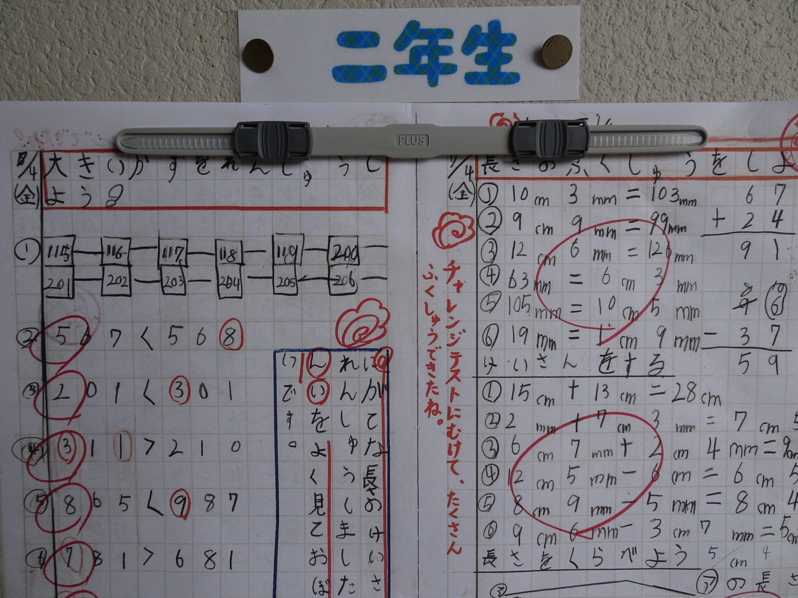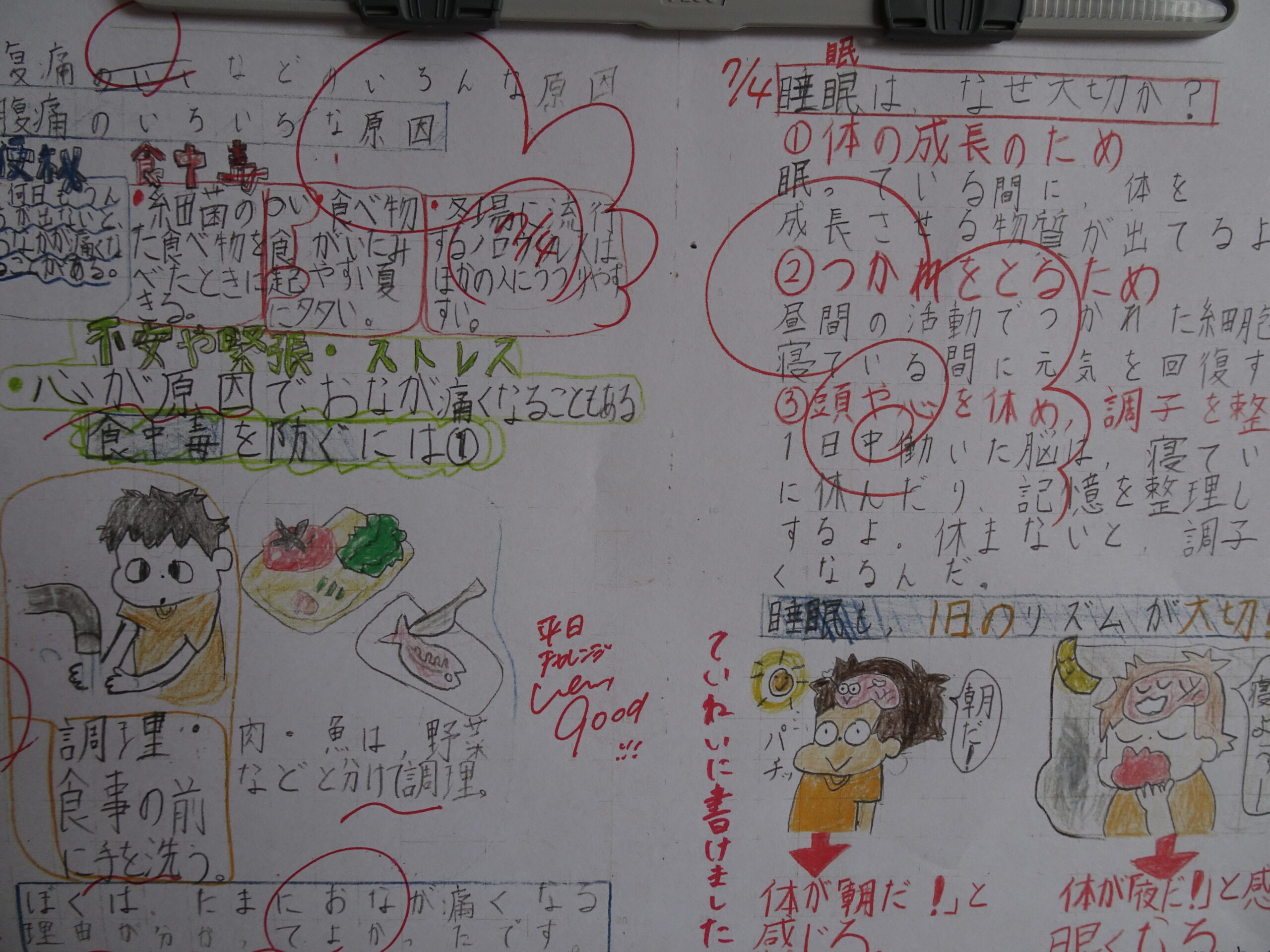 チャレンジ学習の様子が掲示されてるよ 2025/07/17 校長室前の掲示板に、家庭学習ノートが貼られています。他の子のチャレンジ学習を参考にして、学習方法を学ぶためです。 ノートを見ているといろいろな工夫がされていることがわかるし、どんなことに興味を持っているかもわかって、とても楽しいです。 ここに掲示されている子以外のノートも、たくさんの工夫とがんばりがあって、感動です。