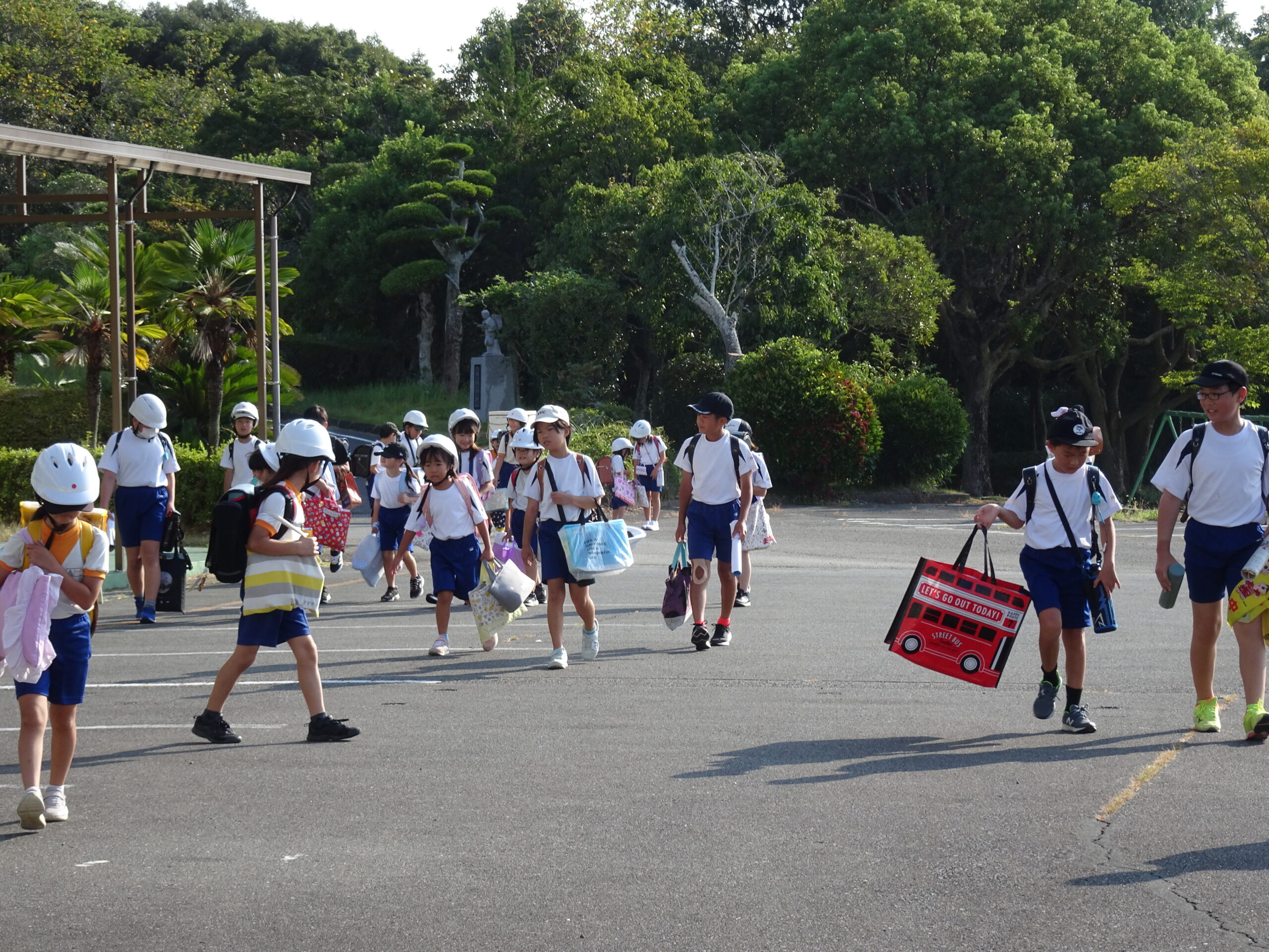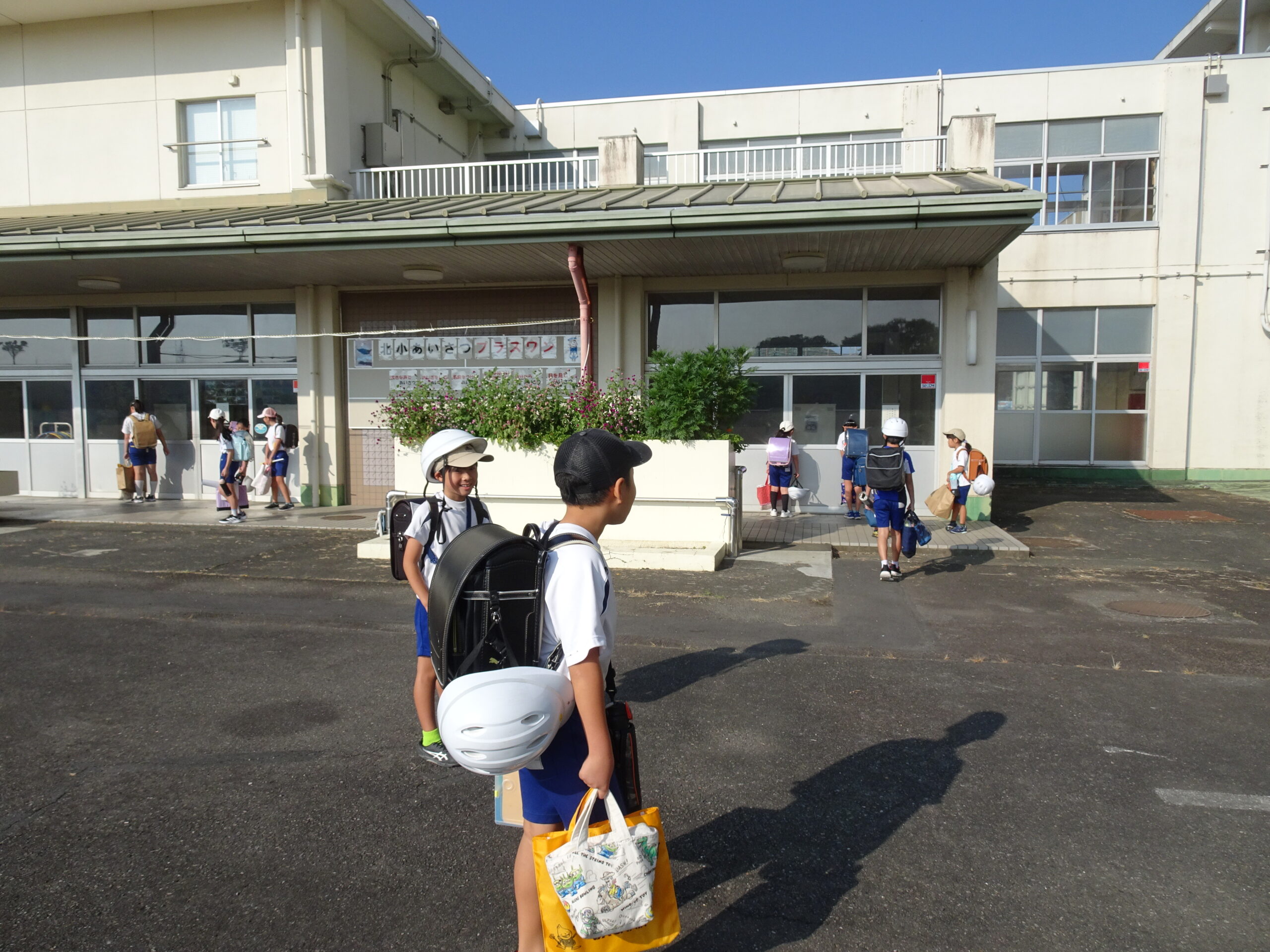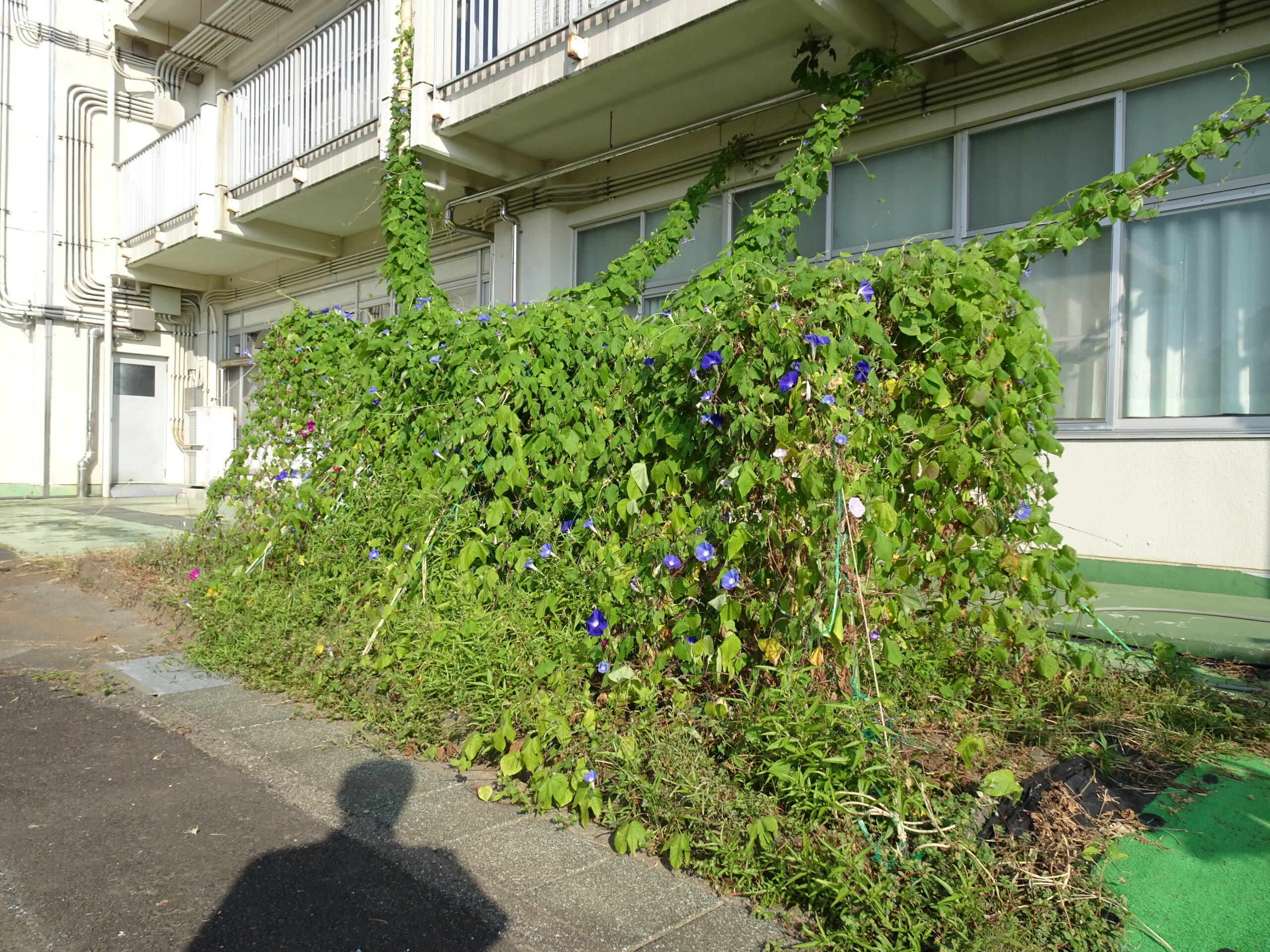 新学期のスタートです 2025/08/27 夏休みが終わり、今日から新学期が始まりました。 まだまだ暑いですが、元気に登校できていました。今日は夏休みの間にやった宿題や制作した作品を持ってきたので、荷物がいっぱいで大変でしたね。 1年生が育てていた、アサガオは夏休み中も元気いっぱいで、こんな感じに成長しています。