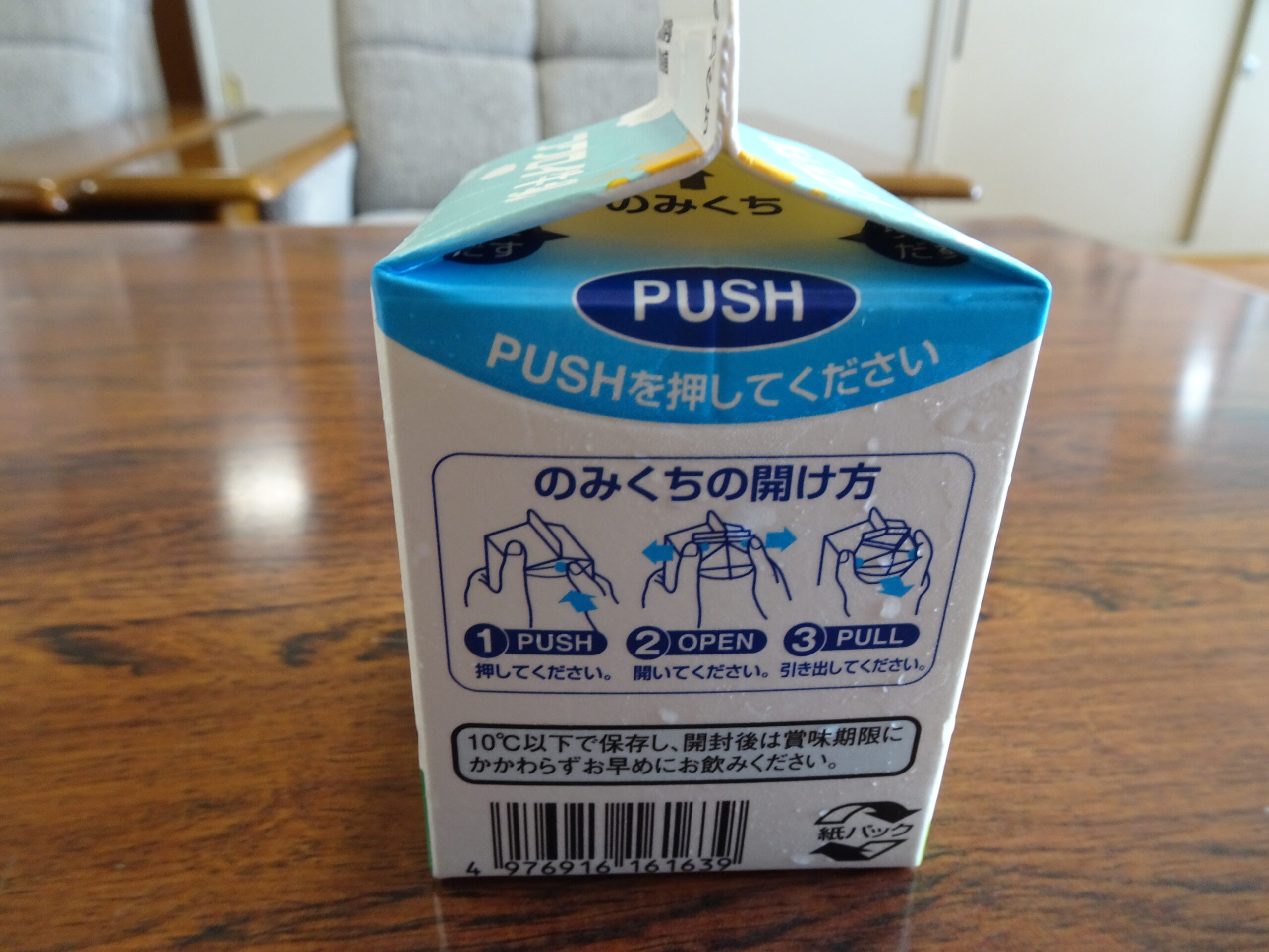 それは、牛乳パックです!!今までのストローをさして飲むタイプではなく、写真のように飲み口を開いて飲むタイプになりました。