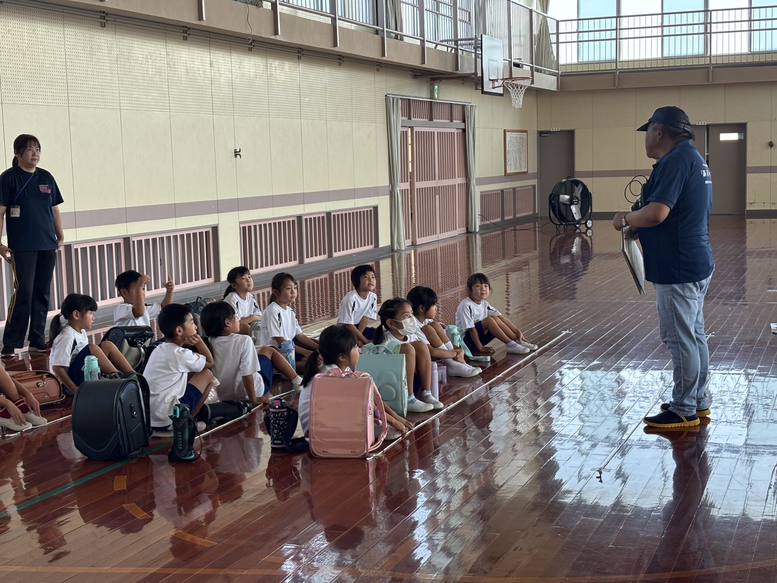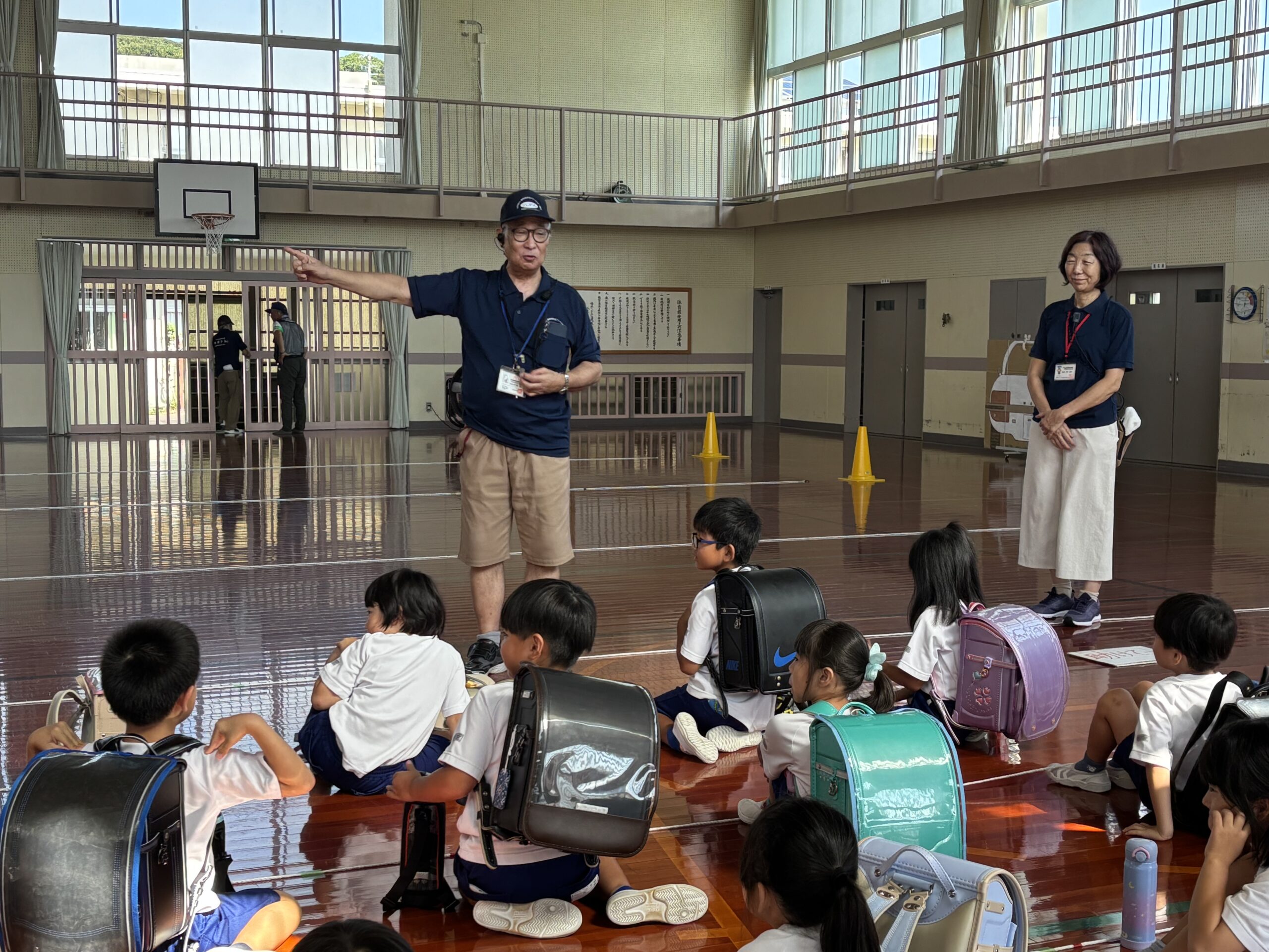 【1・2年生】あぶトレ! 2025/09/17 1・2年生が、子どもの体験型防犯講座の「あぶトレ!」を受けました。 一つしかない大切な命を自分で守るために、「いや」「「助けて」などの声の出し方などを教えてもらいました。 みんな実際の場面を想定して、一生けんめい取り組んでいました。