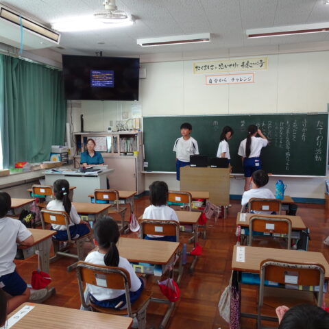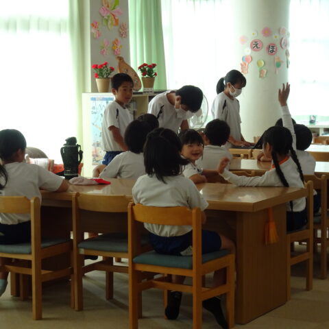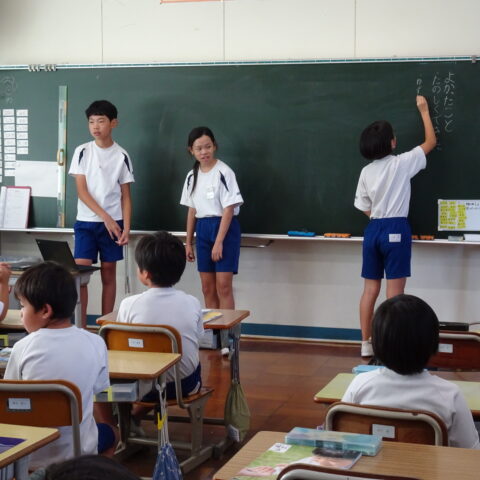 たてわり活動のふり返りをしたよ 2025/09/25 今日のにこにこタイムのたてわり活動は、ふり返りでした。 1年生もみんなの前で自分の考えが言えて、すばらしかったですね。 みんなが楽しめるようにするにはどうしたらいいかなと、みんなで真剣に考えることができました。