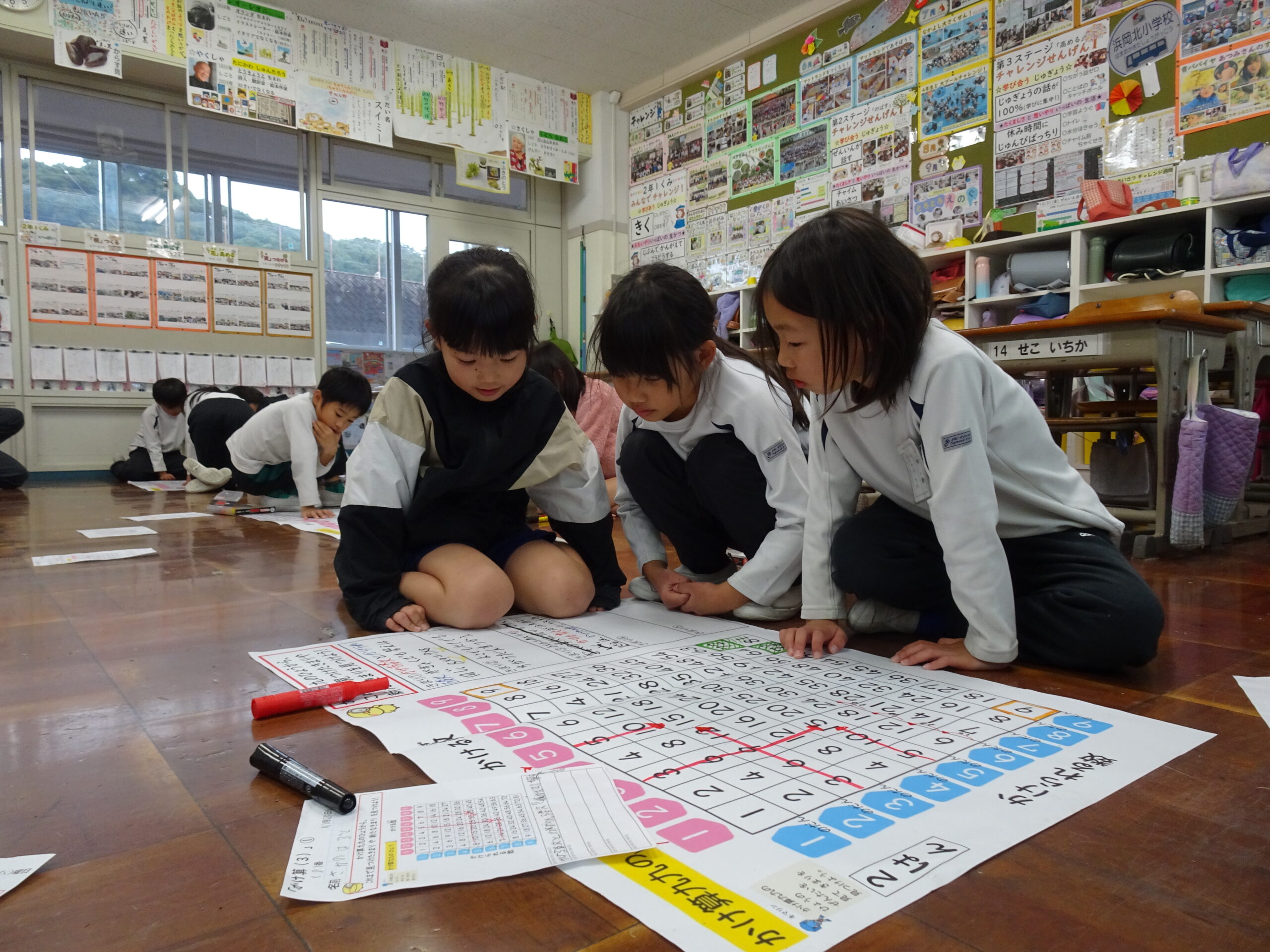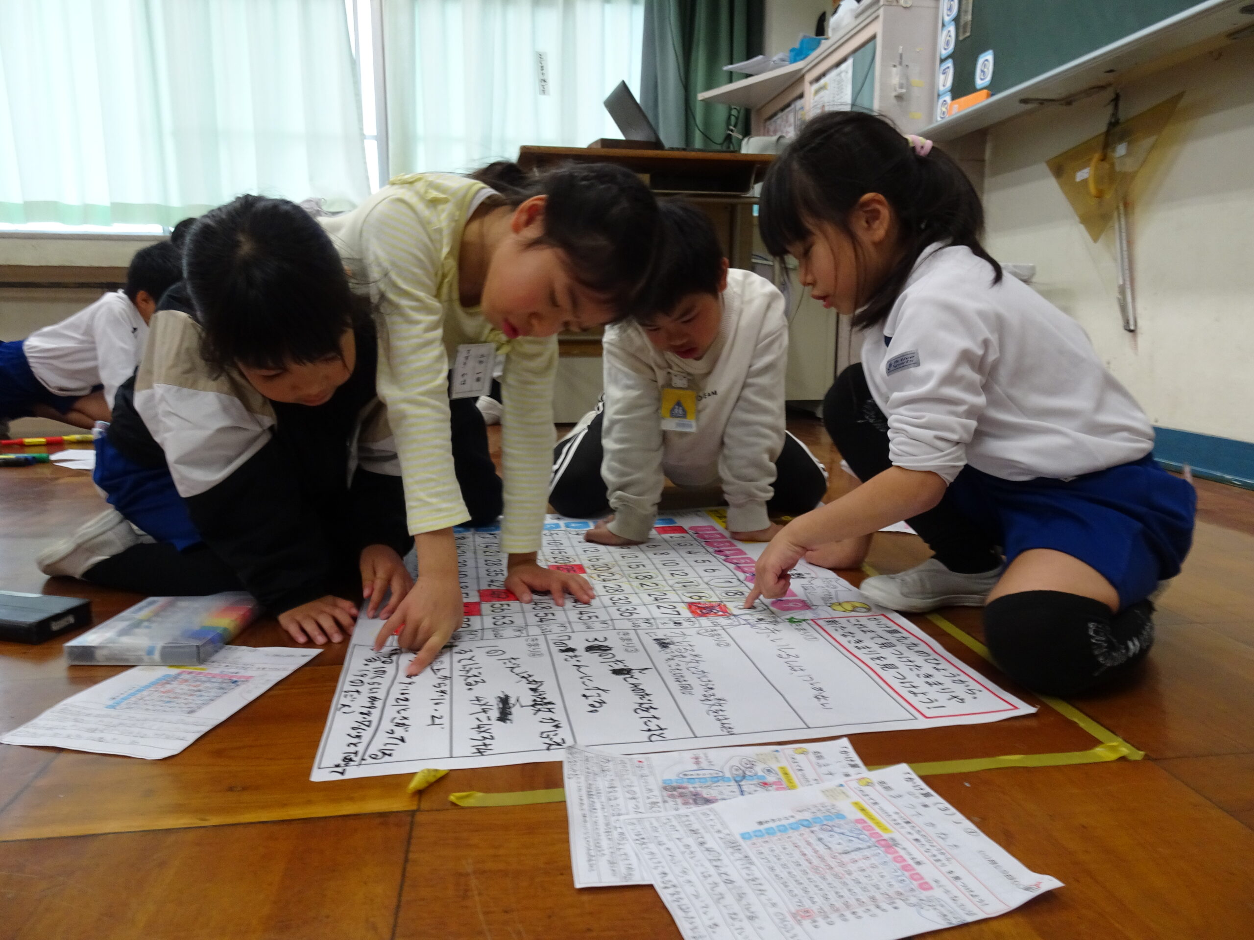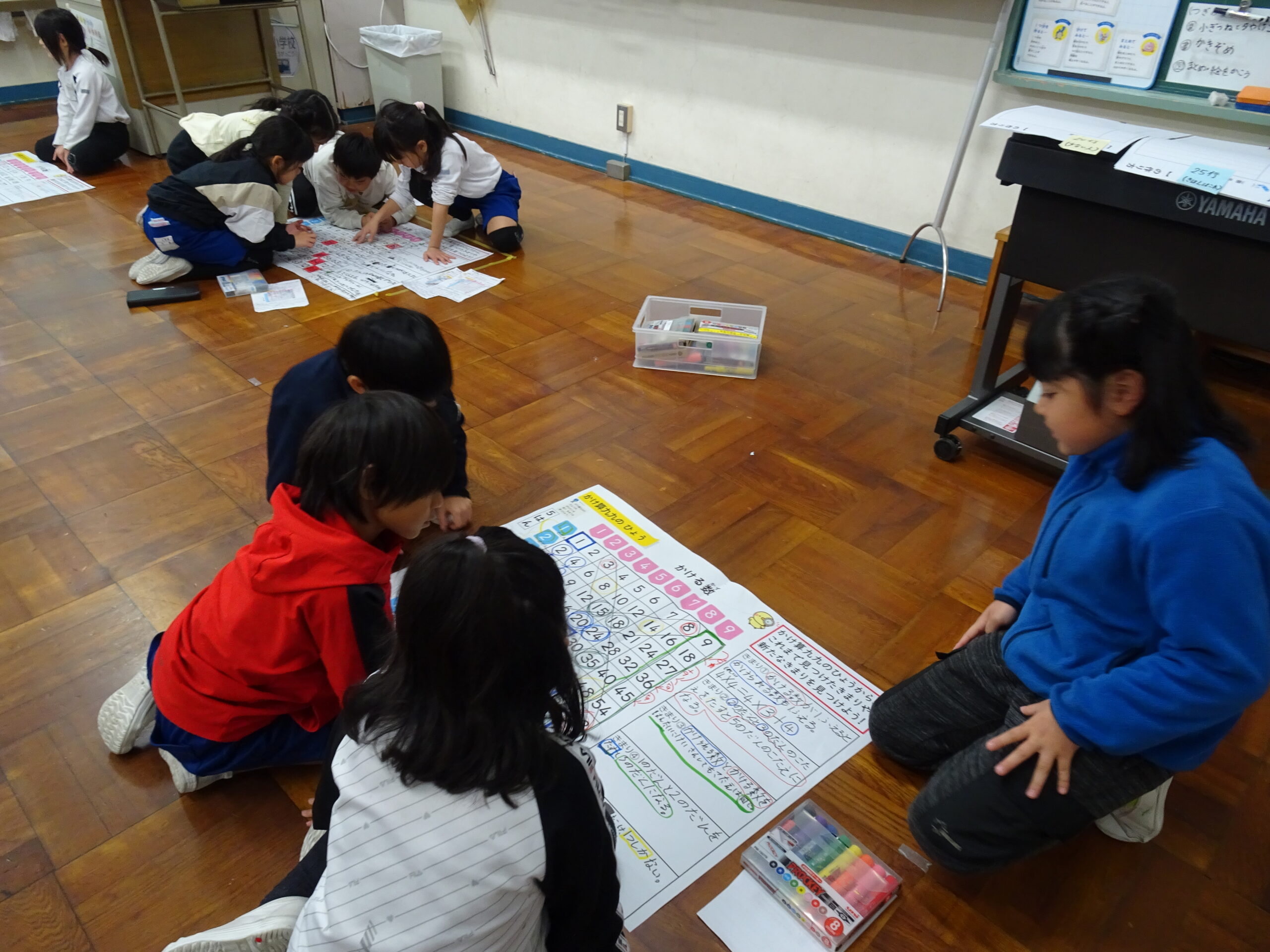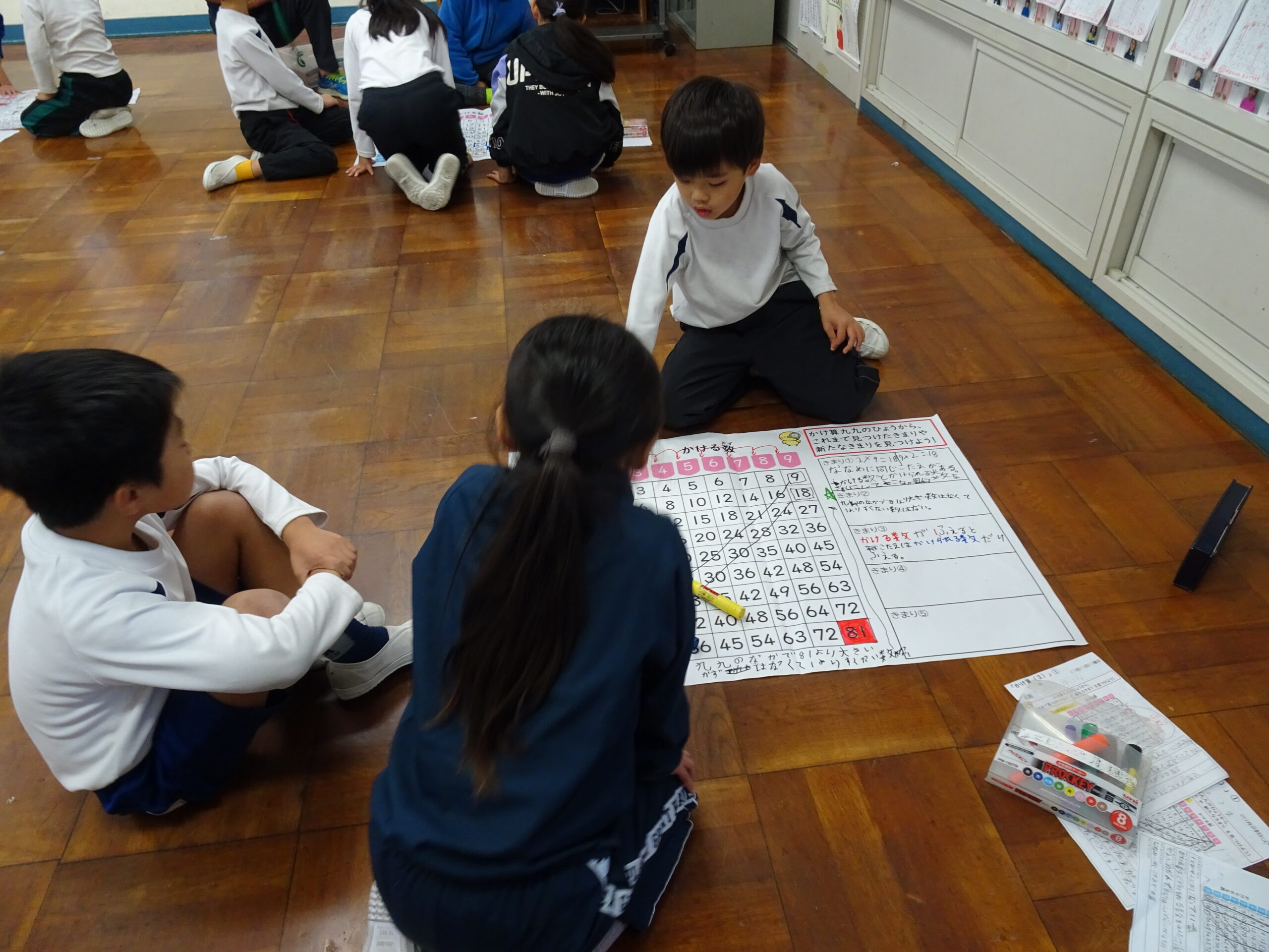 【2年生】あらたなきまりを見つけよう! 2025/11/28 2年生が算数の時間にかけ算の表からきまりを見つける学習をしていました。 今回は、仲間と協力してきまりを見つけるだけでなく、他のグループの子にわかりやすく説明することにもチャレンジしました。 上手に説明するのはむずかしいらしく、「今のでわかった??」と何度も確認をする様子がほほえましかったです。 今からこのような活動にチャレンジしていけば、今後が楽しみです。