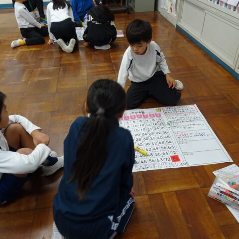 2年生が算数の時間にかけ算の表からきまりを見つける学習をしていました。