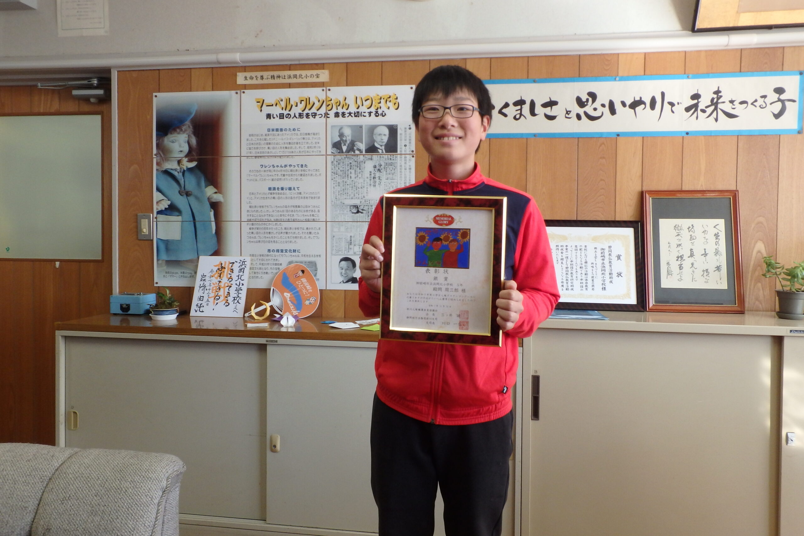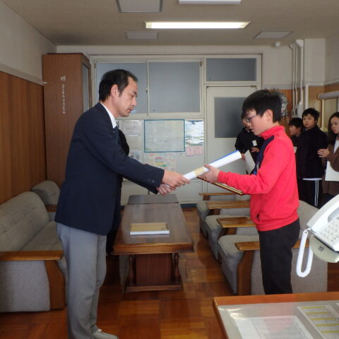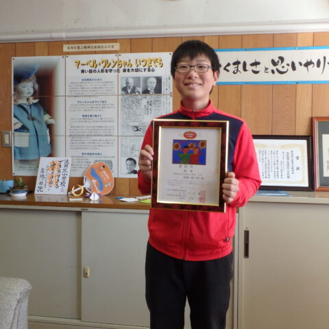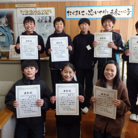 良い笑顔がいっぱいです 2025/12/15 今日の昼休みに、校長室で、よい歯表彰と人権ポスターの表彰がおこなわれました。 表彰の時は、緊張感のある態度で賞状を受け取り、そのあとはみんな素敵な笑顔を見せてくれました。 おめでとうございます!