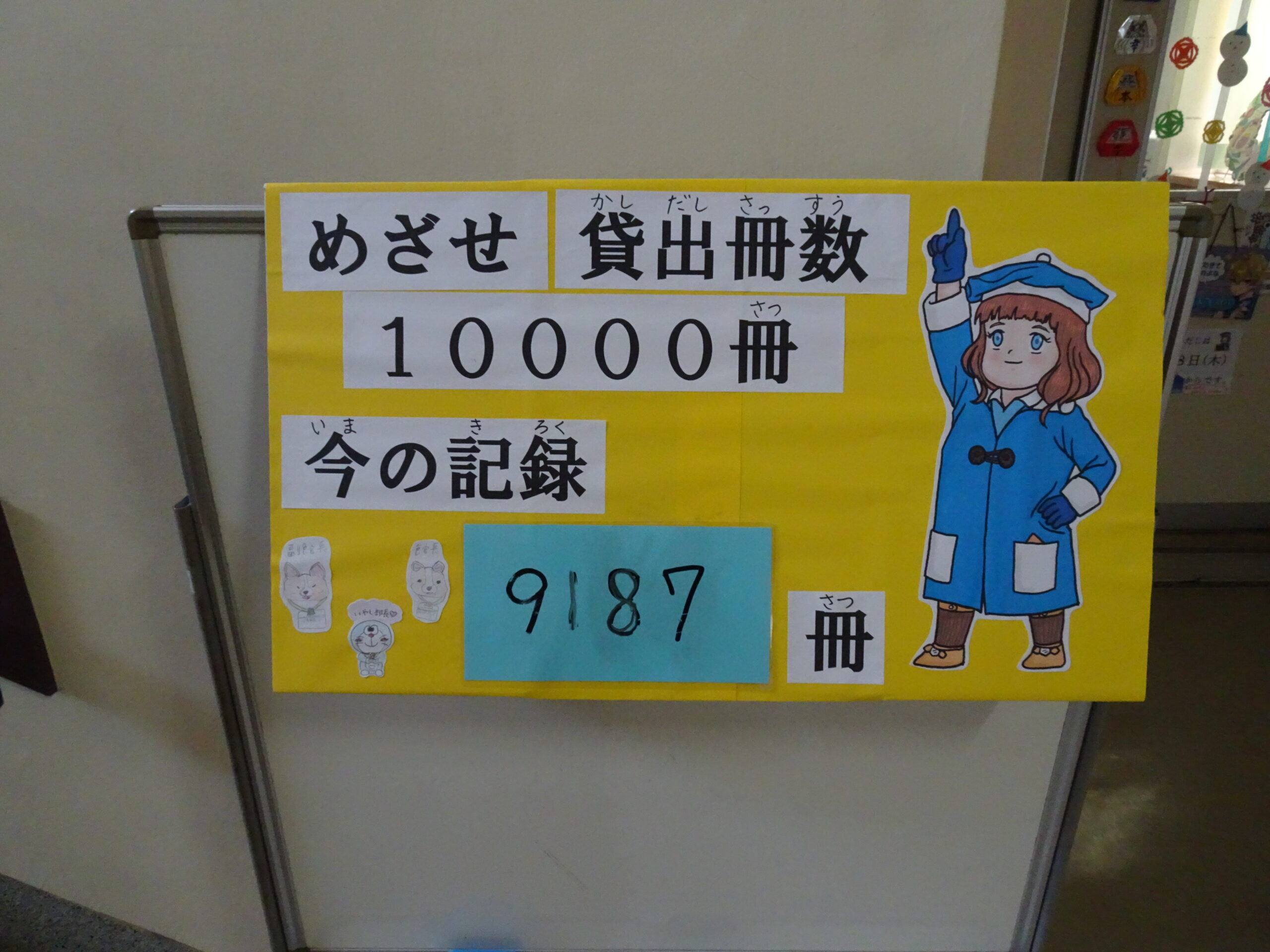 10000さつまで、あと少し 2026/01/13 図書館の前に、4月からの貸し出し冊数がはり出されていました。 その数は、なんと9187冊です!! 北小学校の子供たちは本が大好きで、毎週の読み聞かせや定期的にアスパルの人たちが来てくれるのを、いつもみんな楽しみにしています。 そのような環境のおかげで、図書館に行くのを楽しみにしている子もたくさんいます。 10000冊もすぐに突破しそうですね。