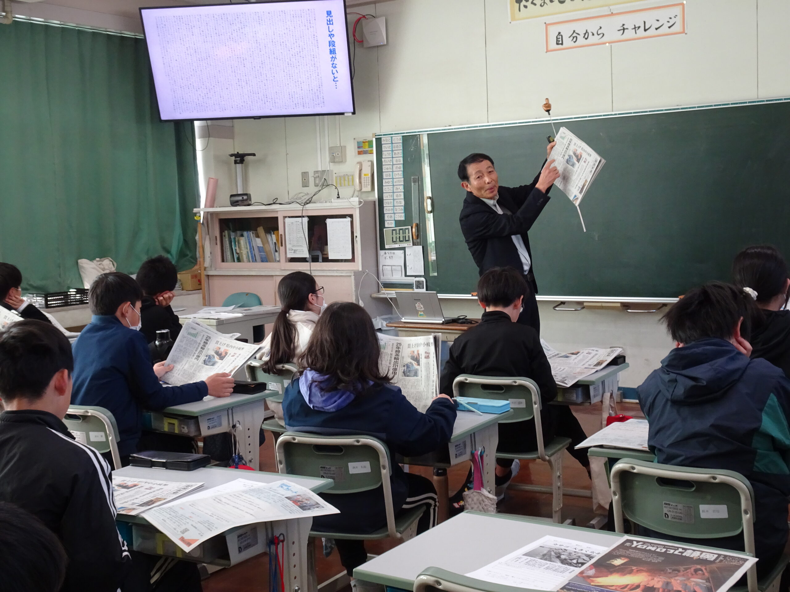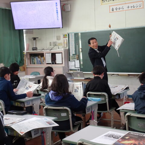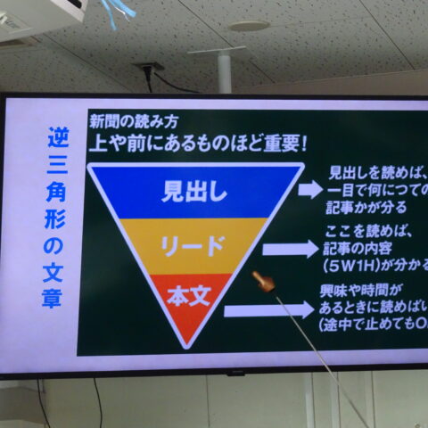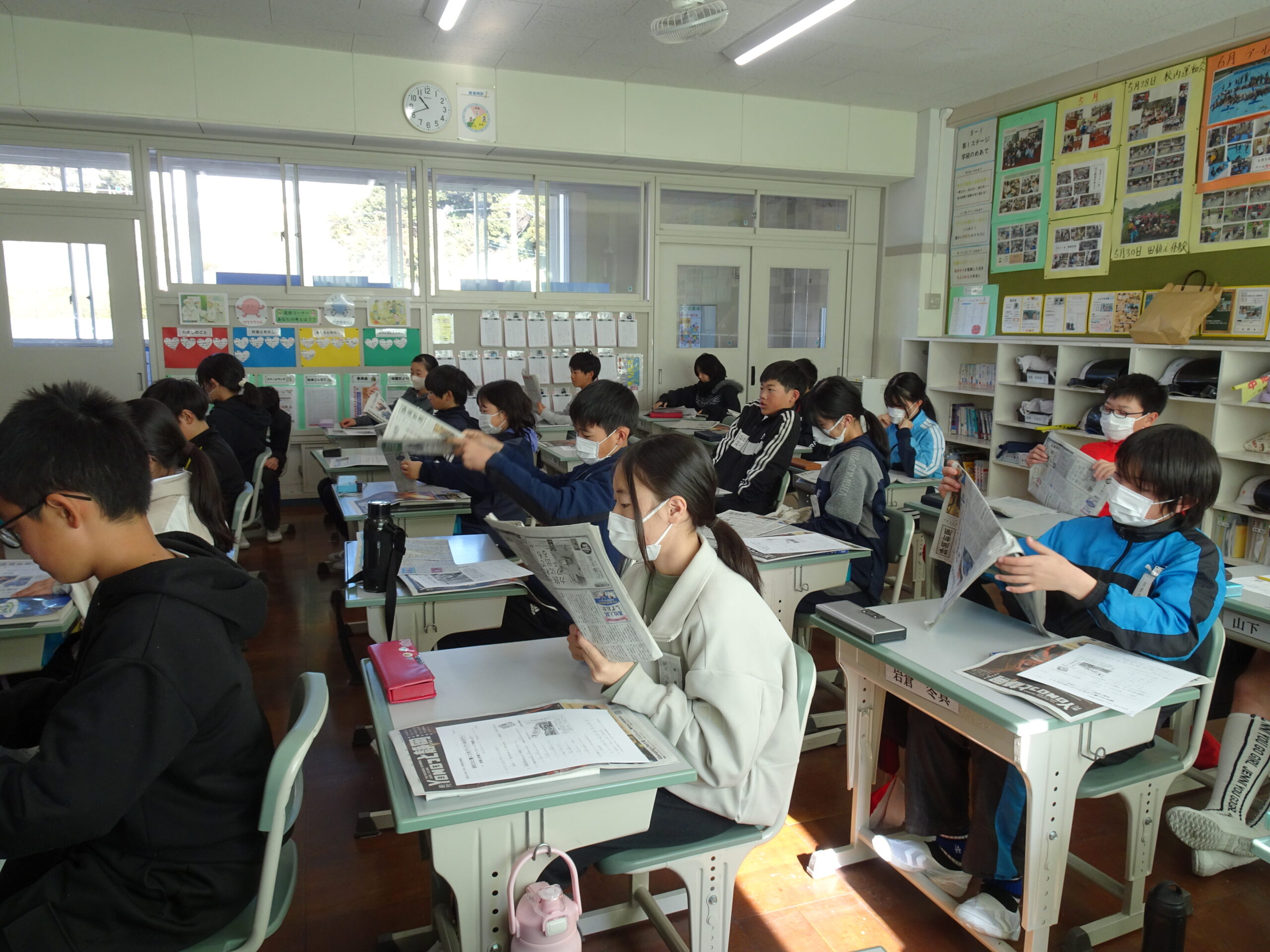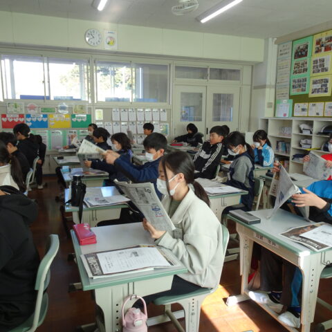 5年生の授業は、新聞を使って、文章を読むときのコツを教えてもらいました。
