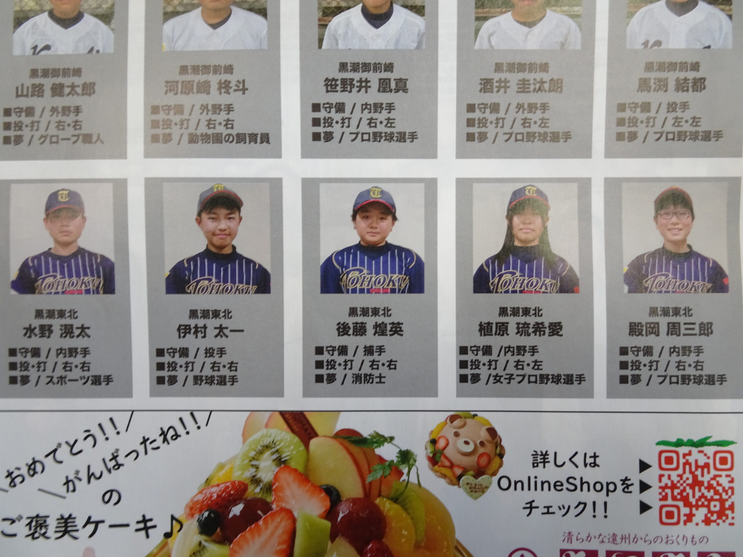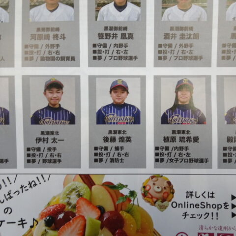「ジュニアアスリート掛川」に野球の御前崎支部オールスター出場選手として、北小学校の5人が紹介されています。
