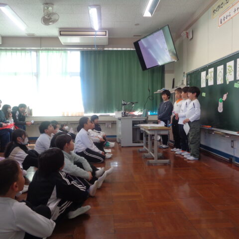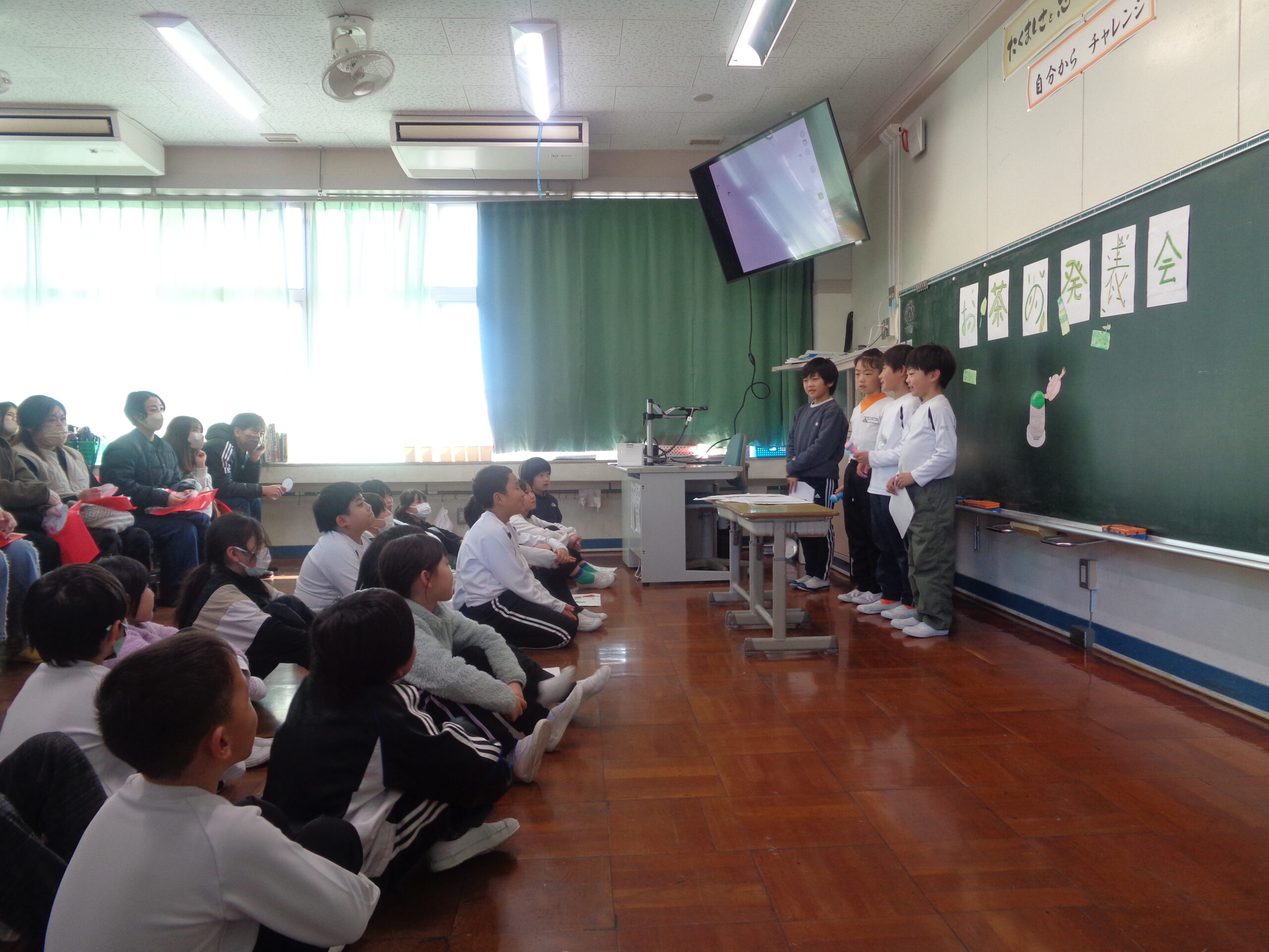 1~3年生の授業参観会では、子供たちが1年のがんばりや学習の成果を発表しました。