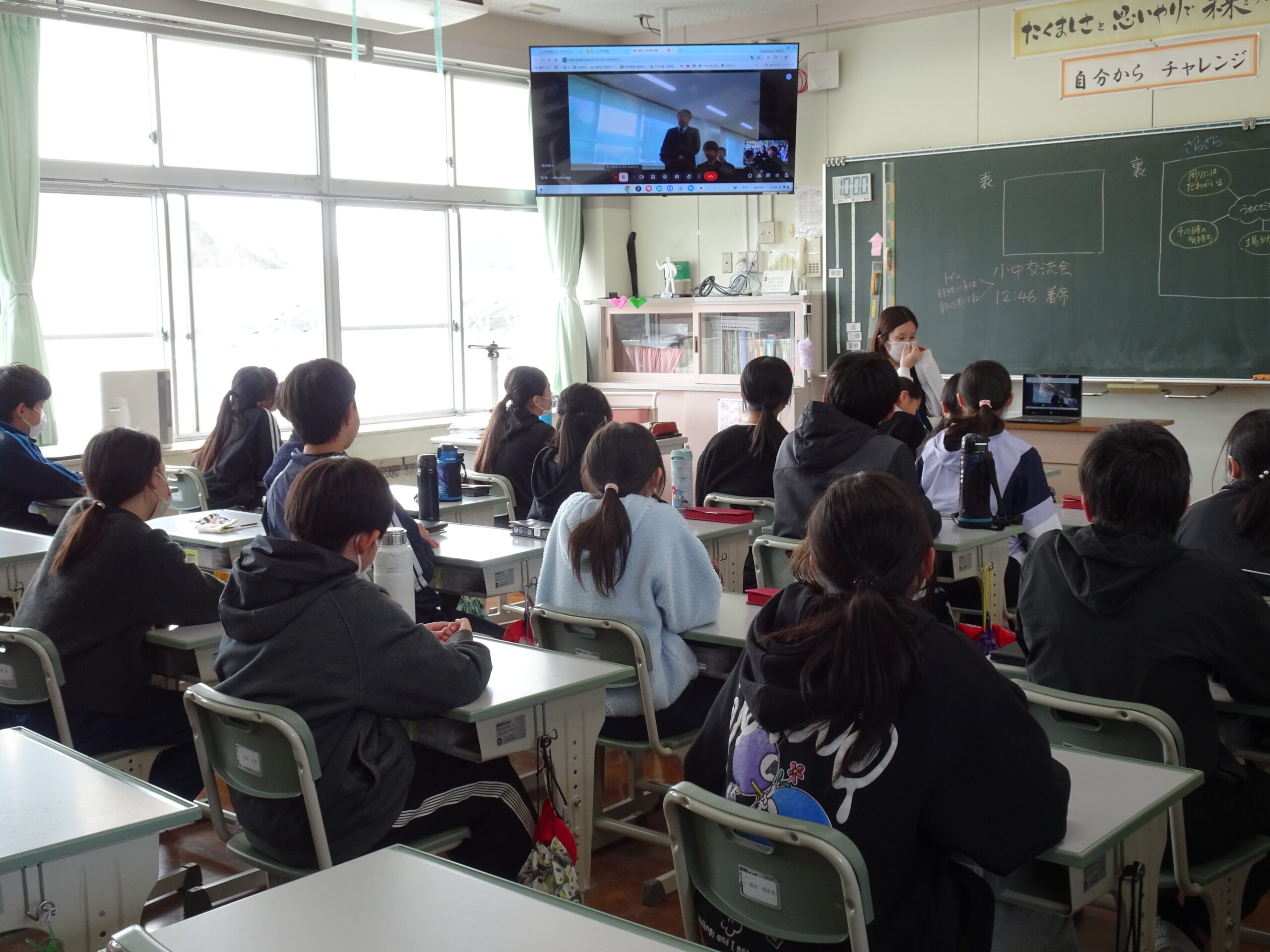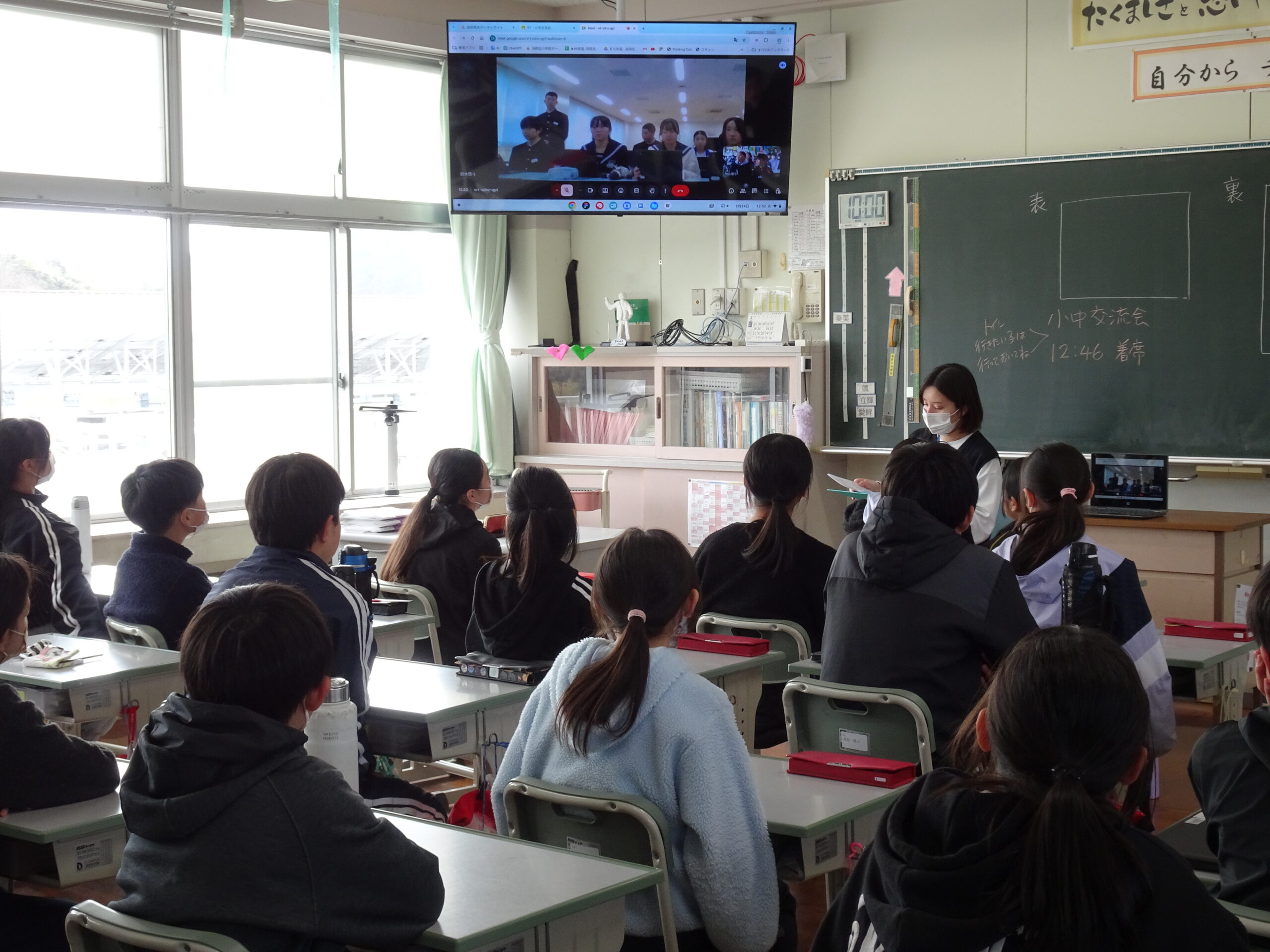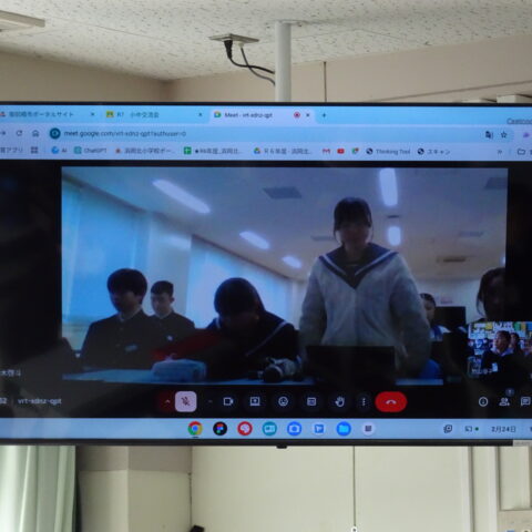 今日の昼休みに、浜岡中学校との小中交流会がありました。