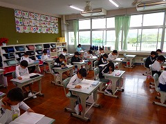 学力・学習状況調査 標準学力検査 2026/04/23 今日は、全国の小学6年生が一斉に行う「全国学力・学習状況調査」の日です。2年生以上も「標準学力検査」を実施しているため、校舎内が静まりかえっていました。どの子も真剣に取り組んでいる様子が見られました。