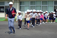 スムーズに避難ができました 第1回避難訓練 2026/04/24 避難訓練を行いました。めあては、避難する道を覚えることと避難の仕方を覚えることでした。訓練のための緊急地震速報が流れた後、すばやく机の下にもぐりました。自身が収まった後、担任の先生と一緒に運動場へと避難するルートを確認しました。初めての1年生もすばやく並ぶことができました。おかげで、避難開始の放送をしてからおよそ4分で全員の安否を確認することができました。先日も、大きな地震が起きたばかりです。日常のこうした訓練を大切にしたいものです。