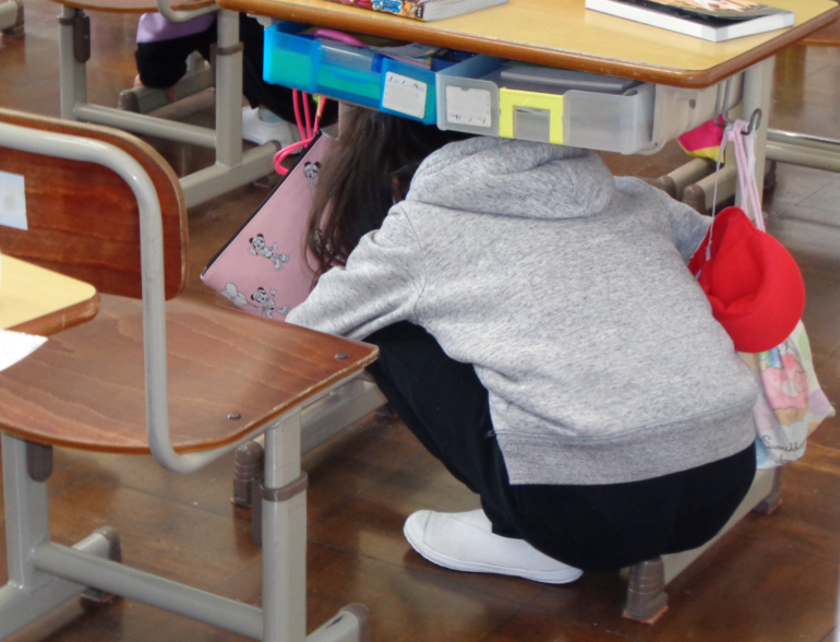 予告なし避難訓練 2022/02/15 予告なしの地震の避難訓練を行いました。 1次避難のみの訓練でしたが、昼休みに校内のいろいろなところで過ごしていた子供たちは、その場に応じた身のまもり方ができていました。