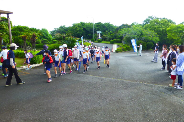 スクラムグッドマナーの日(6月) 2022/06/10 6月10日(金) 本年度2回目のスクラムグッドマナーの日でした。 今回は1年生の児童と保護者が参加してくださいました。 お父さん・お母さんに声を掛けられ、嬉しそうに元気よく登校する子どもたちの姿が印象的でした。 参加してくださった皆様、ありがとうございました。(PTA文化保健体育部)
