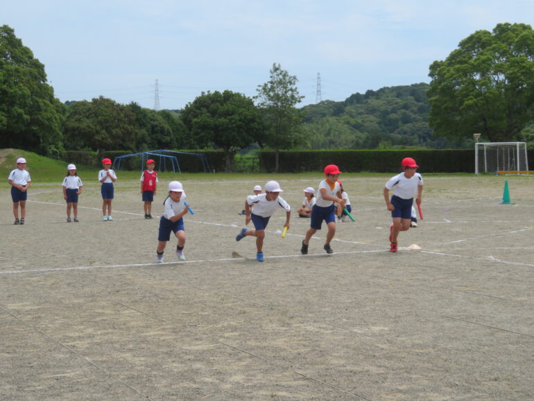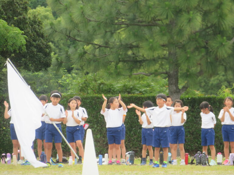 運動会 2023/06/08 1日延期になった運動会が実施されました。 どの種目も全力で頑張る子供たちの姿が見られ、今年のスローガンどおり「笑顔たくさん」の運動会になりました。 今年のスローガンは大塚教諭の手書きです。