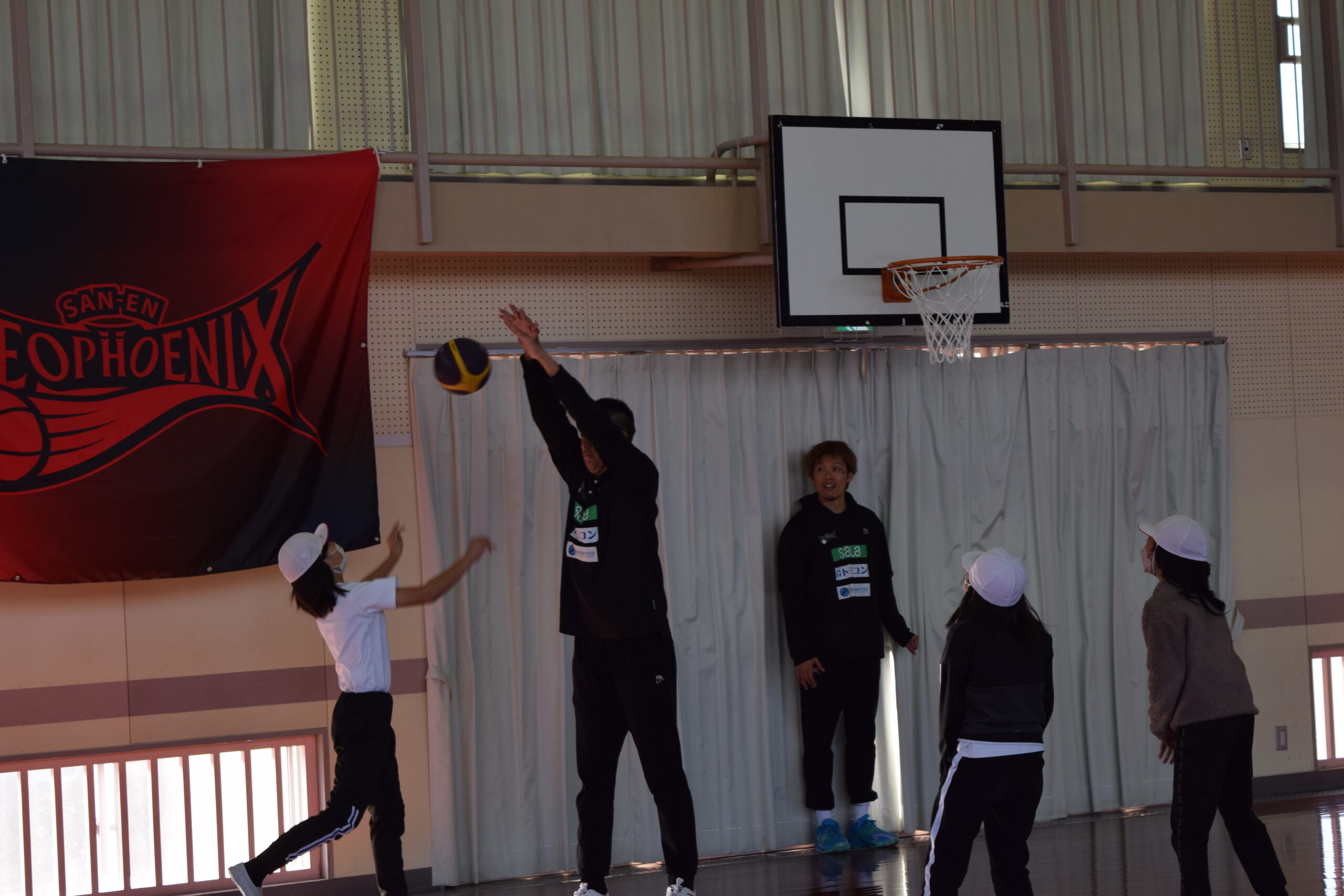 バスケットボールにチャレンジ 2023/12/01 三遠ネオフェニックスの皆さんに、プロスポーツ選手の世界について教えてもらったり、シュートの練習ではコツを伝授してもらったりしました。 選手のお二人の背のが高さに驚きながら、子どもたちもはりきってバスケットボールにチャレンジしました!