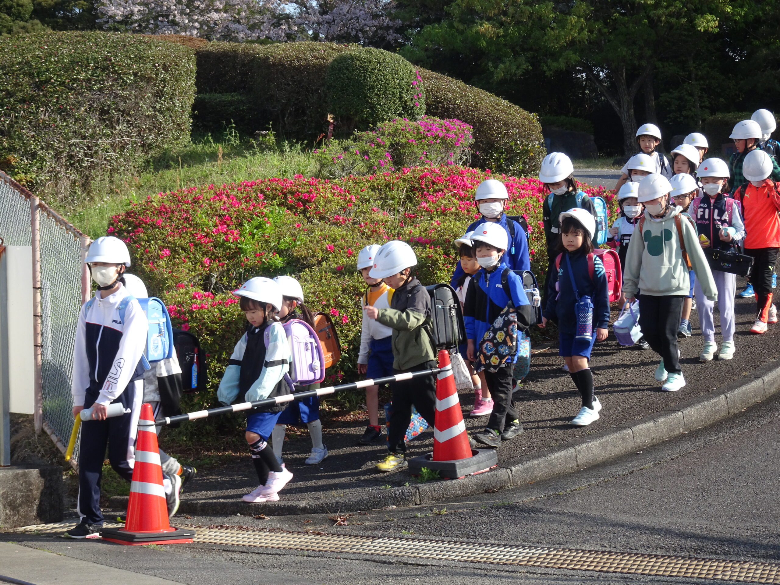 元気に登校できました 2024/04/10 今朝はすばらしい天気の中、みんな元気に登校できました。登校の際も上級生が、1年生に気を配りながら歩いてくれてやさしさいっぱいの光景が広がっていました。朝から、みんな元気いっぱいです。