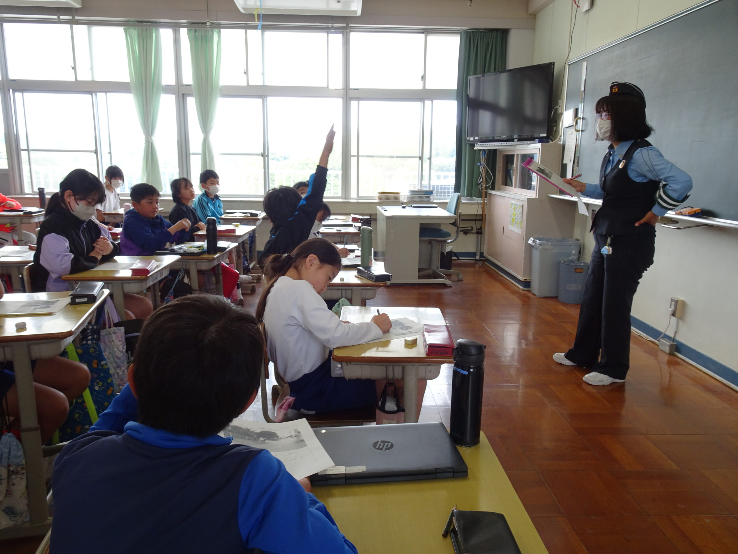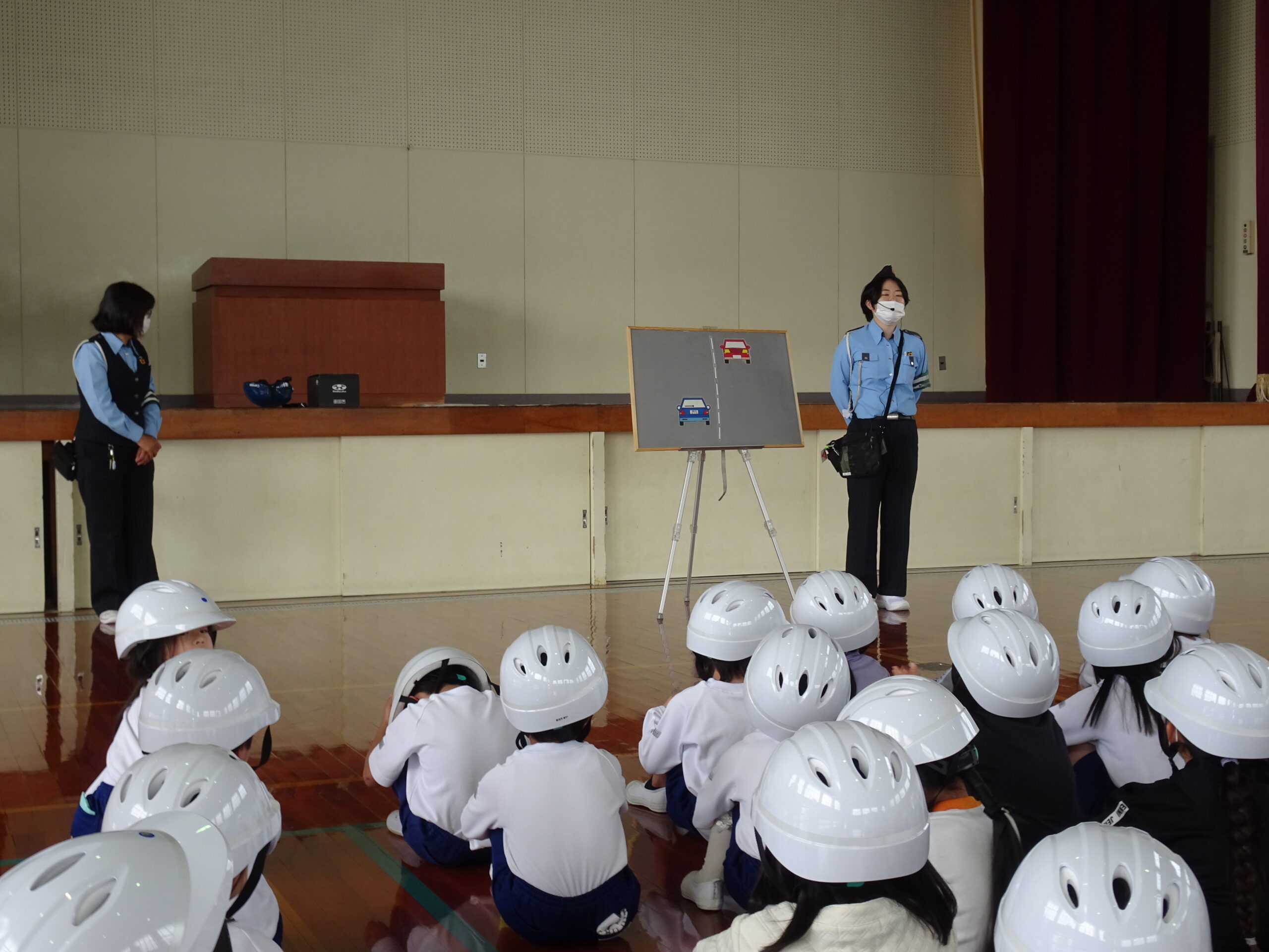 今日は、交通教室があり、交通安全協会菊川地区支部の交通安全指導員さんがヘルメットのかぶり方や交通ルール等を教えてくれました。「ぼくのヘルメットのひもはゆるゆるだ。家に帰ったら指2本分にきつくしてもうおう。」とか「初めてそのルールを知った。」などの声が聞こえてきました。新発見がいっぱいの時間になりました。