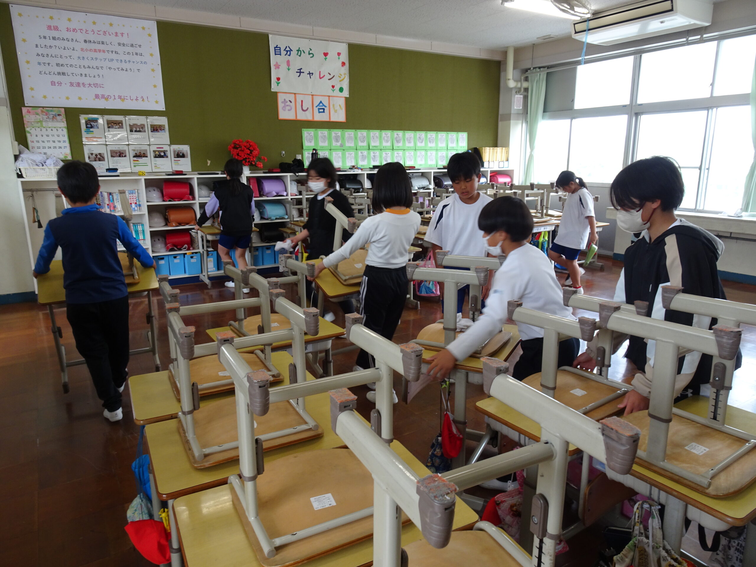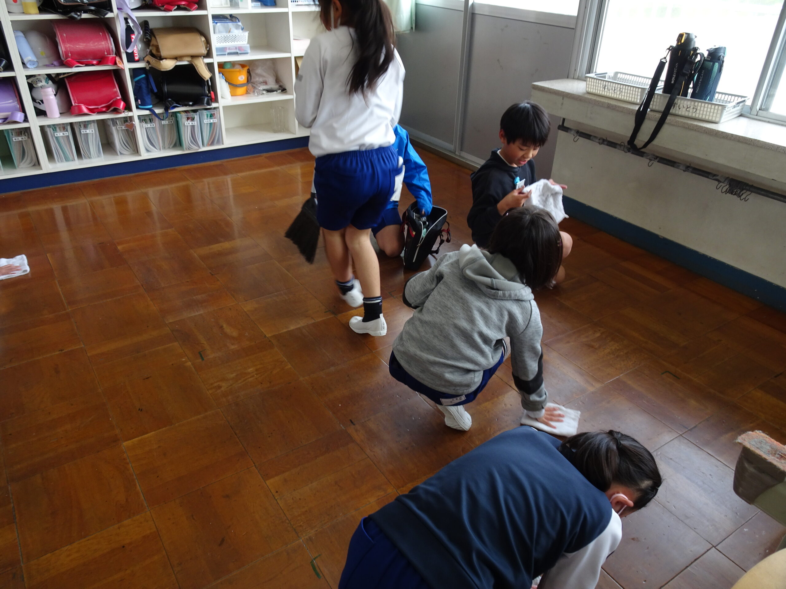 そうじは「だ・い・じ」 2024/05/10 北小の自慢のひとつにそうじがあります。 だ=だまって い=いっしょうけんめい じ=じかんいっぱい これを合言葉に、そうじに取り組んでいます。自分の仕事が終わると、他によごれているところはないかなと探す姿もたくさん見られます。今年の目標である「みつけよう やってみよう」を実践するすばらしい姿です。