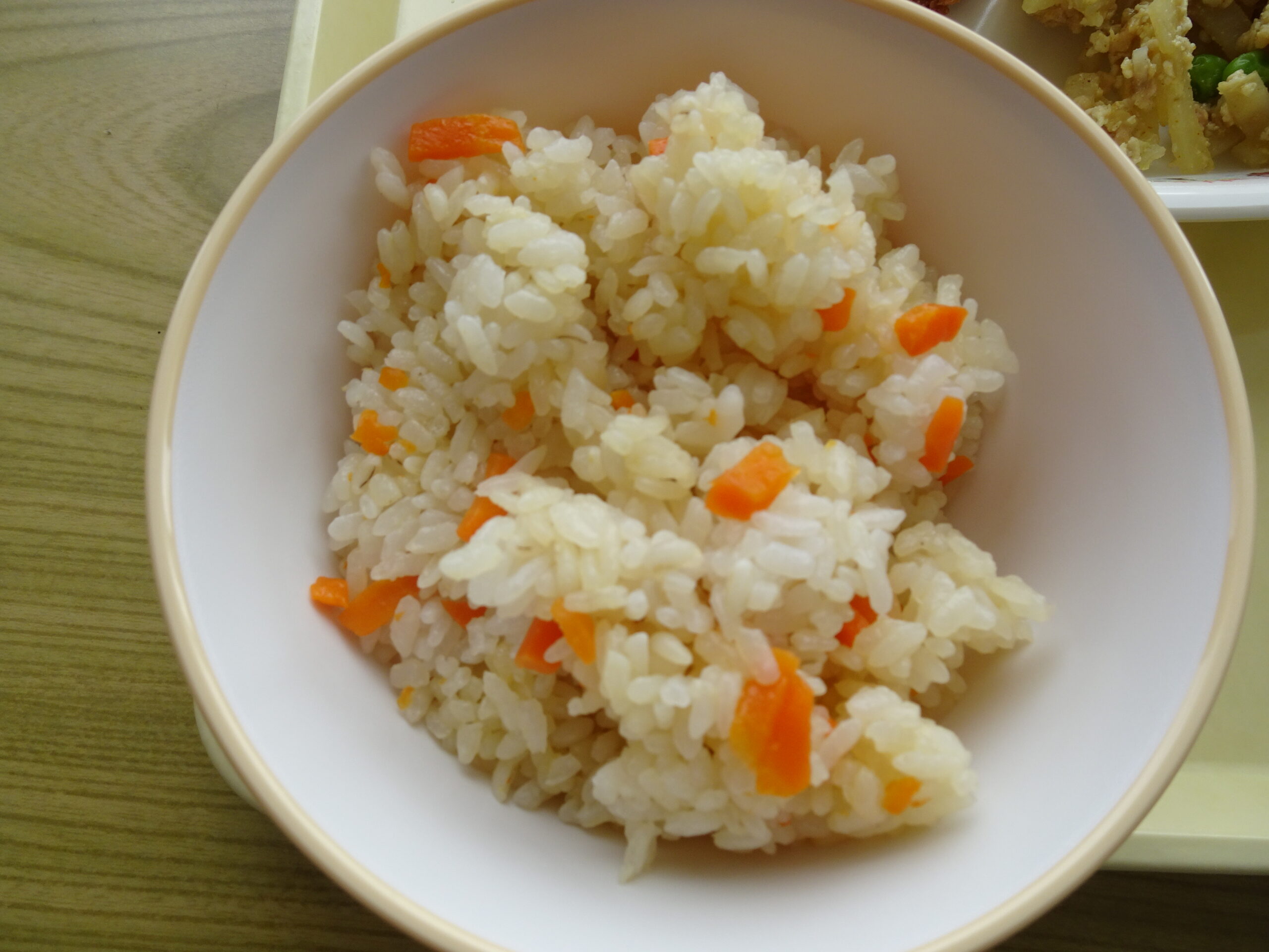 ふるさと給食 2024/05/16 今日の給食は、「ふるさと給食」でした。 メニューは、にんじんご飯、牛乳、かつおフライ、若竹汁、新じゃがのカレーソテーでした。自分の住んでいる土地の名産にふれるのもいいですね。 給食センターの皆さん、いつもおいしい給食をありがとうございます。
