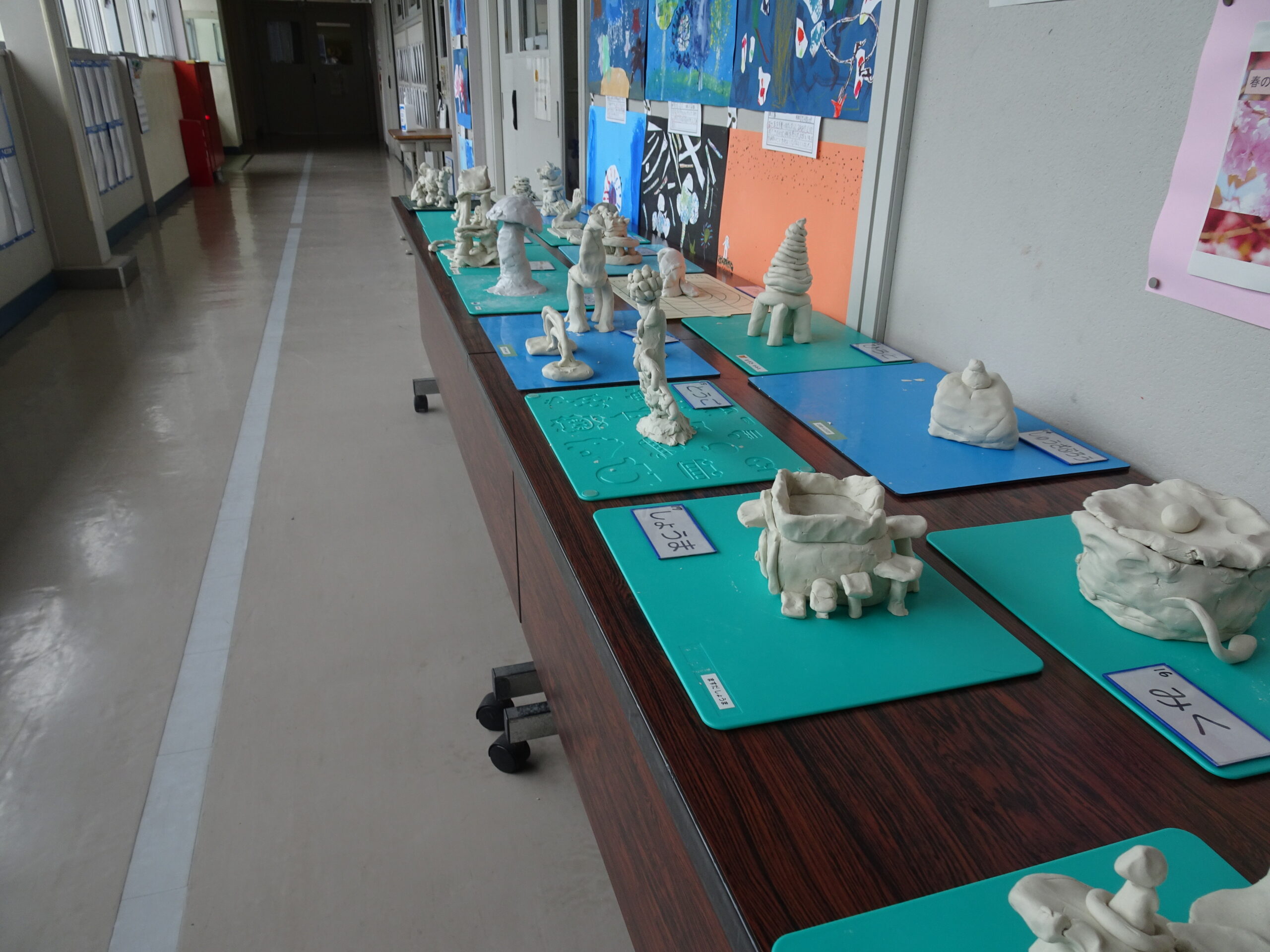 【4年生】すてきな作品がいっぱい 2024/05/28 4年生の教室前に、図工の作品が飾られています。どこを見てもすてきな作品ばかりです。 すべての作品に各自の工夫がされていて、時間を忘れて見入ってしまいます。学校に来た時はぜひご覧ください。