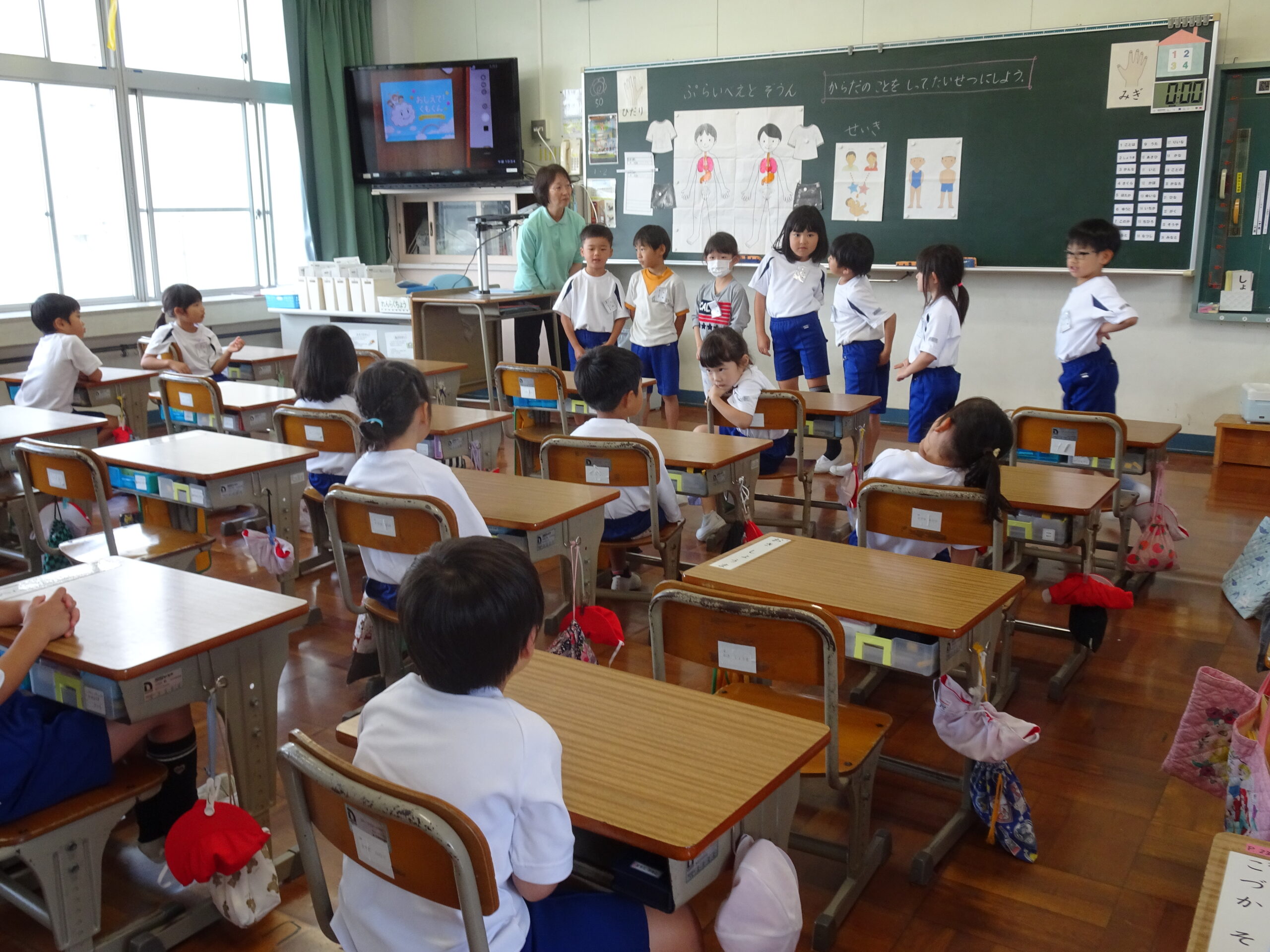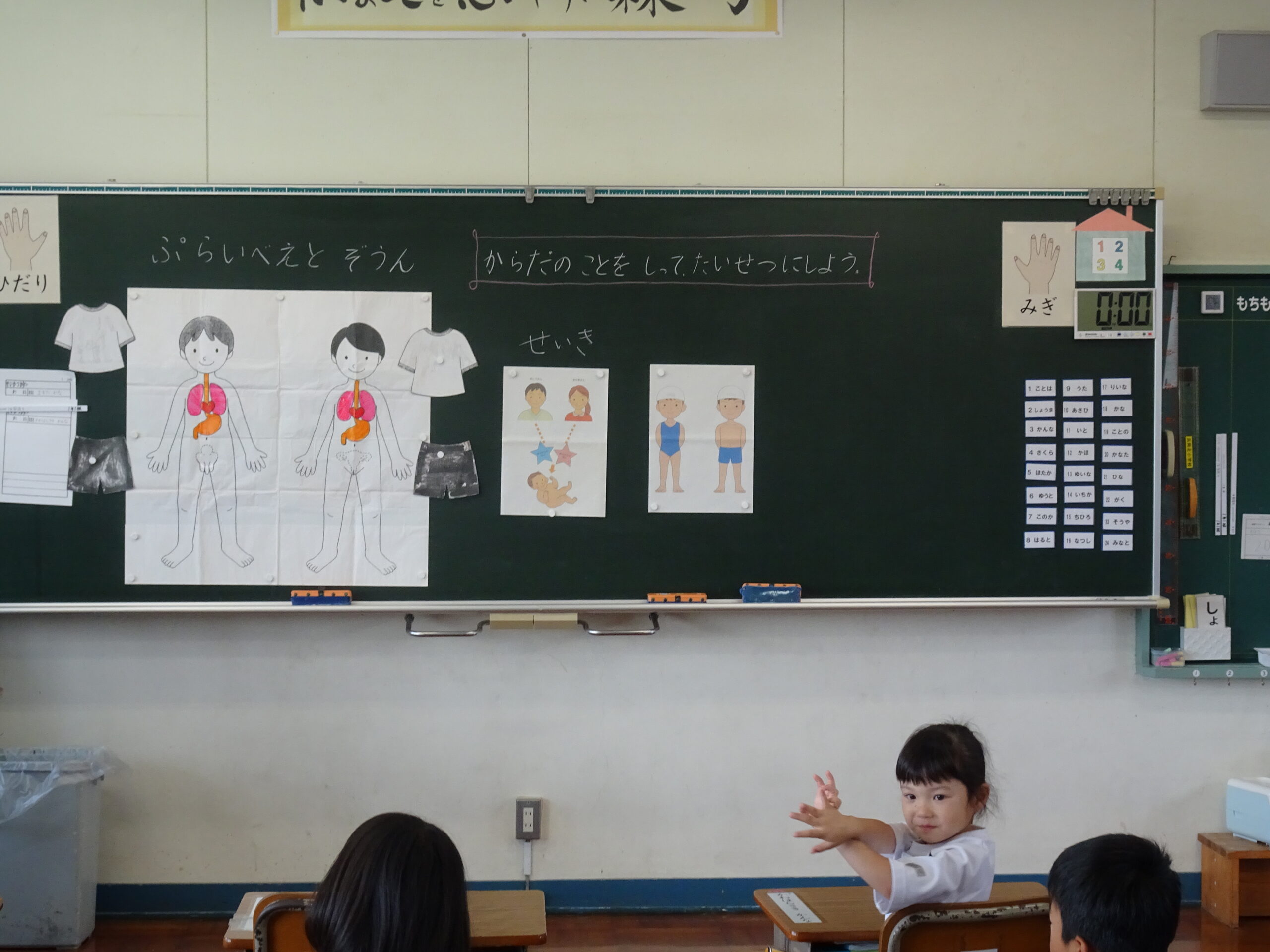 【1年生】プライベートゾーンって何かな 2024/06/10 1年生の授業に、養護教諭の葵先生も参加して、「プライベートゾーン」について勉強しました。 「プライベートゾーンって初めて知ったけど、大切にしないといけないことが何かわかりました。」 「今までもやっていないけど、今日教えてもらったことを守りたいです。」など、いろいろなことが知れたようです。最後には自分の感想やわかったことをみんなの前で堂々と発表できてすばらしかったです。