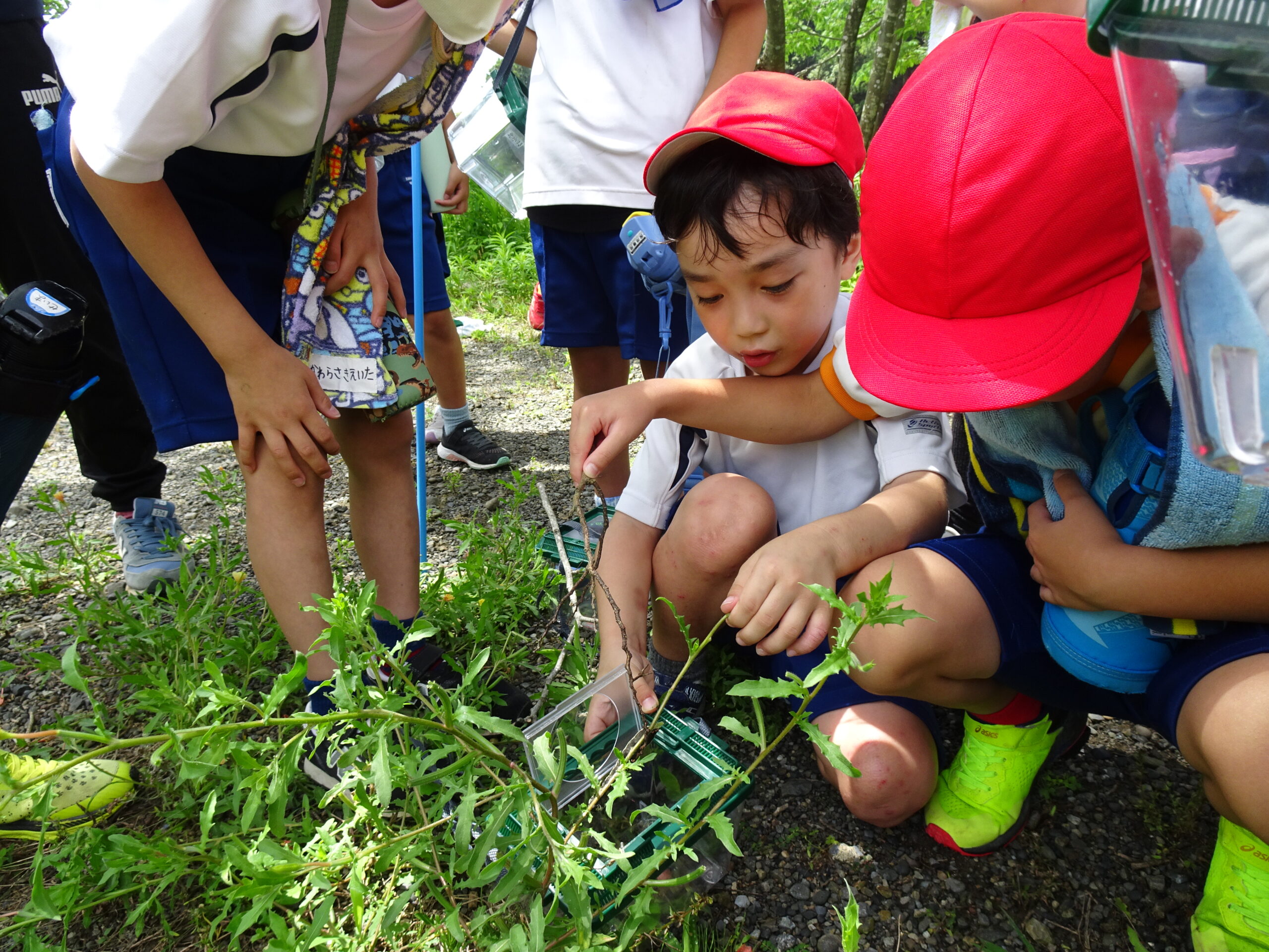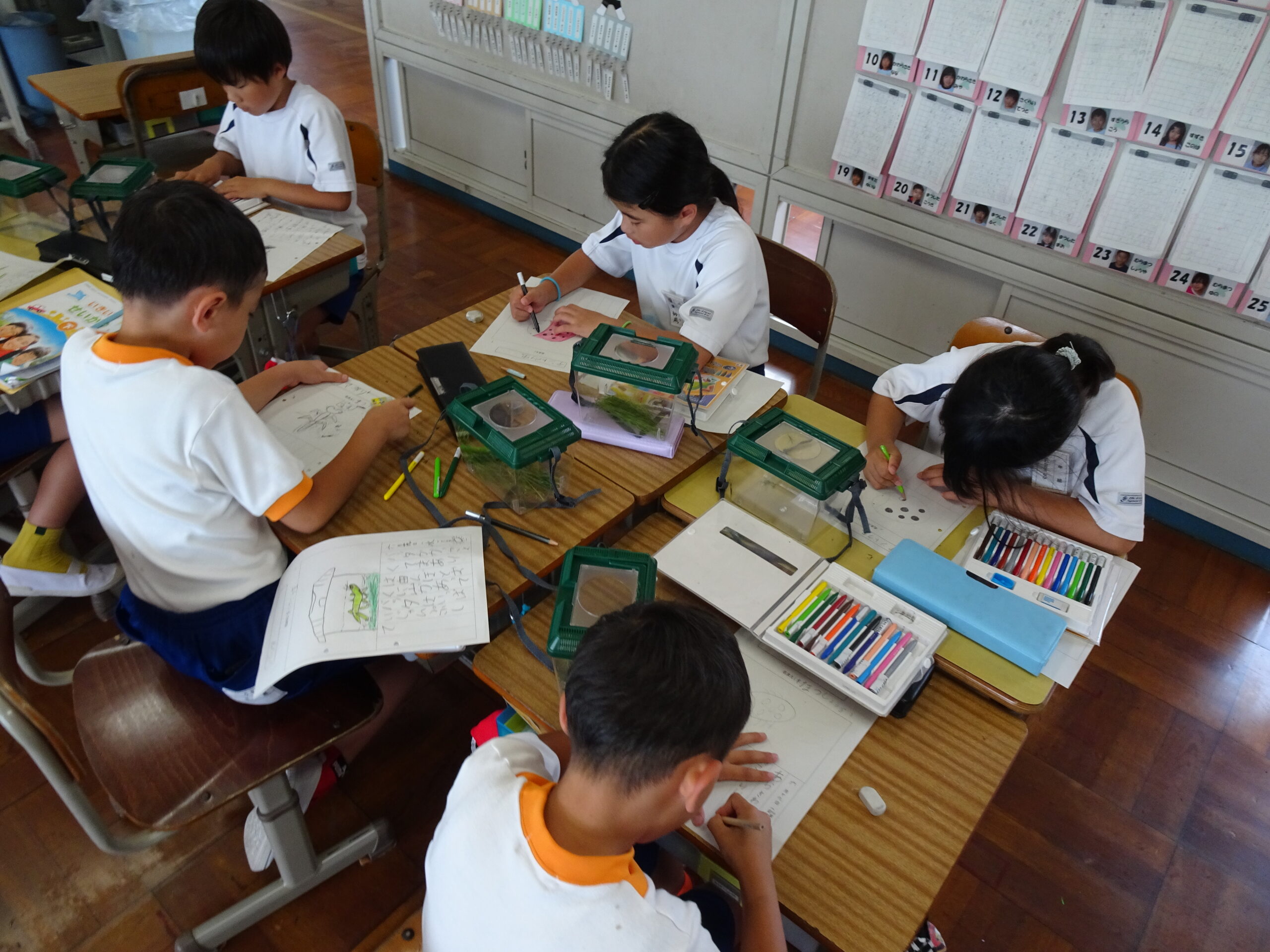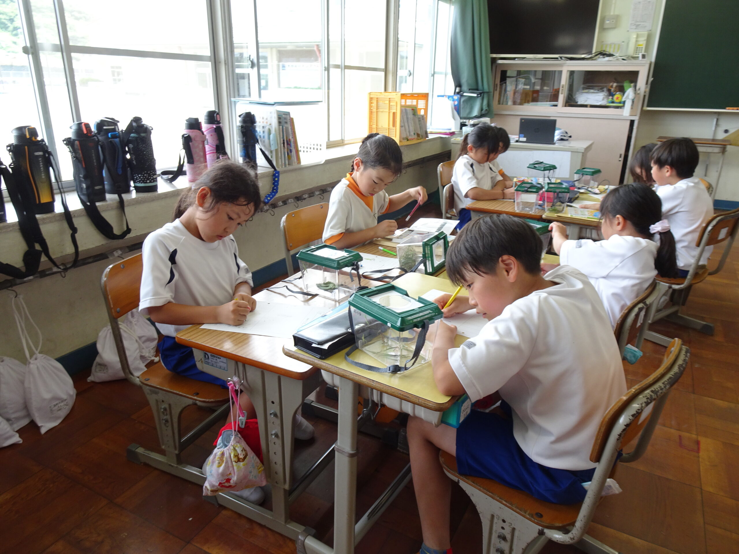 【2年生】虫探しにレッツゴー 2024/06/19 2年生が、虫探しに出かけました。身近なあらさわふる里公園ですが、虫探しとなるといつもと違った景色に見えたようです。どこにどんな虫が住んでいたのかな?? 帰ってきてからのまとめも、みんなすばらしい集中力でした。