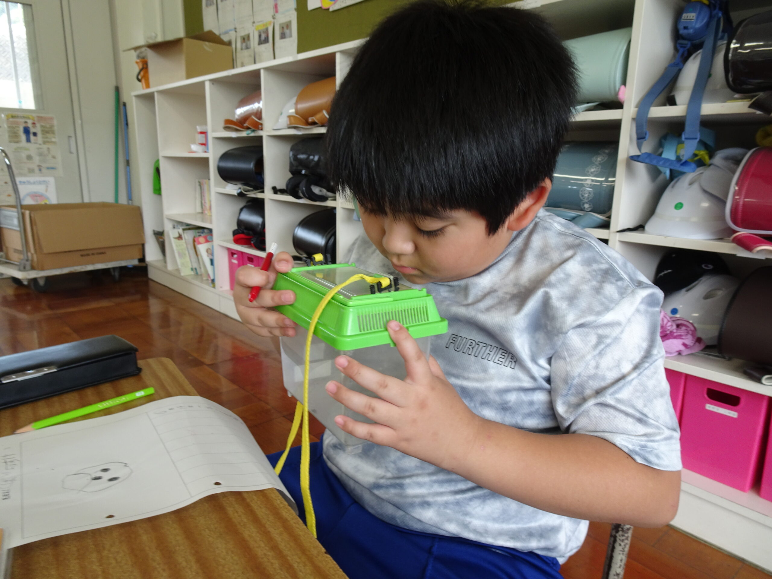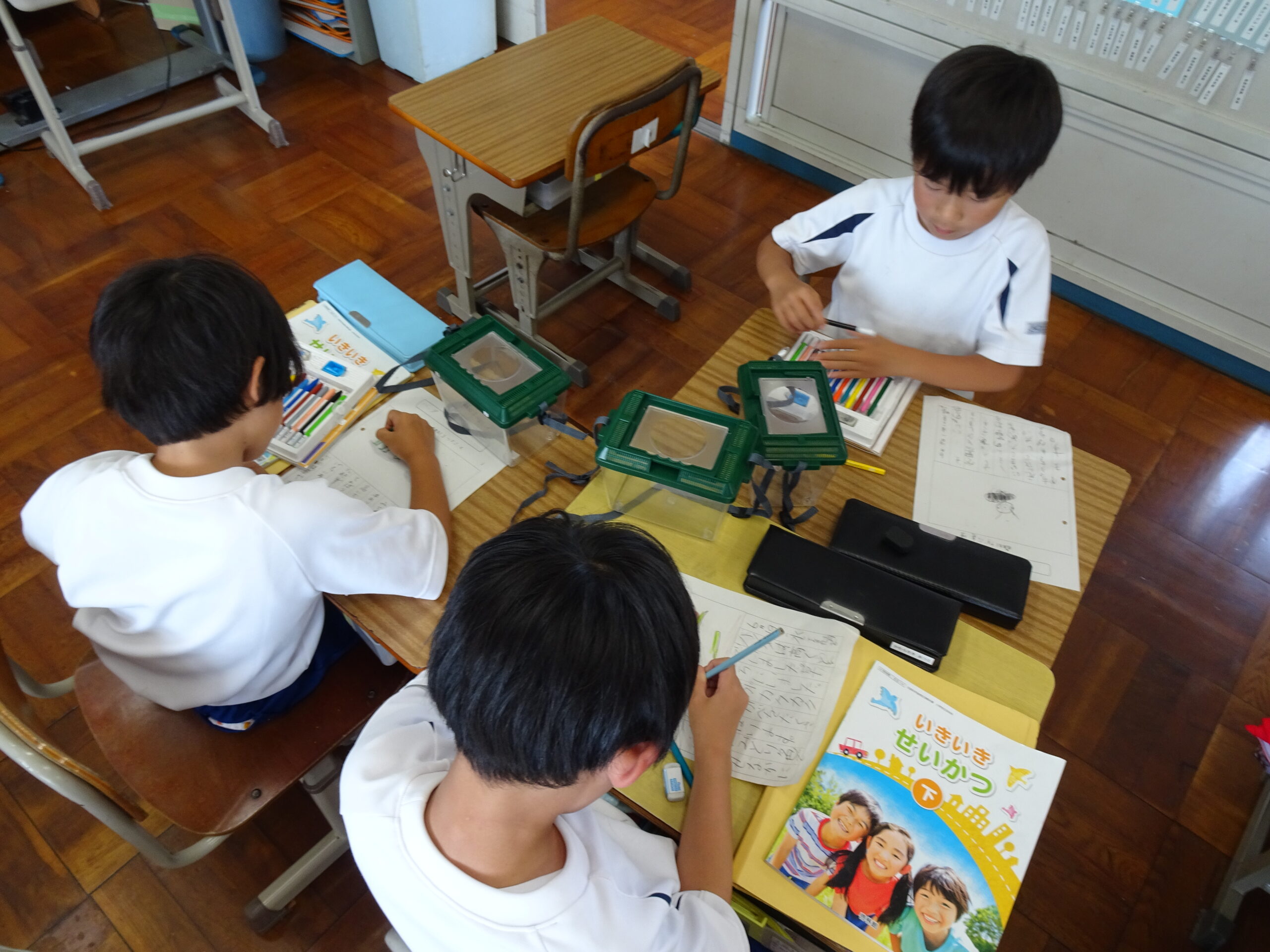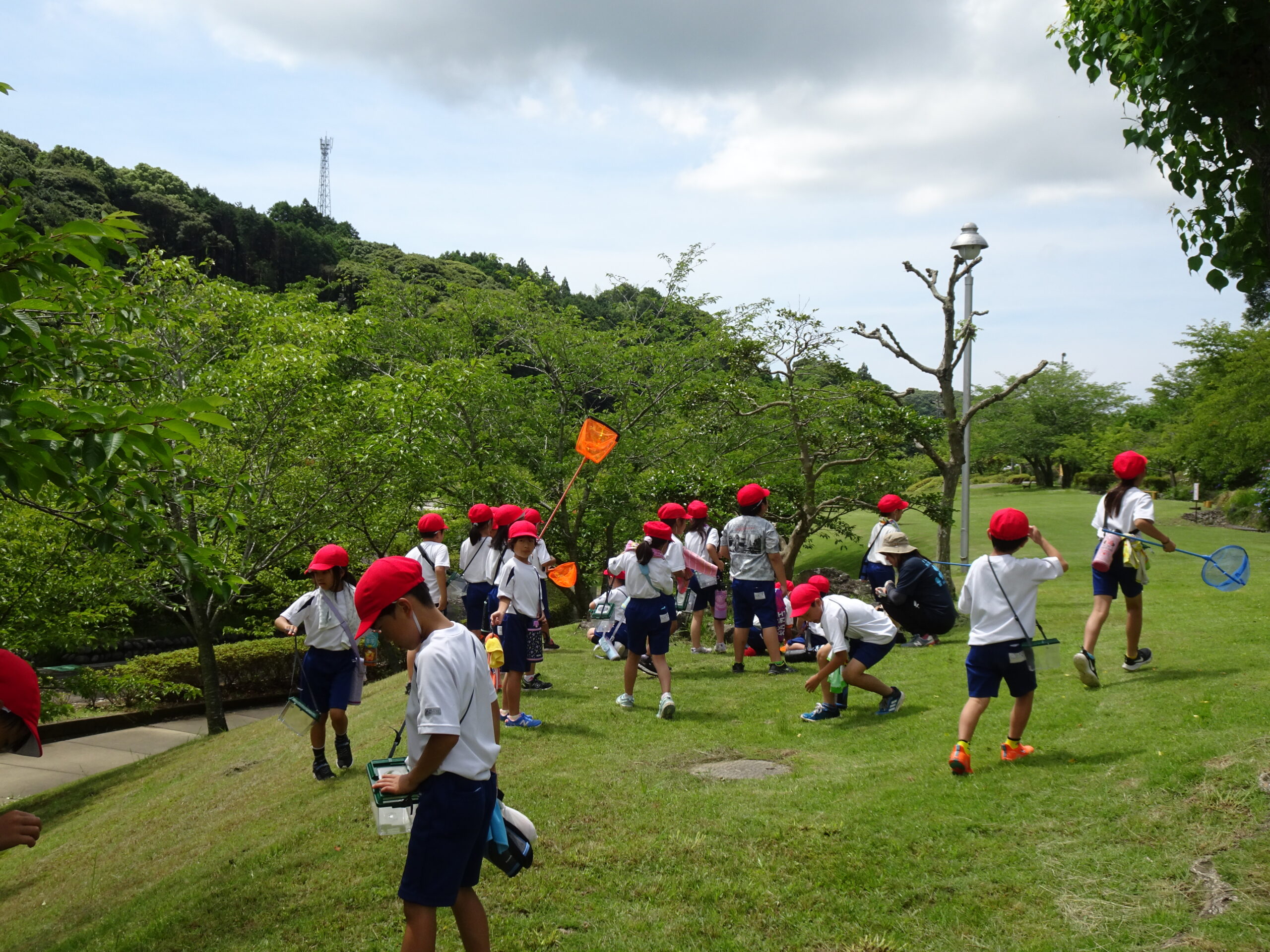 【2年生】虫探しにレッツゴー 2024/06/19 2年生が、虫探しに出かけました。身近なあらさわふる里公園ですが、虫探しとなるといつもと違った景色に見えたようです。どこにどんな虫が住んでいたのかな?? 帰ってきてからのまとめも、みんなすばらしい集中力でした。