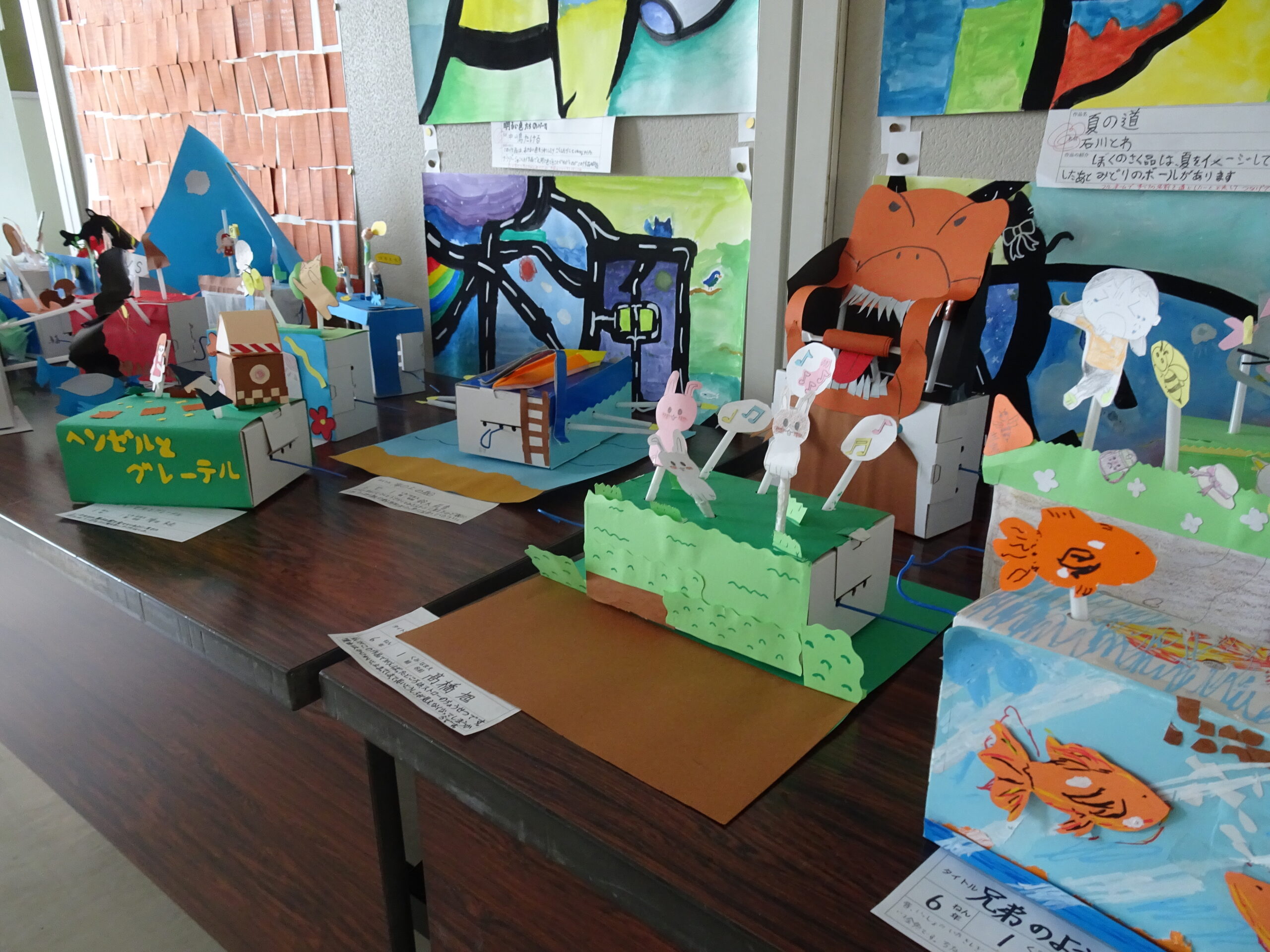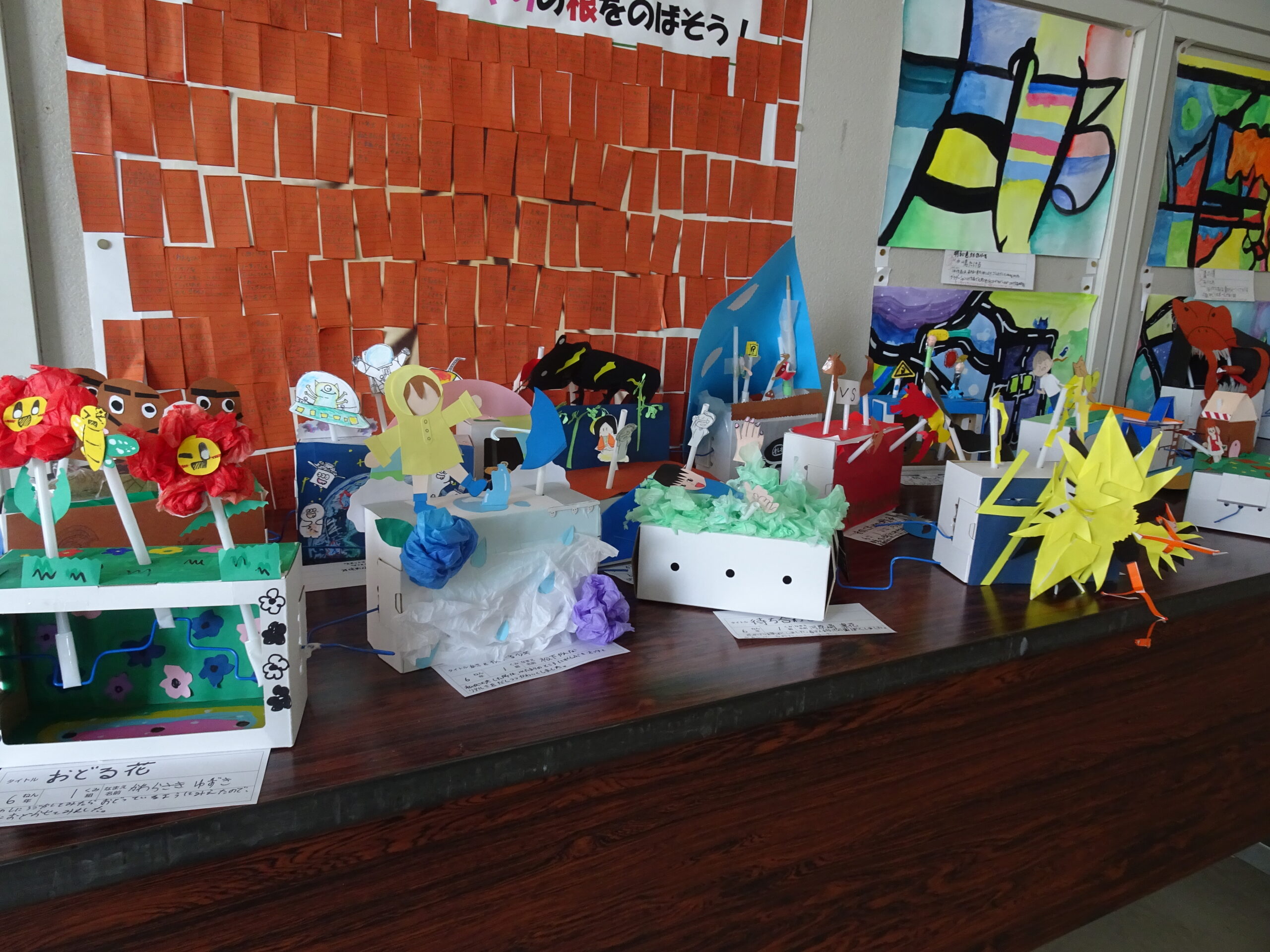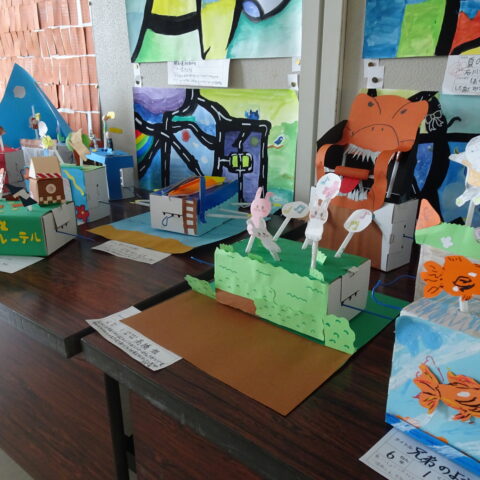 クランクを利用して制作した6年生の作品が完成し、展示されています。いろいろなアイデアと工夫がいっぱいつまっているので、ぜひ見せてもらいましょう!
