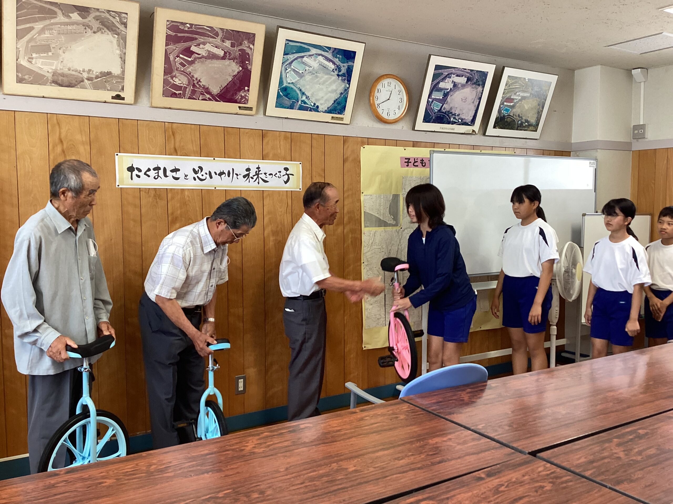 地域の方々から支援をいただきました 2024/06/26 学区の方々が、北小学校の子供たちのために役立ててくださいと寄付をしてくださいました。 みんながよく使う一輪車やボールが古くなっていたので、新しいものを購入してくださり、みんなの輝いている様子を全校児童や学校に来てくれた方々にみてもらうために職員室前にモニターも設置してくださいました。 「子供たちを応援したい。」という思いがとてもうれしいですね。ありがとうございました。