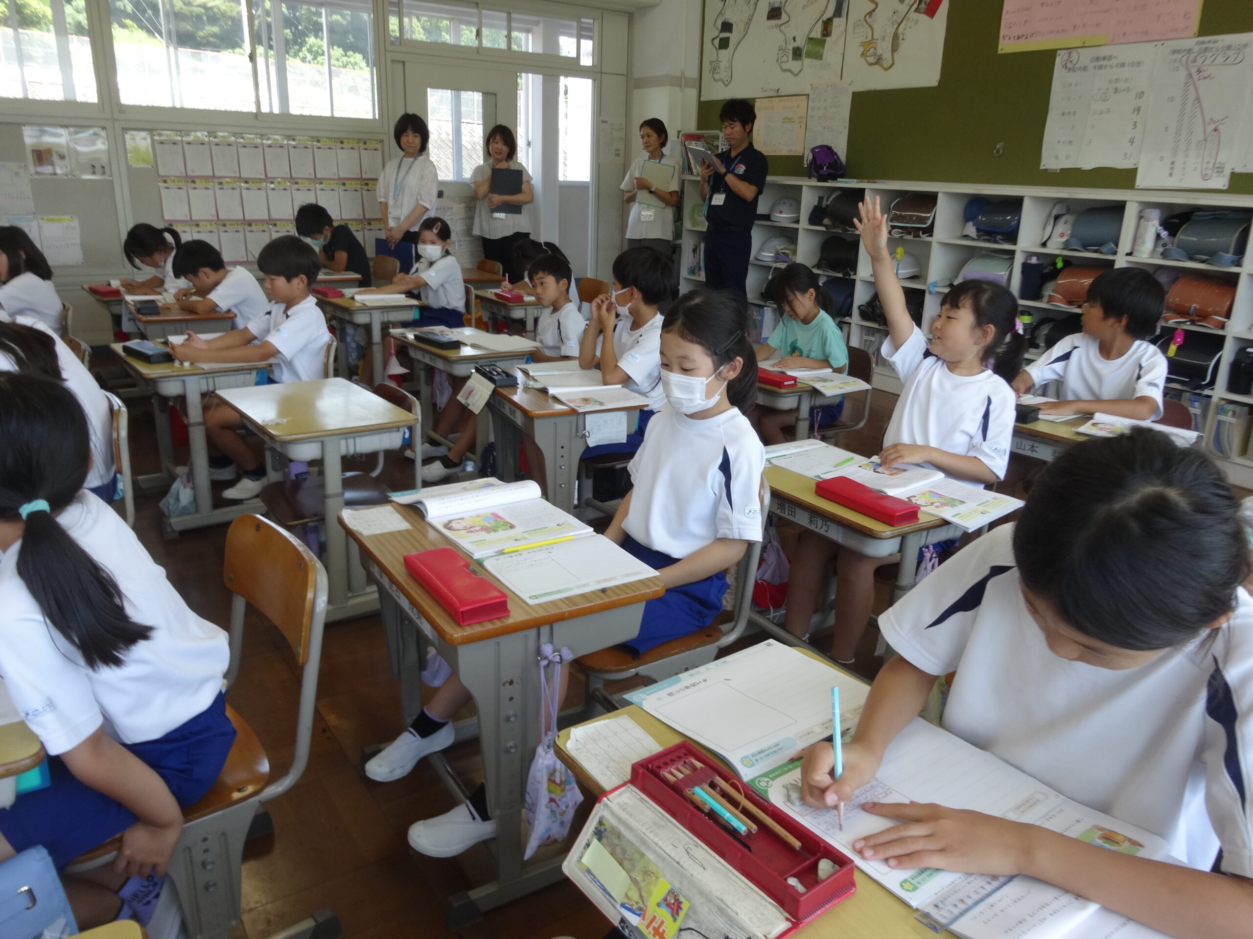 御前崎市教育委員会訪問がありました 2024/07/04 今日は、御前崎市教育委員会の皆さんが北小学校の様子を参観しに来てくれました。 委員の皆さんからは、「授業中、子供たちのつぶやきが多くてすばらしい」「どの子も一生けん命で先生方との良い関係が築けているのがわかる」「素直な子たちがいっぱいだし、教室や廊下に飾られた作品がすてきだ」など、たくさんのお褒めの言葉をいただきました。 北小の皆さんのがんばりに気づいてもらえてよかったですね。