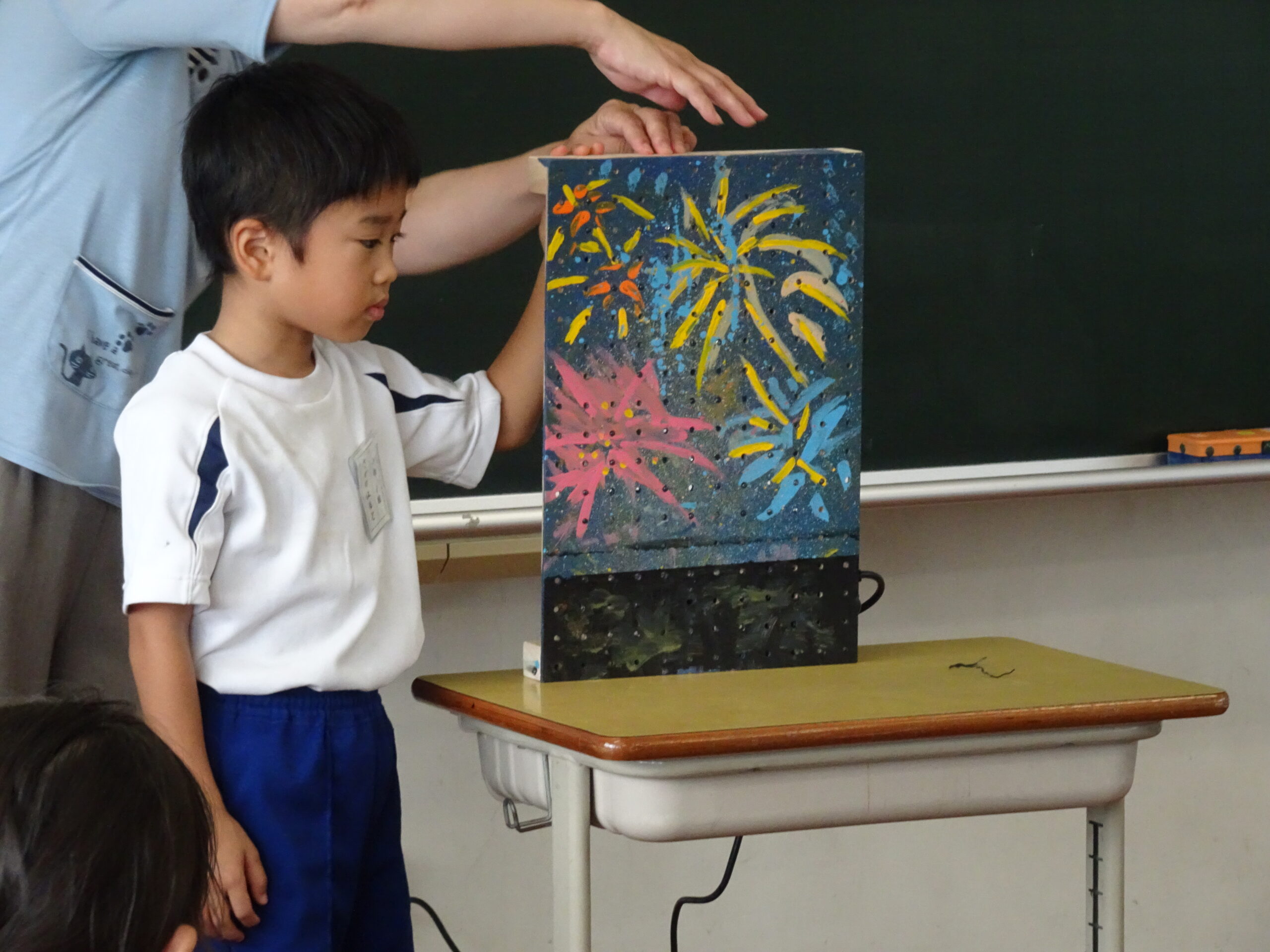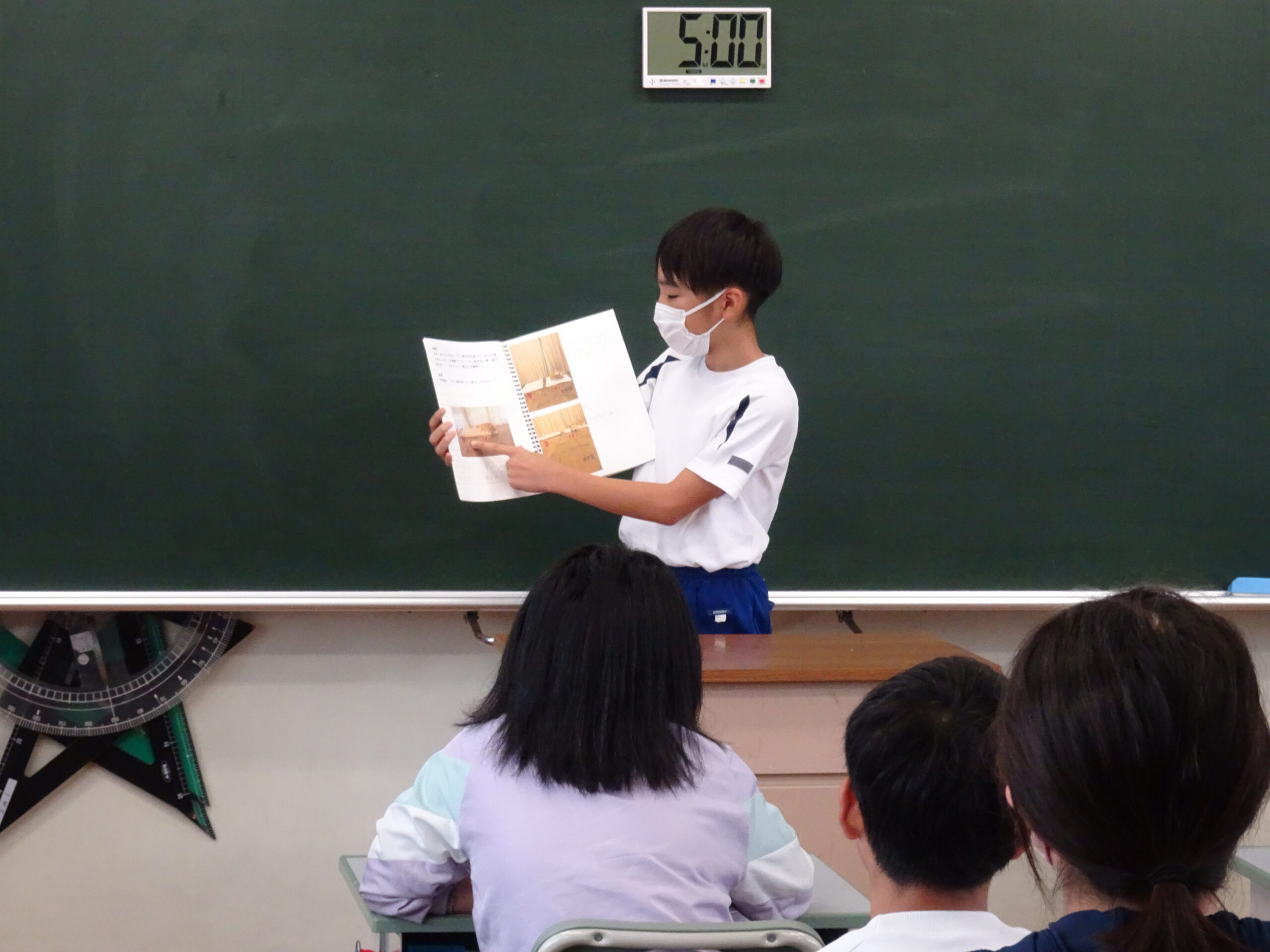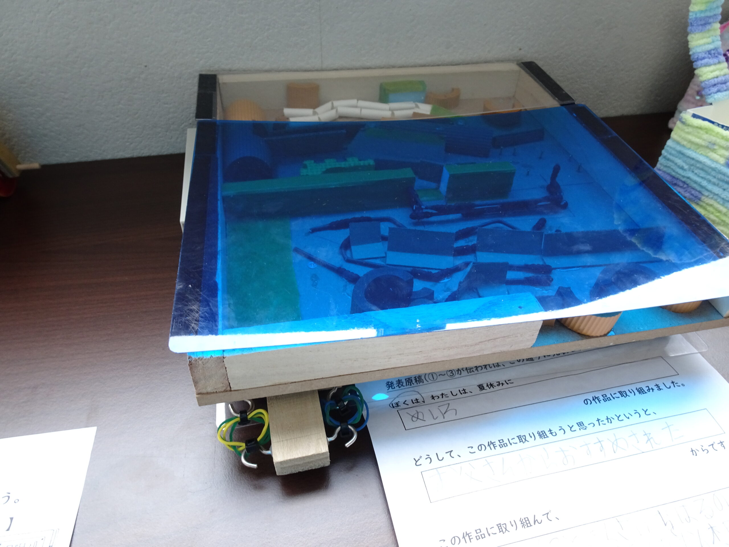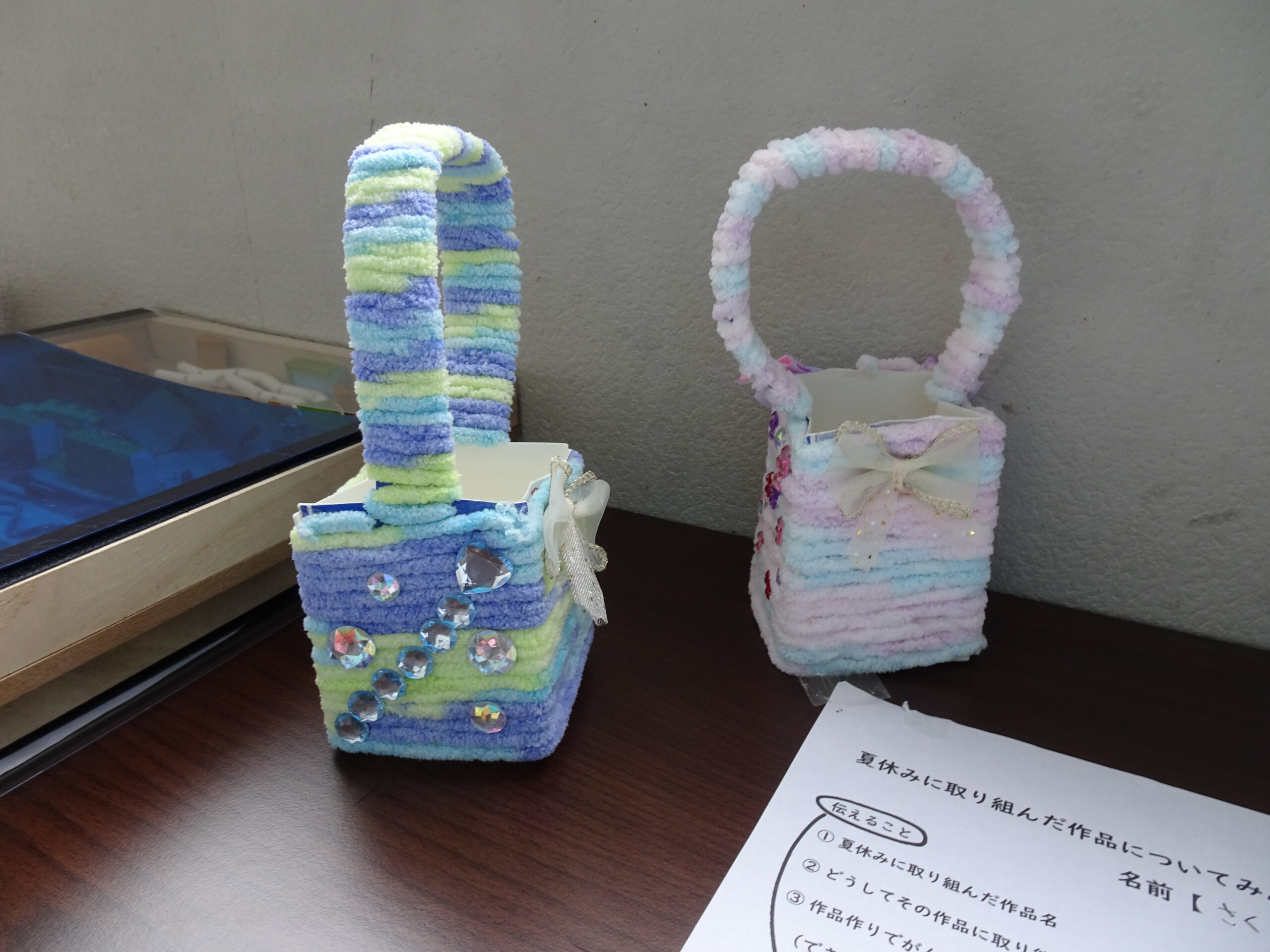 夏休みもがんばりました 2024/08/29 今日は各学級で、夏休みに取り組んだ作品や研究についての発表会がおこなわれていました。自分が工夫したところや発見をみんなの前で堂々と話せているのに感心しました。 廊下にもいろいろな作品が並んでいて、その完成度に驚かされます。