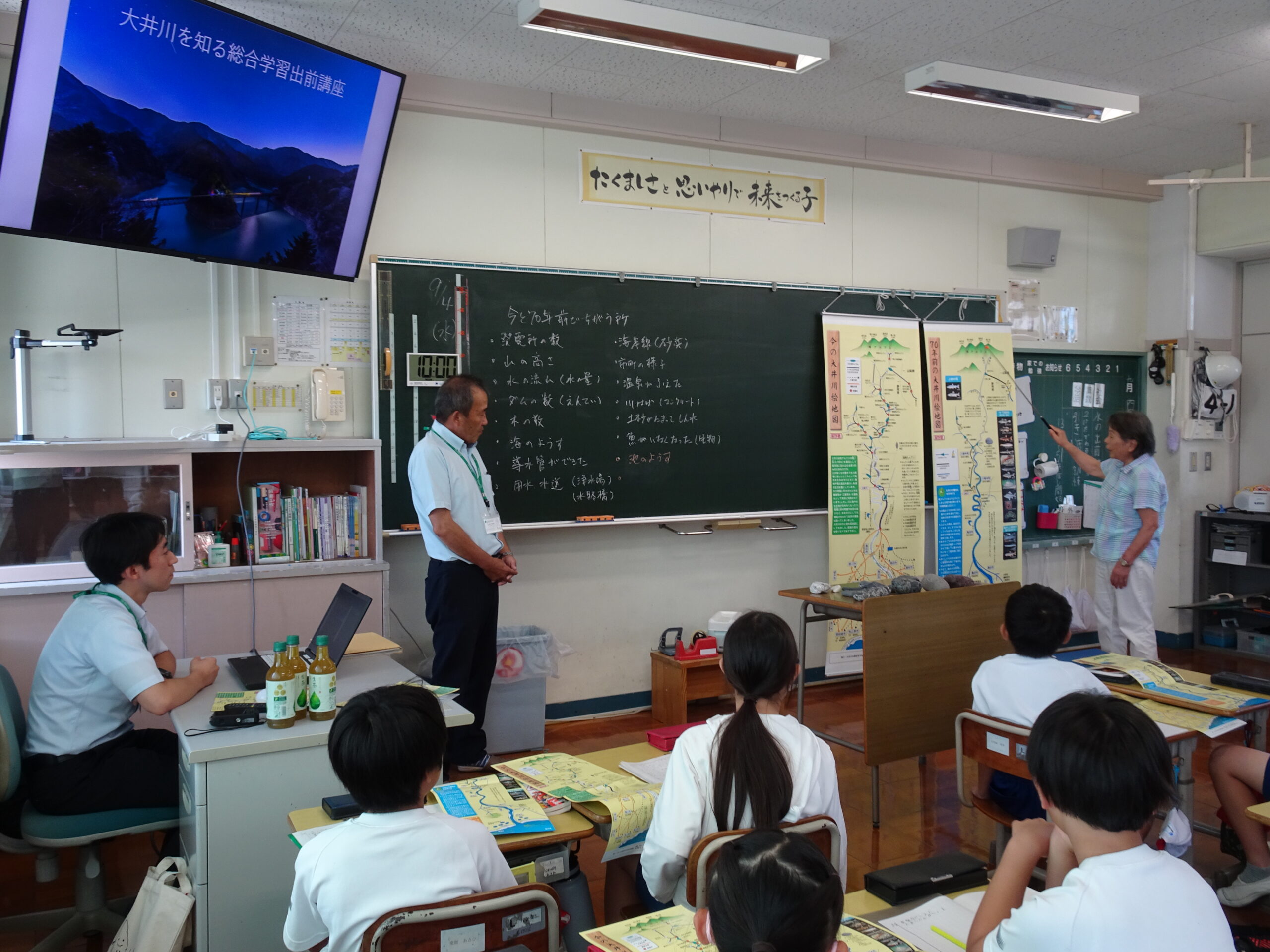 今日は、4年生が大井川の水などについて学習するために、「大井川を知る学校出前講座」をやっていただきました。お話をしてくださった小沢さん、川根本町のくらし環境課の皆さん、ありがとうございました。4年生は、今年度に入って、環境保全センター等に足を運んだりして環境について学んでいます。今日は、70年前の大井川と現在の大井川を比べながら多くのことを知れたようです。これからの学習も楽しみです。