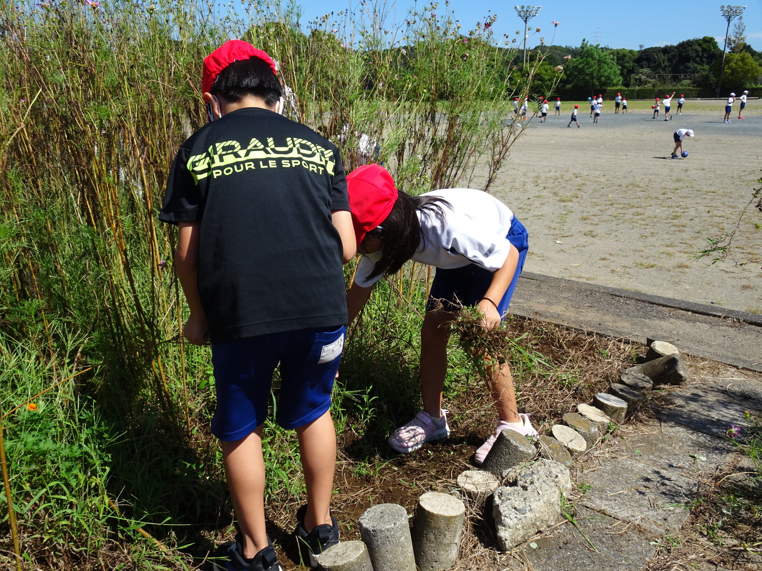 自分たちで気づいて動ける6年生 2024/09/18 夏休みが終わり、一番大きく変化したことは、校内に雑草が増えたことです。グラウンドや花壇も雑草だらけになってしまいました。 それに気づいた6年生の環境委員が自分たちで考えたイベントで校内をきれいにしようとしてくれています。「雑草が増えたな」と思うので終わらず、自分たちで行動にうつせたことに感動しました。これ以外にも、昼の放送で新しい企画が始まったりと、北小学校の新しい文化をつくり出そうをしている6年生、すごいですね!!