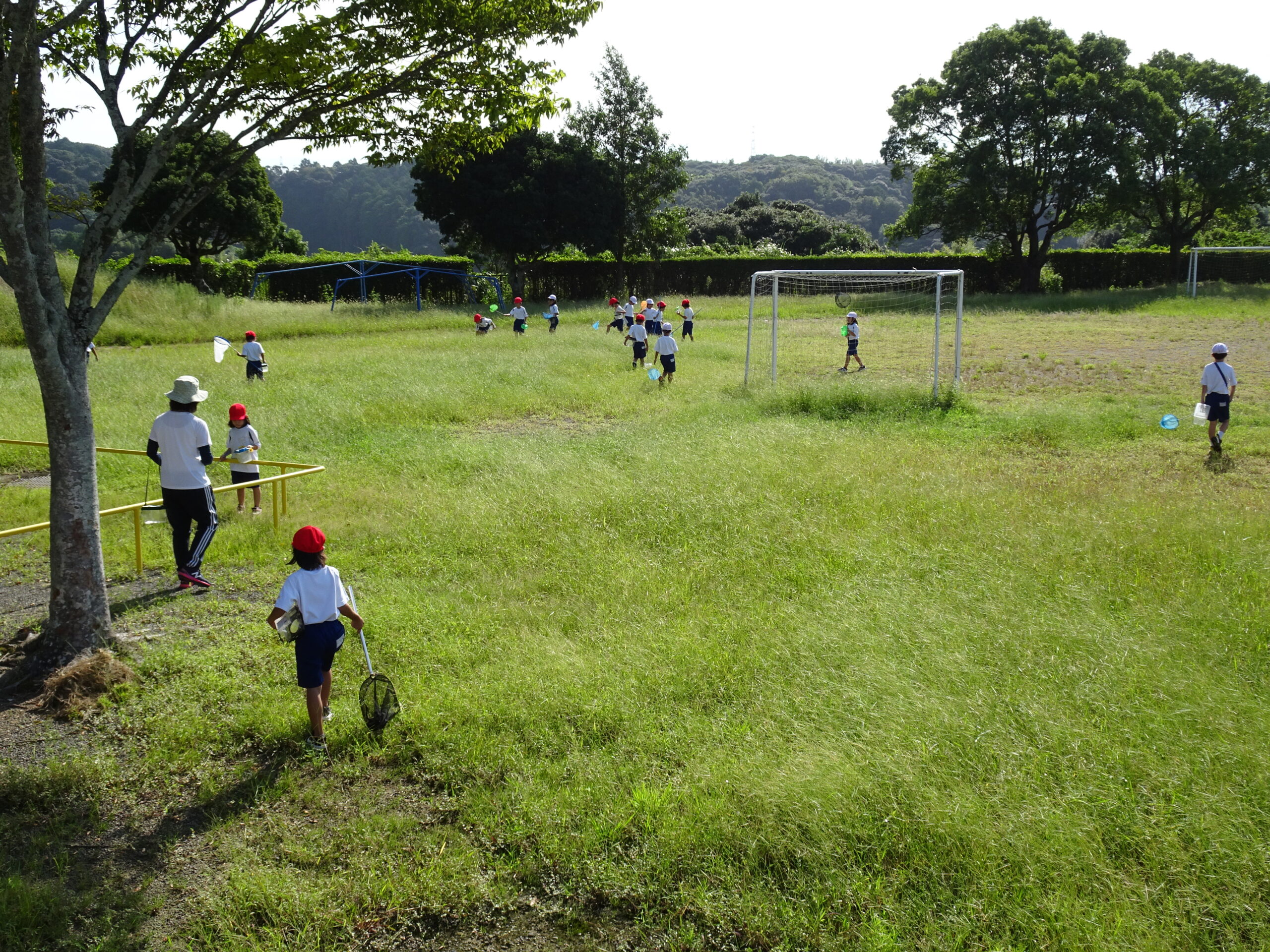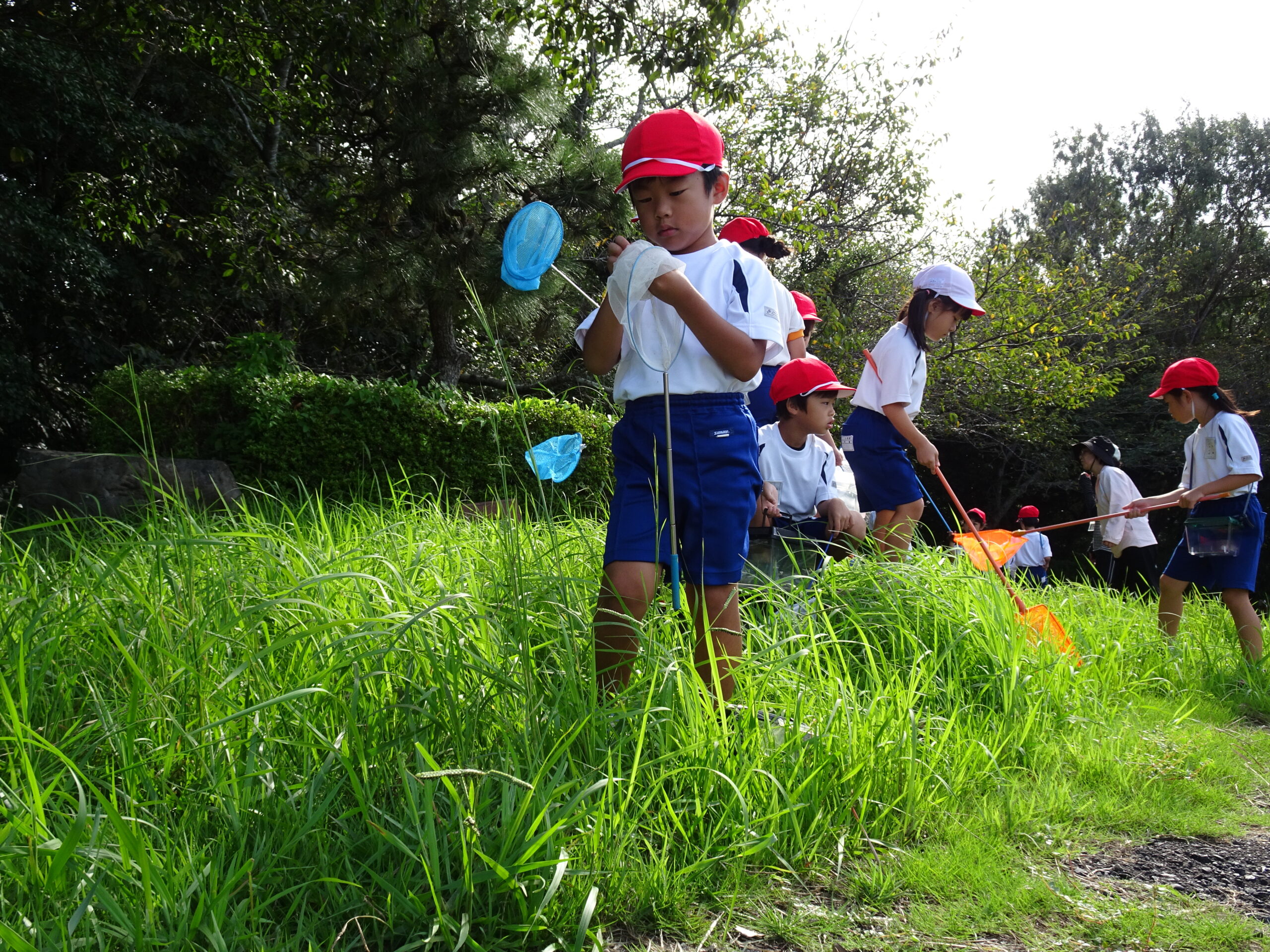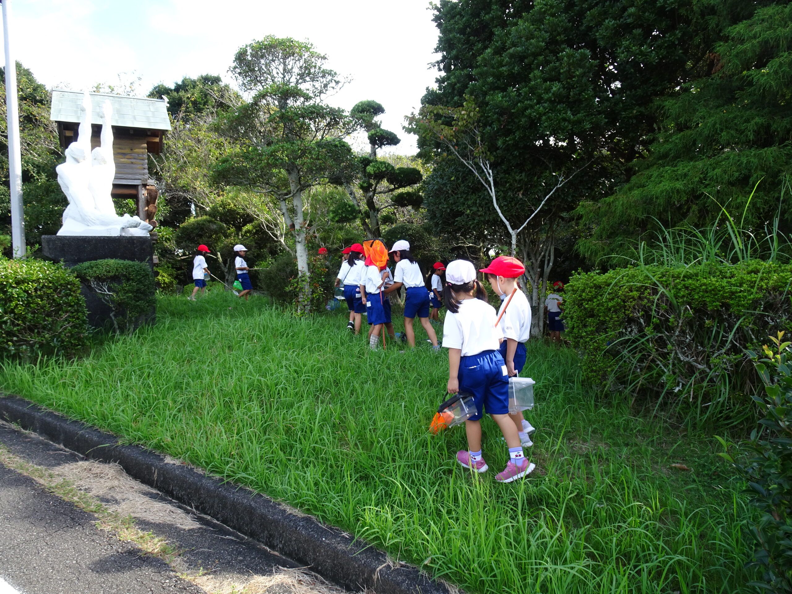 1時間目に1年生が「むしとり」に出かけました。草をかきわけると、バッタがたくさんいたようです。つかまえるのには、かなり苦戦していたようですが。