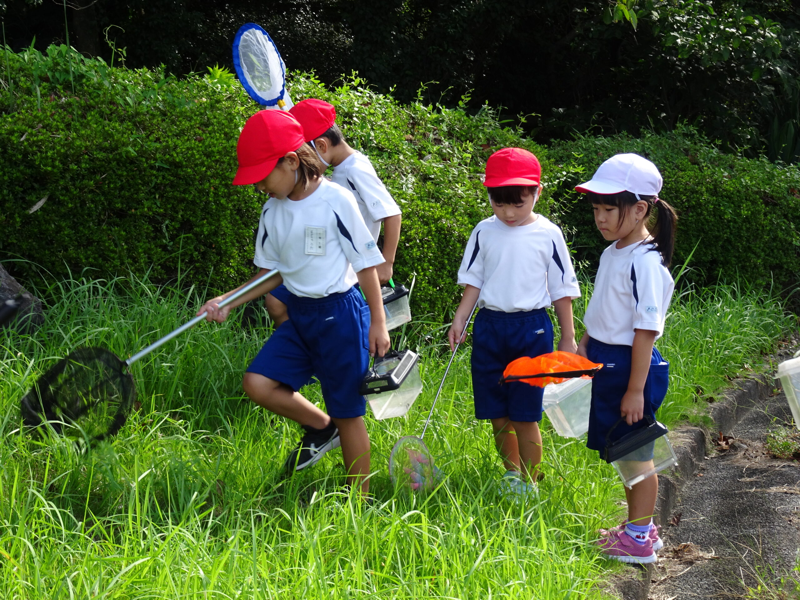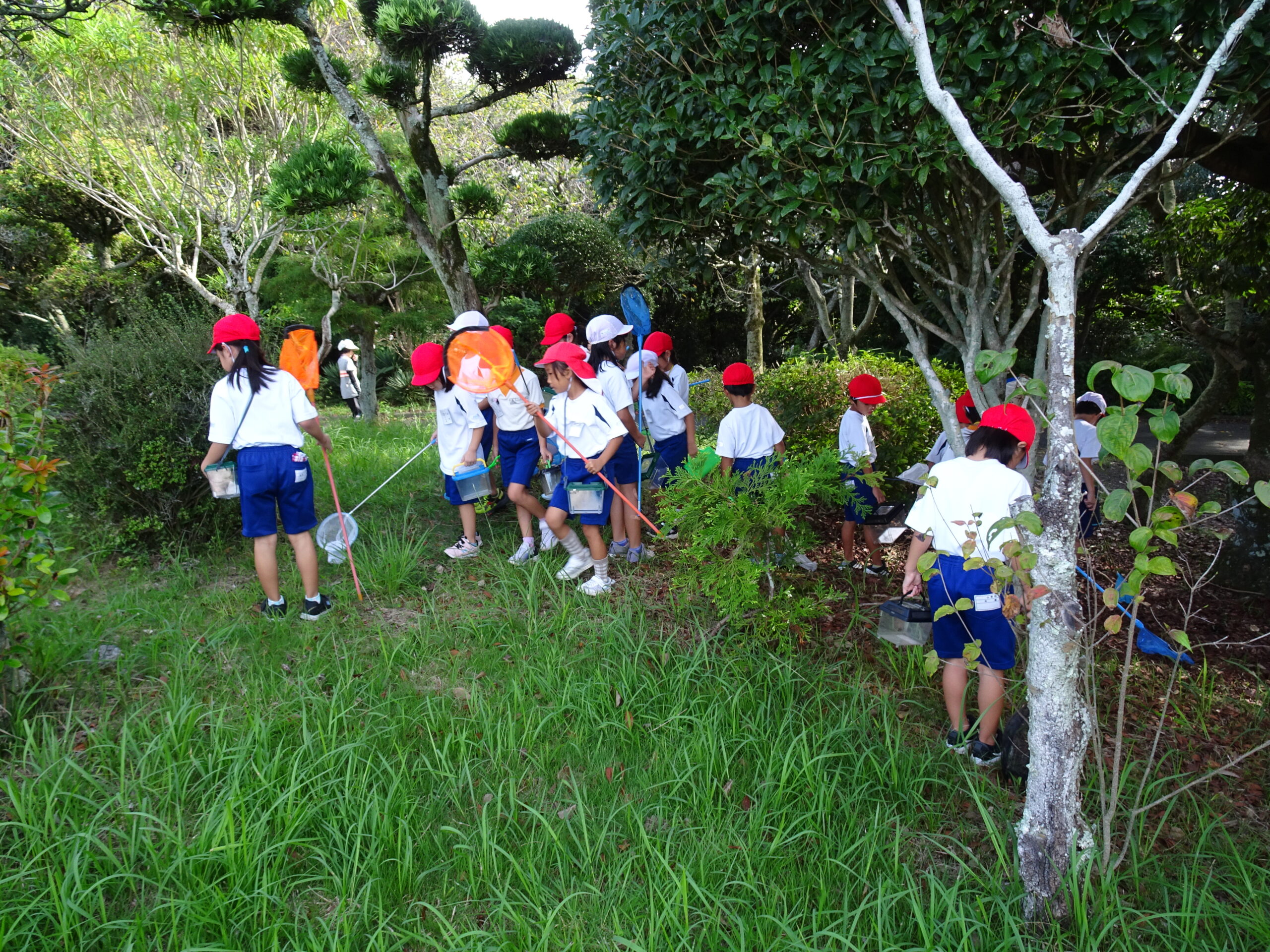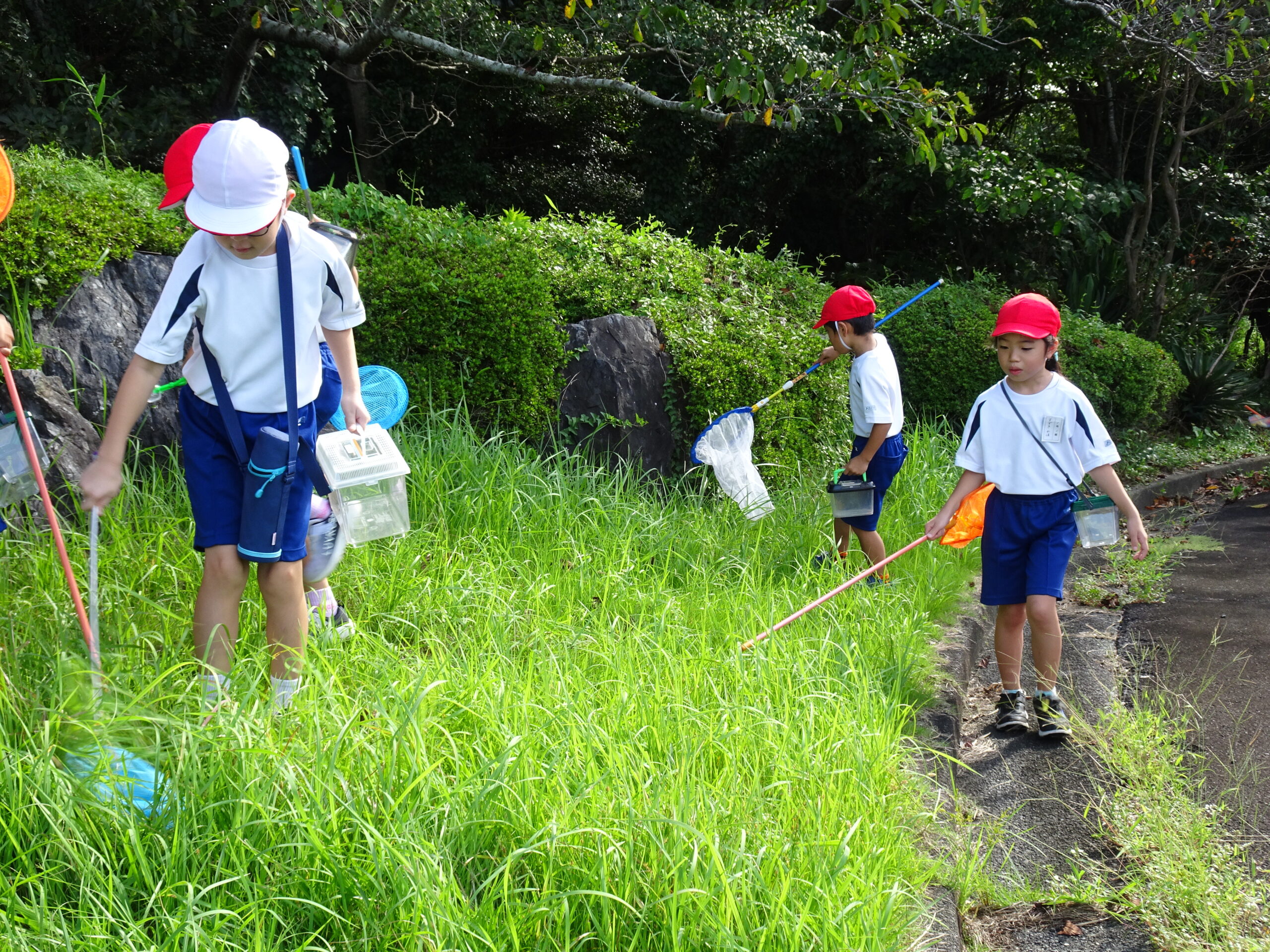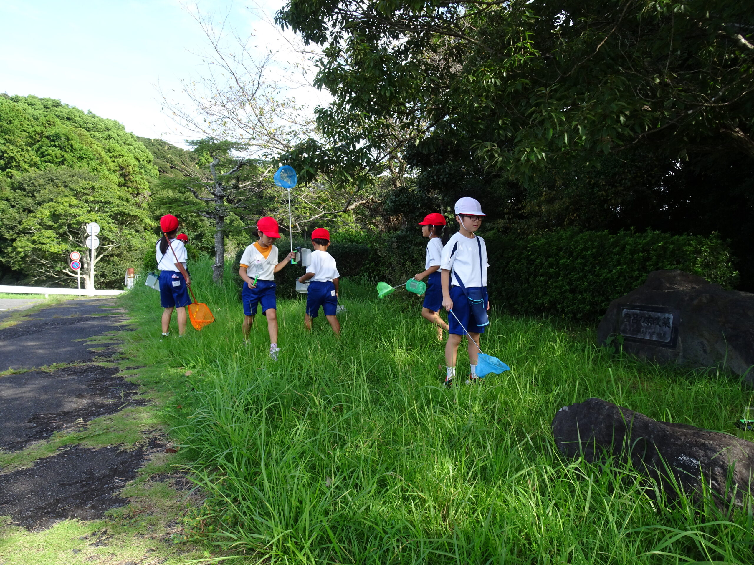 1時間目に1年生が「むしとり」に出かけました。草をかきわけると、バッタがたくさんいたようです。つかまえるのには、かなり苦戦していたようですが。