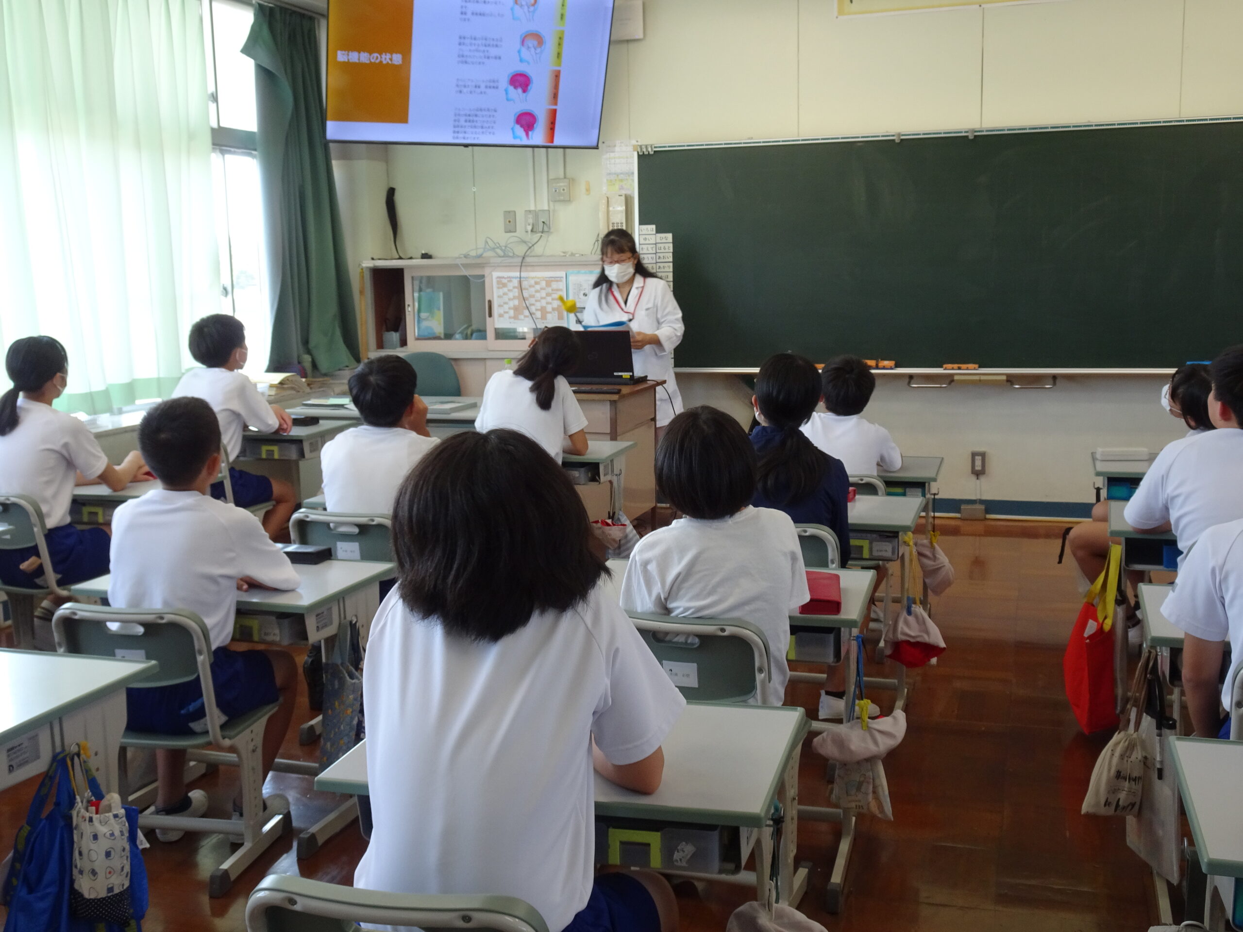 今日は、学校薬剤師さんに来ていただいて、6年生の薬学講座を実施しました