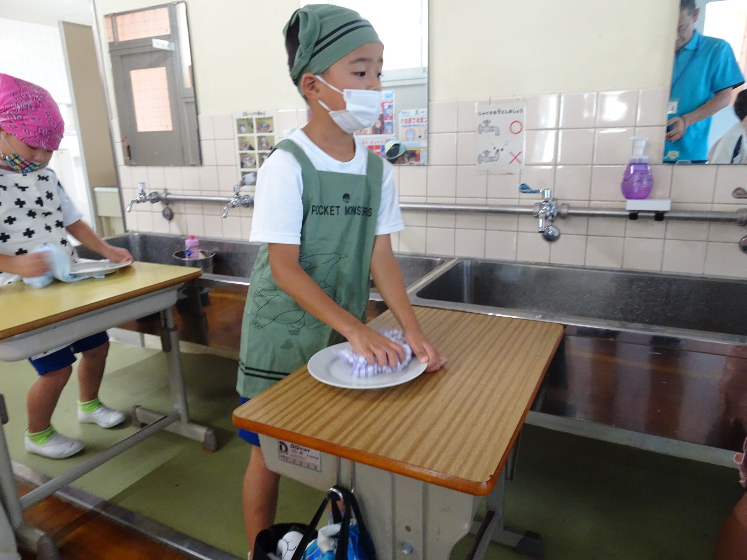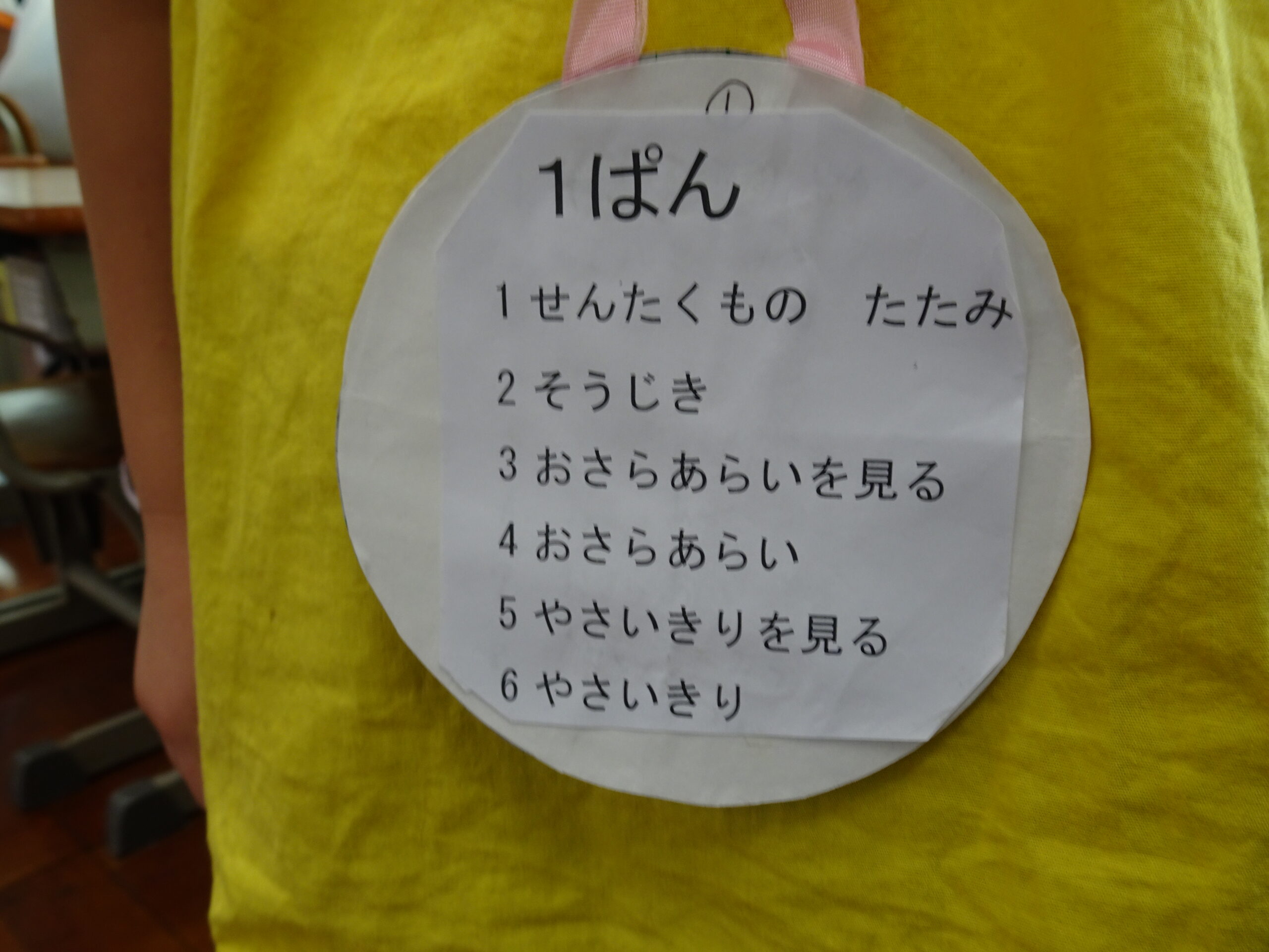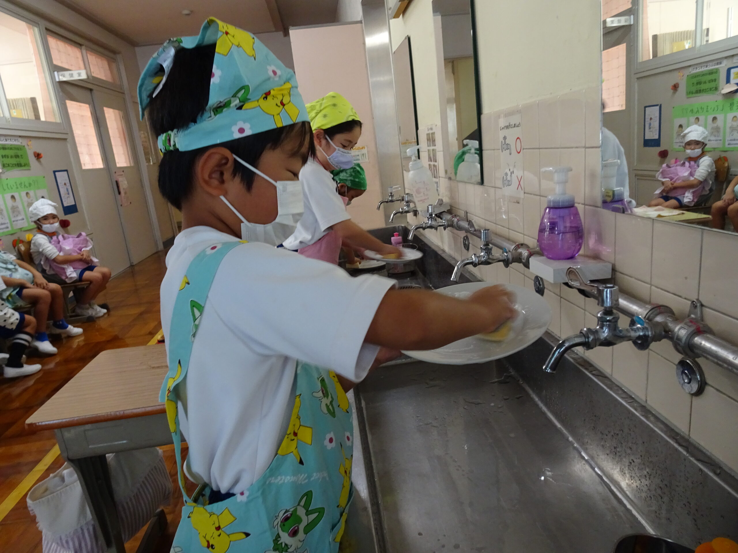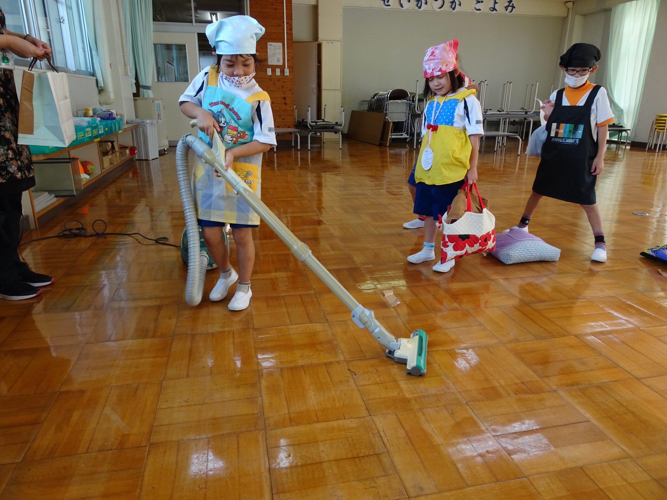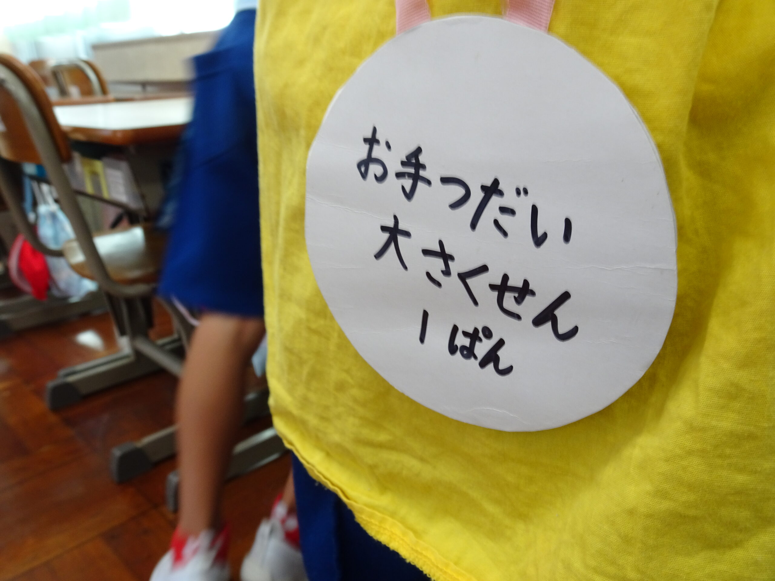 【1年生】お手つだい大さくせん 2024/10/08 1年生が6個のお手つだいに挑戦しました。「おねがいします!」と大きな声であいさつをして、それぞれのおしごとをやっていきました。 みんなとても上手で、家でもお手伝いをしているのがわかりました。 包丁を使って、きゅうりを切るのはむずかしかったかな?その後、おいしくいただいたようです。 お手つだい大さくせん、大せいこう!!