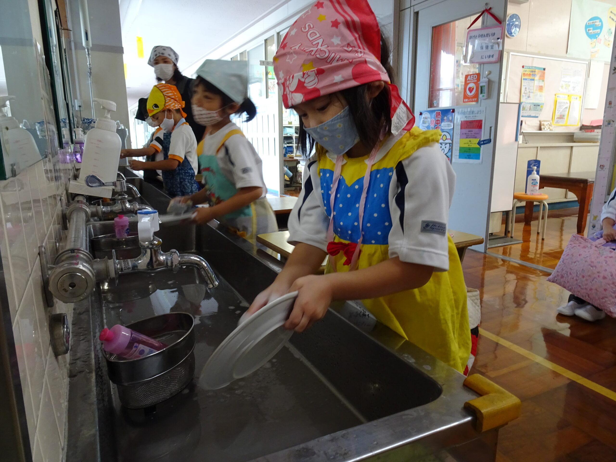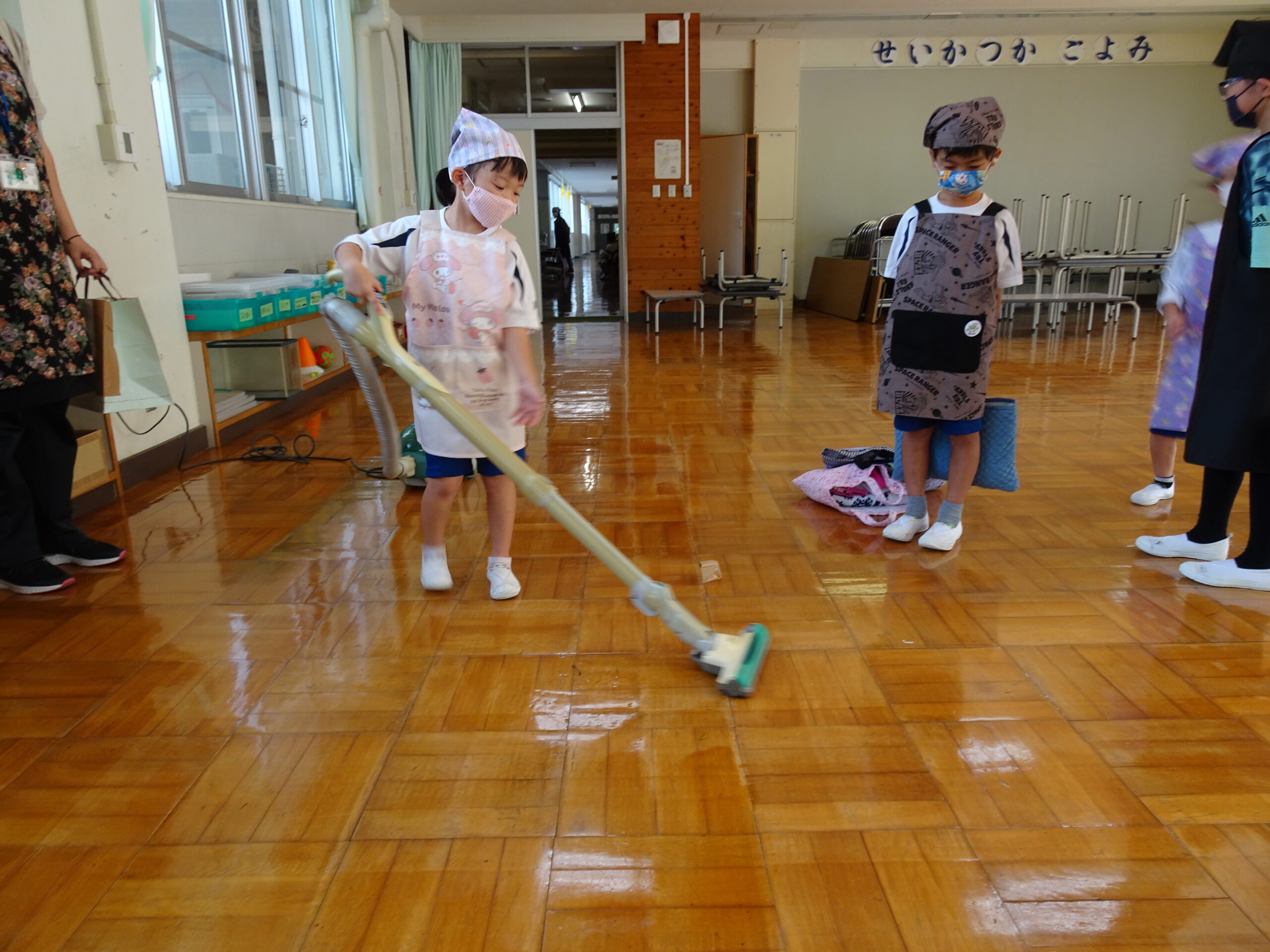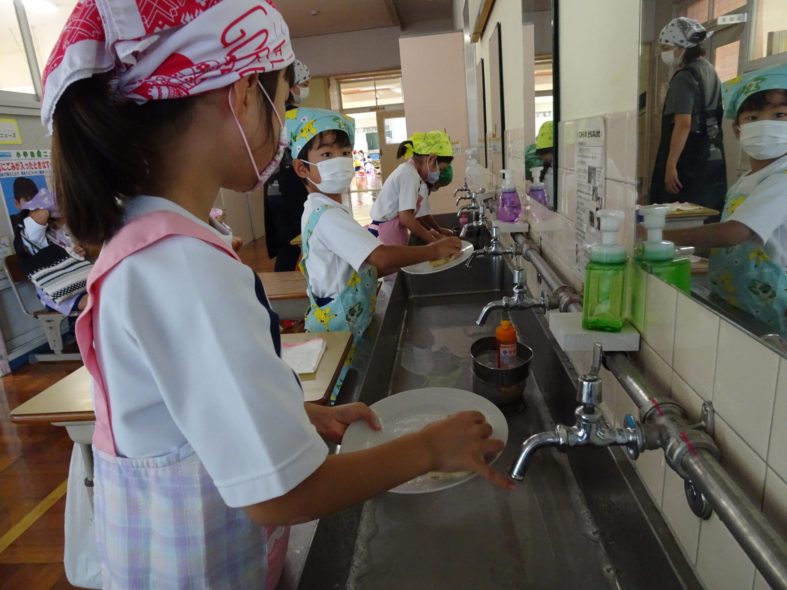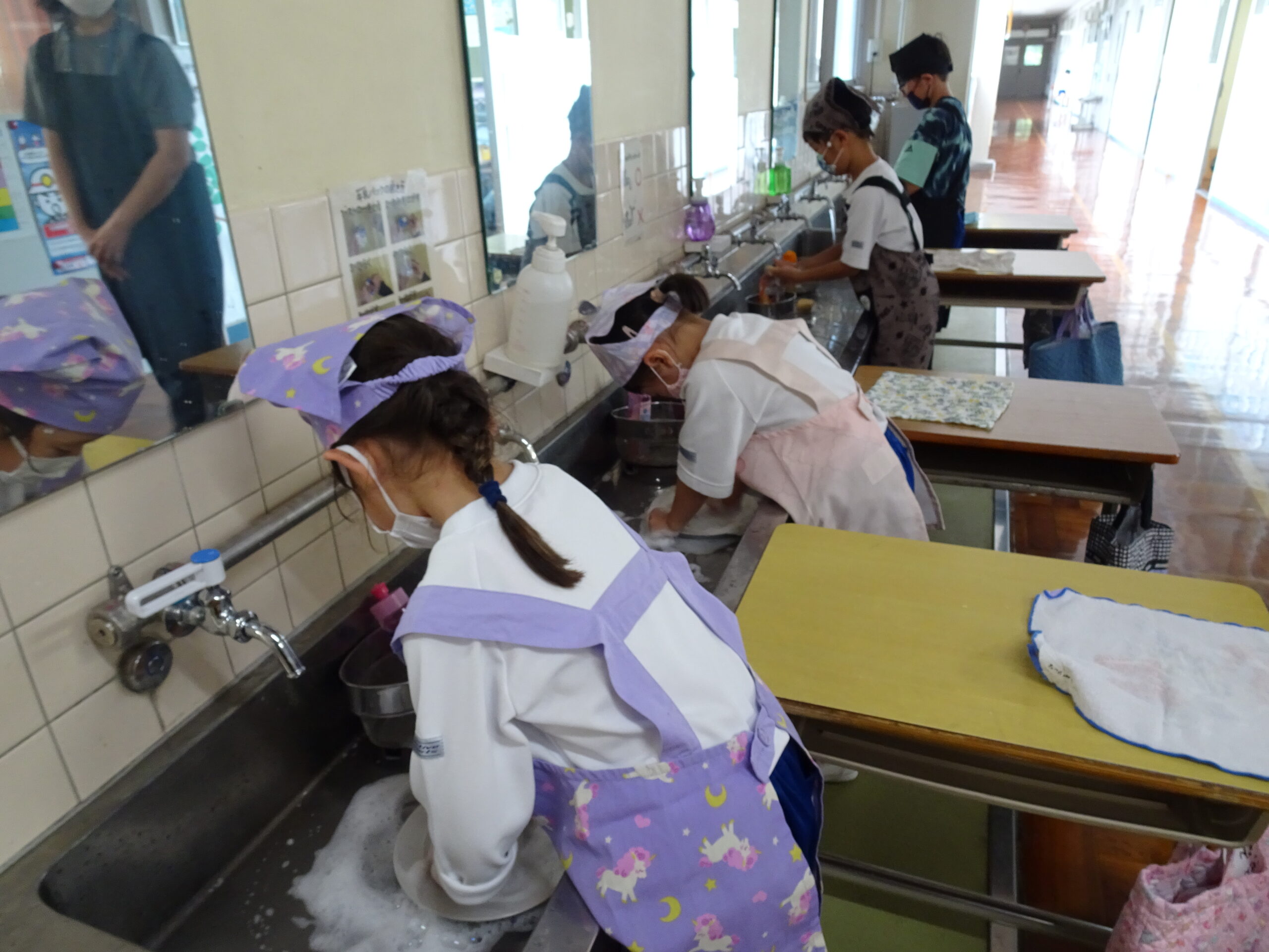【1年生】お手つだい大さくせん 2024/10/08 1年生が6個のお手つだいに挑戦しました。「おねがいします!」と大きな声であいさつをして、それぞれのおしごとをやっていきました。 みんなとても上手で、家でもお手伝いをしているのがわかりました。 包丁を使って、きゅうりを切るのはむずかしかったかな?その後、おいしくいただいたようです。 お手つだい大さくせん、大せいこう!!