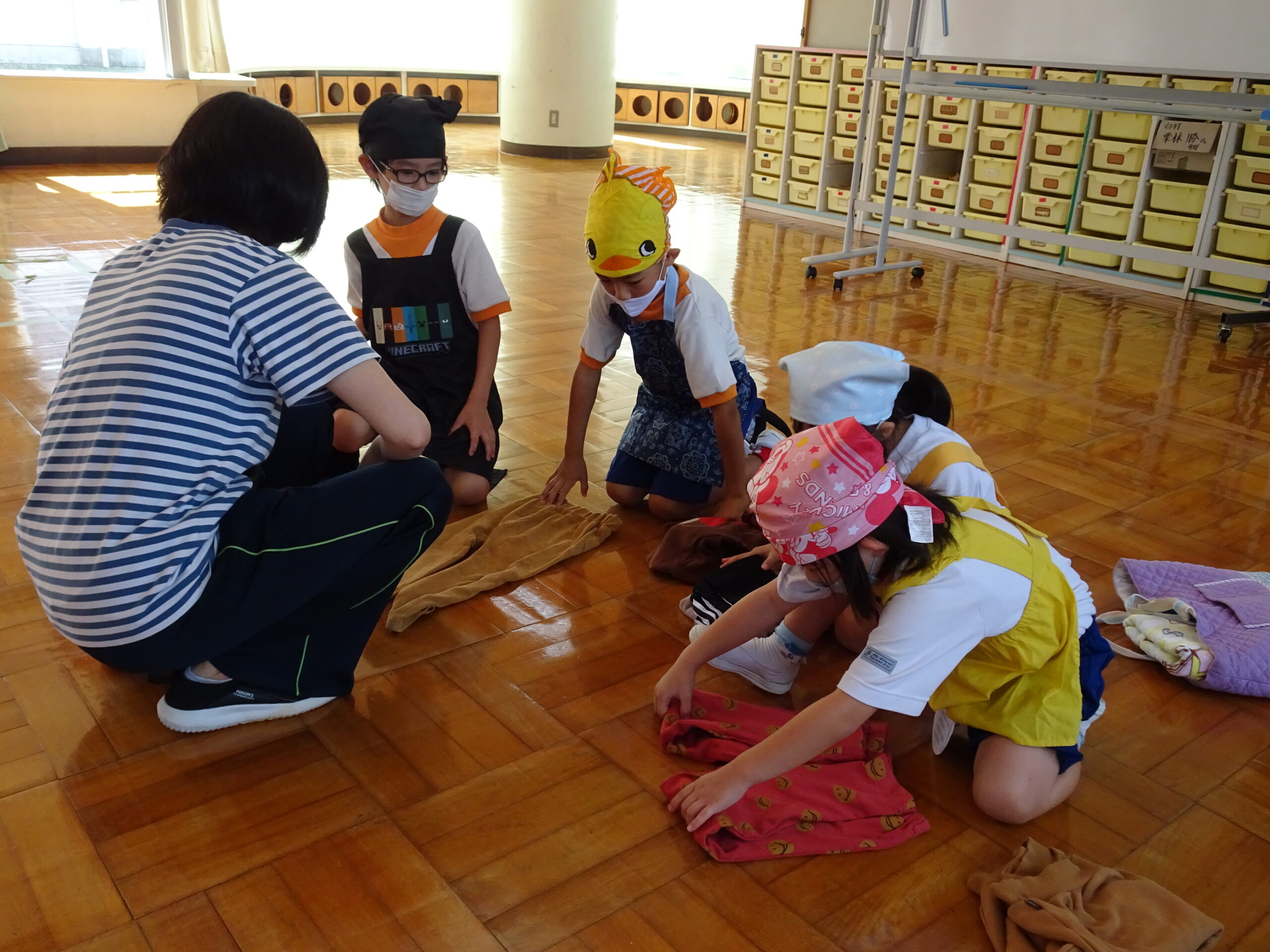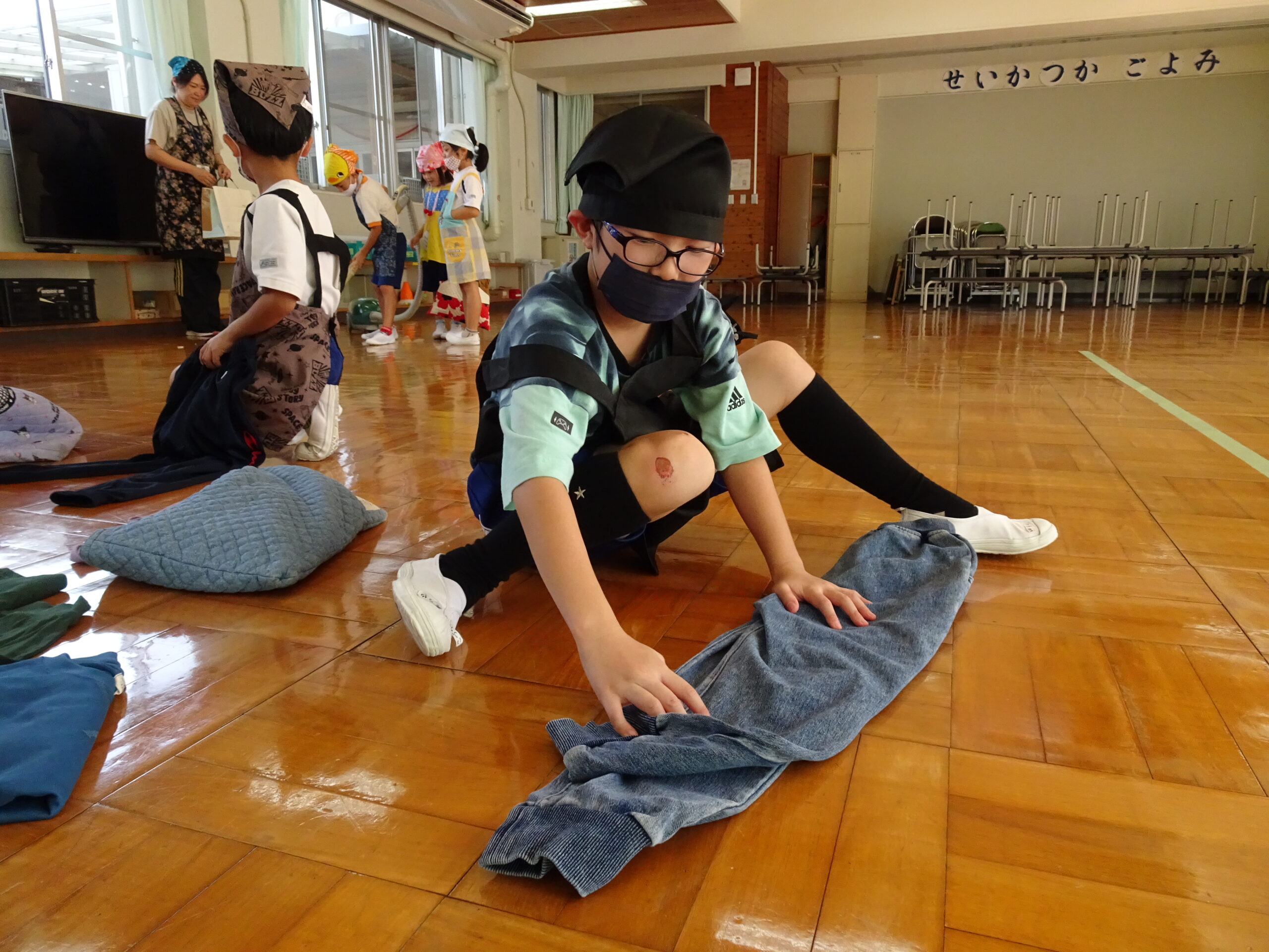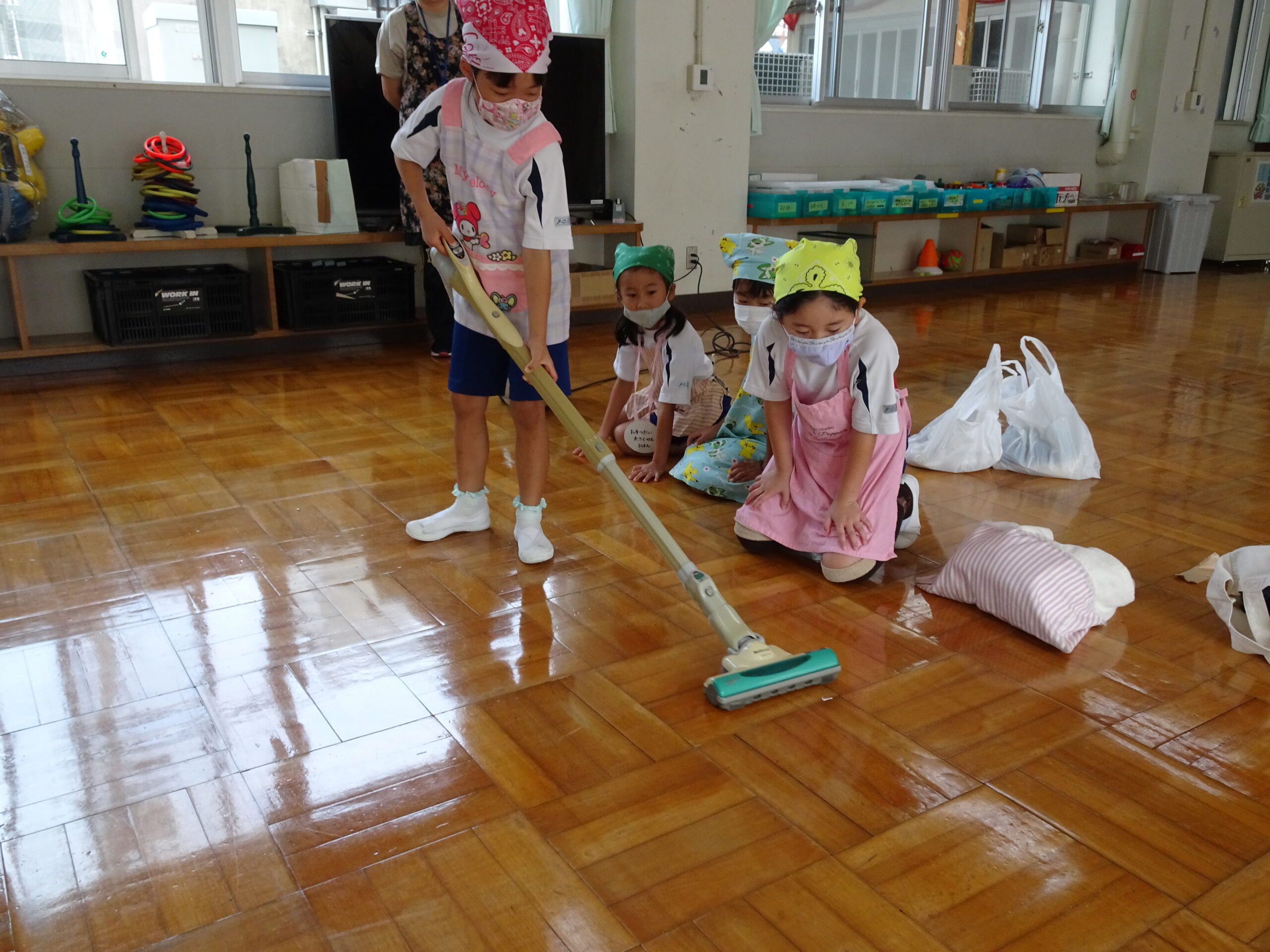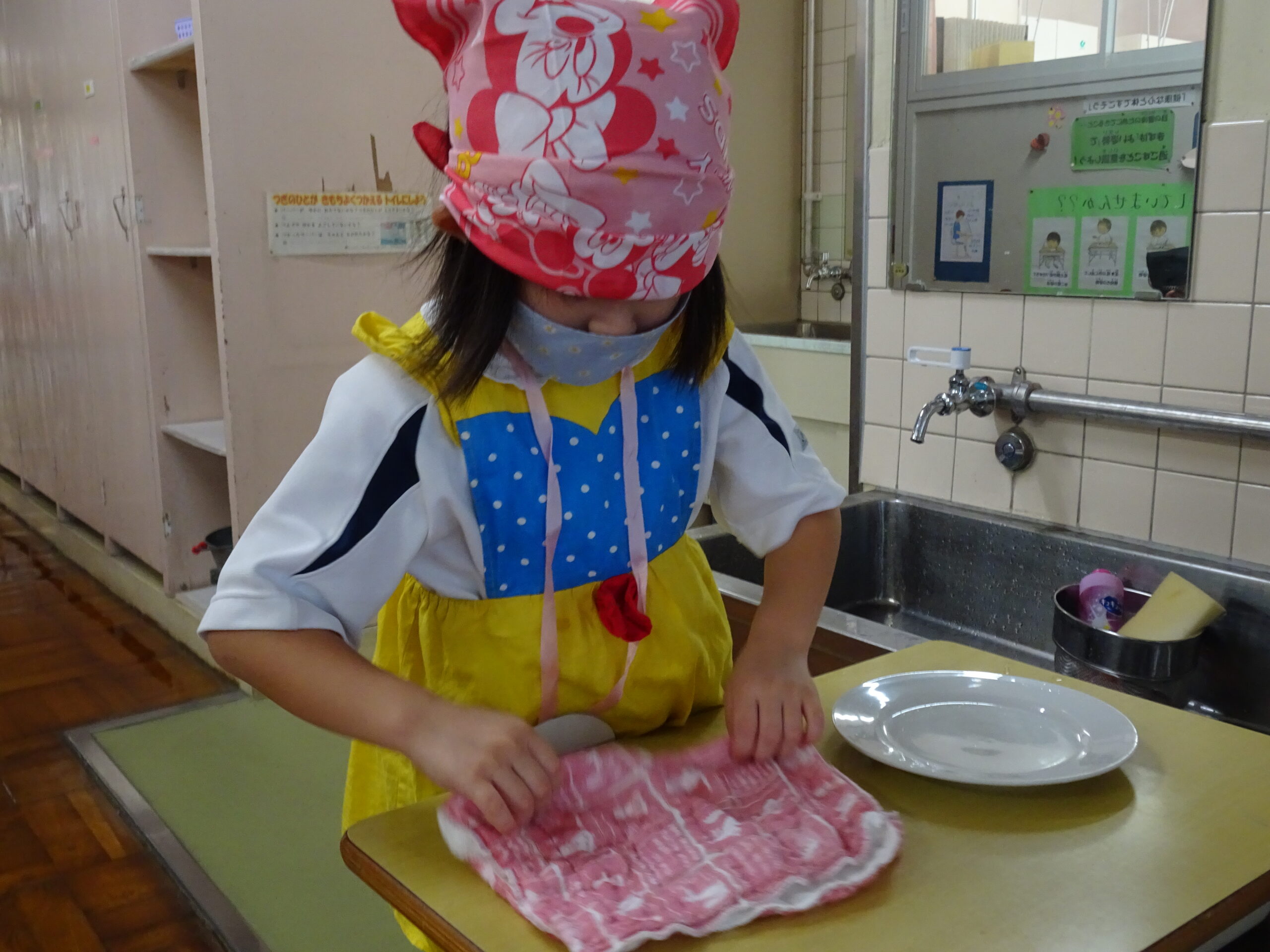 【1年生】お手つだい大さくせん 2024/10/08 1年生が6個のお手つだいに挑戦しました。「おねがいします!」と大きな声であいさつをして、それぞれのおしごとをやっていきました。 みんなとても上手で、家でもお手伝いをしているのがわかりました。 包丁を使って、きゅうりを切るのはむずかしかったかな?その後、おいしくいただいたようです。 お手つだい大さくせん、大せいこう!!