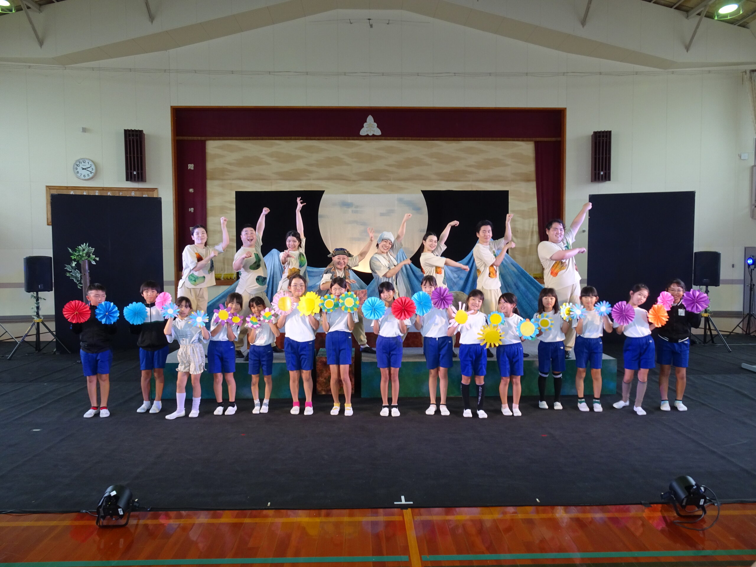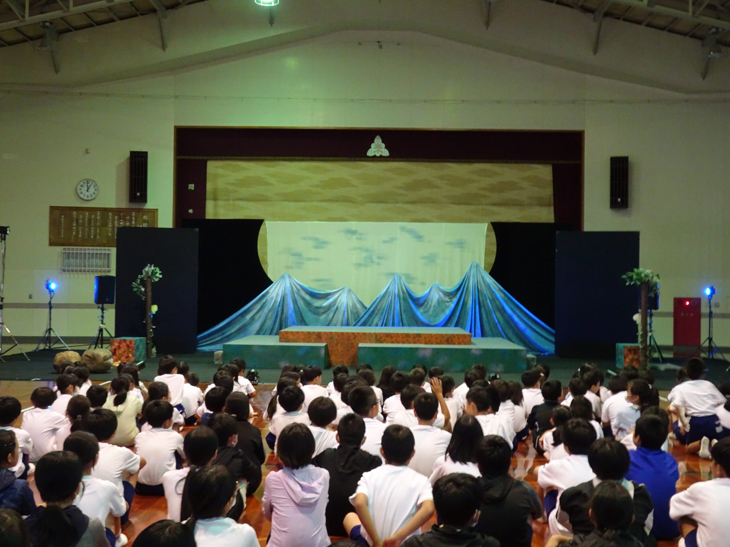 今日は、総合劇集団 俳優館の皆さんによるミュージカル「あらしのよるに」を全員で見ました。トップクラスの文化芸術団体による巡回公演が行われる学校巡回公演というイベントが北小学校に来てくれました。俳優館の皆さんは、朝から舞台設置作業をし、午前はリハーサルなどをして、公演の準備をしてくれていました。とてもすばらしい舞台を見られて思い出になりましたね。