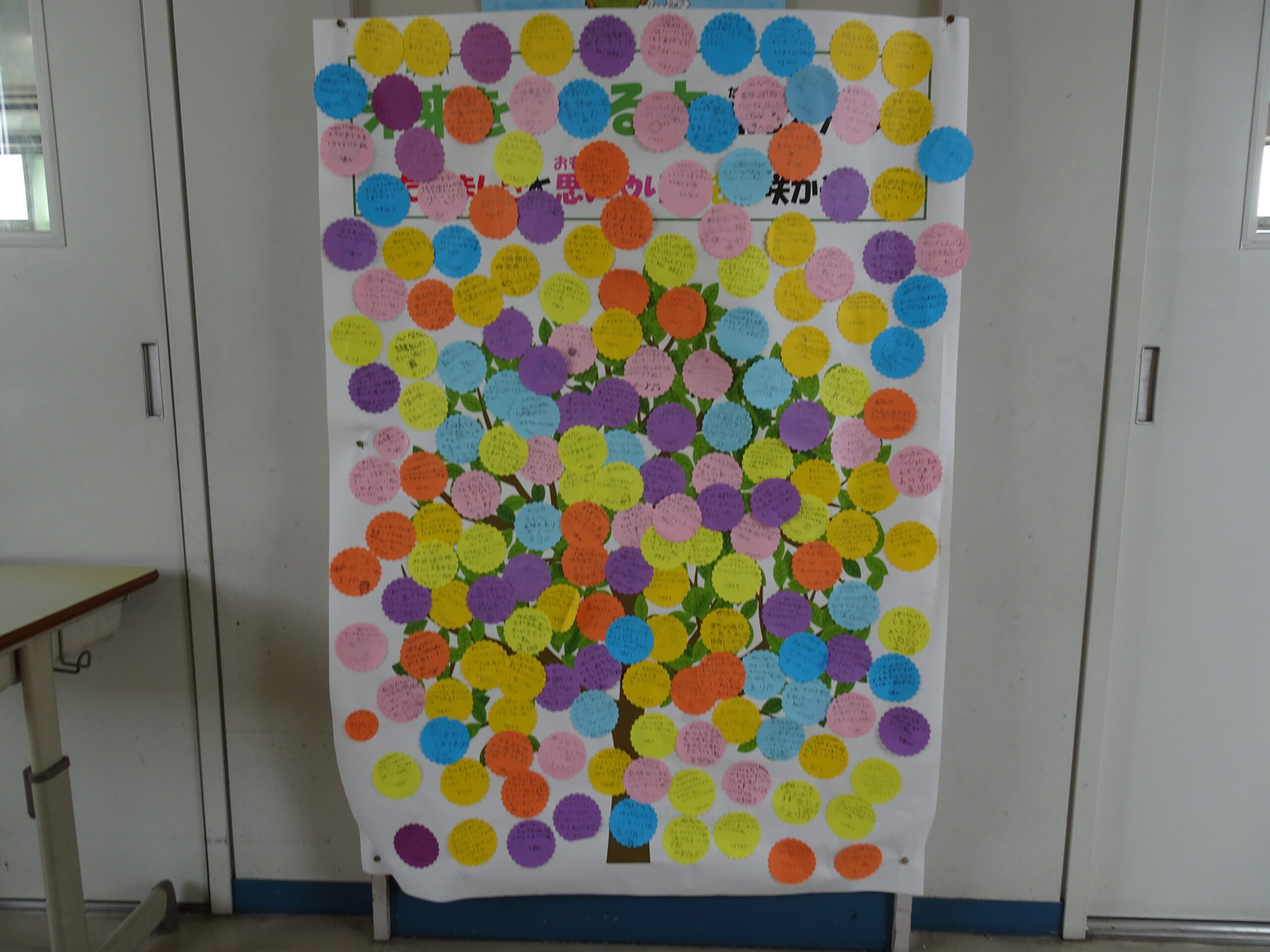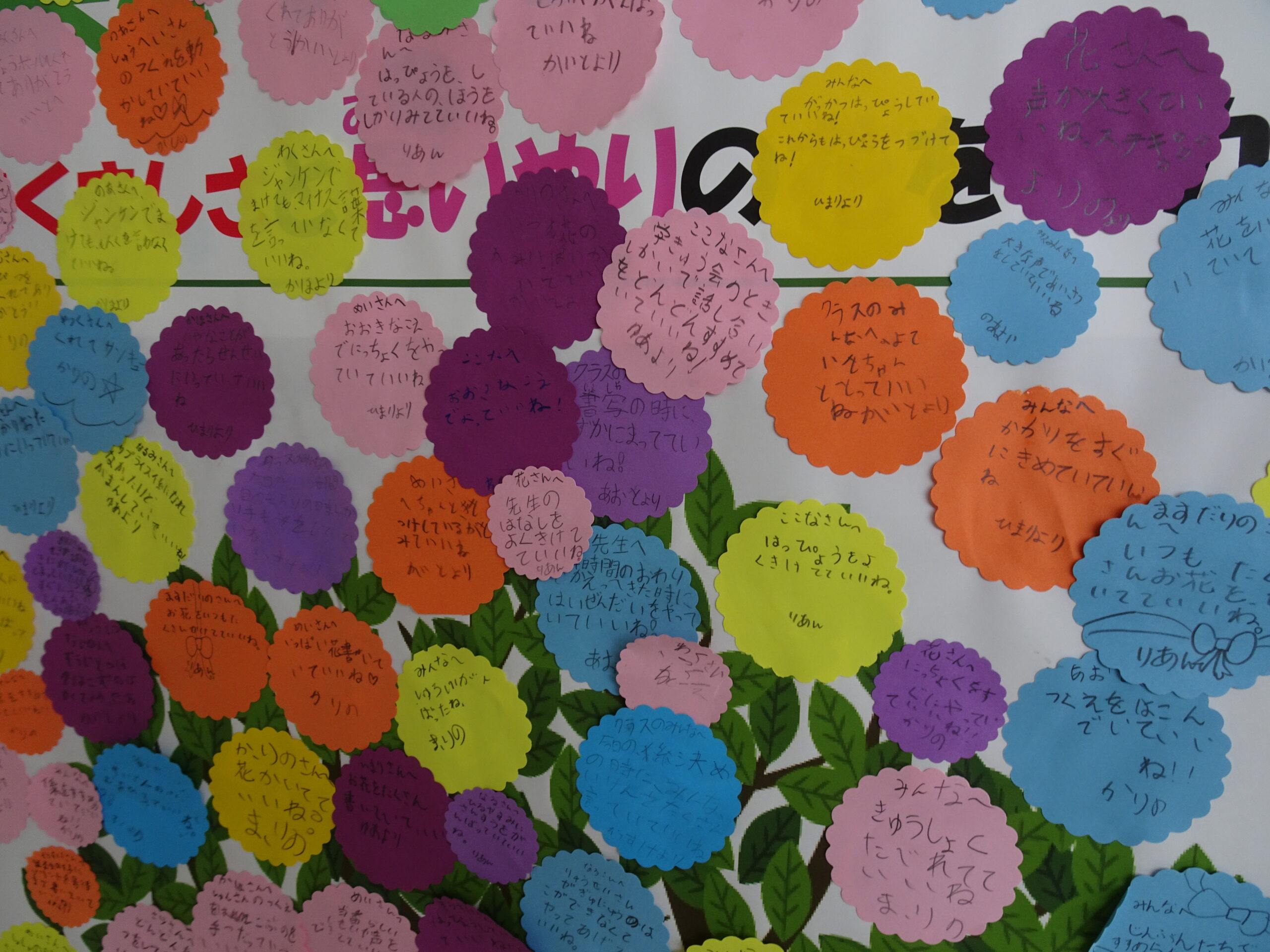 第3ステージは、未来をつくる木に、たくましさと思いやりの「花」を咲かそう!がテーマです。4年生の教室前には、花がたくさん咲いていて、早くも2本目の木もいっぱいになりつつあります。仲間のたくましさいっぱいの姿や思いやりある姿を見つけられ、それを伝えられるって、すてきですね。