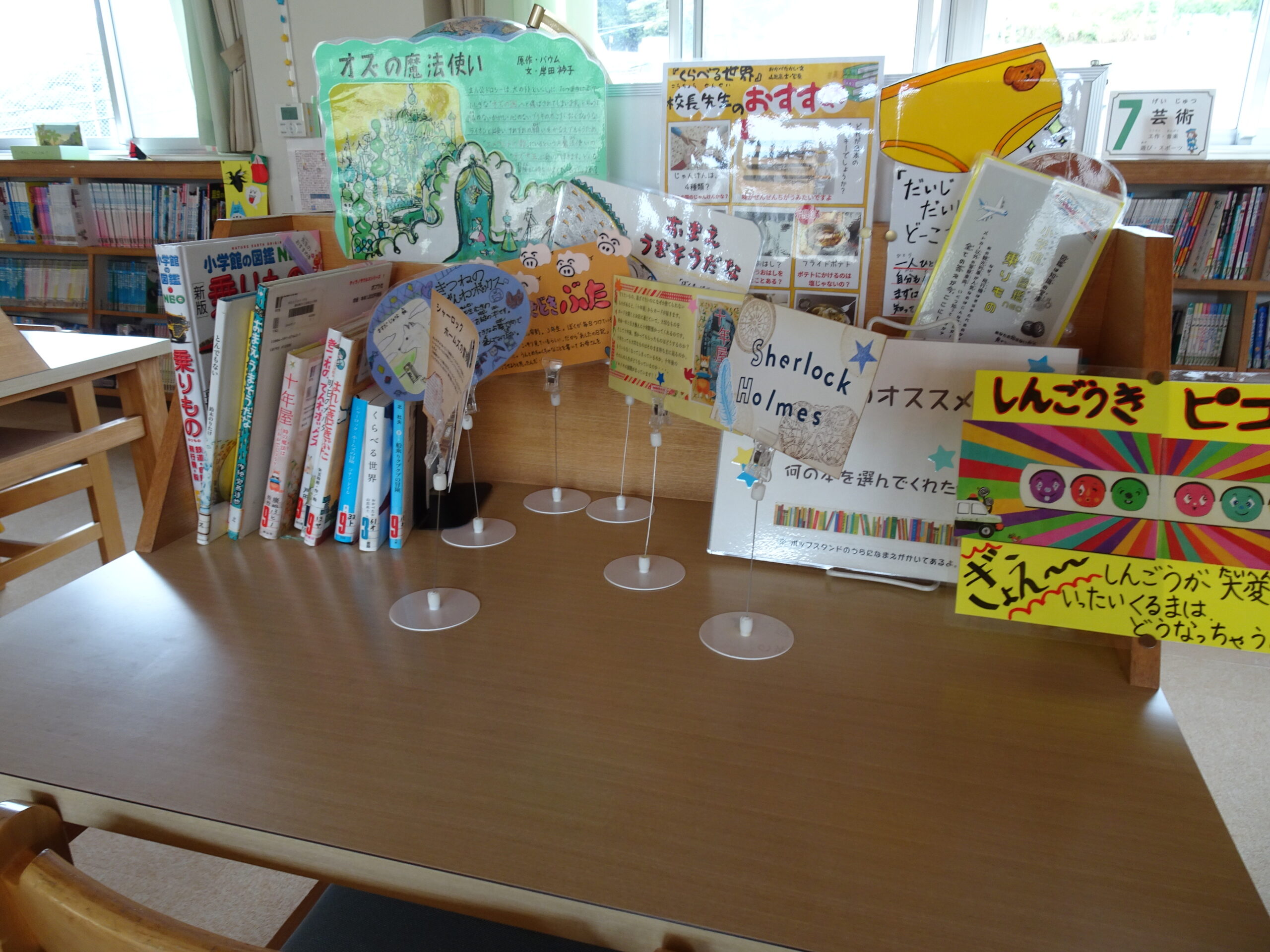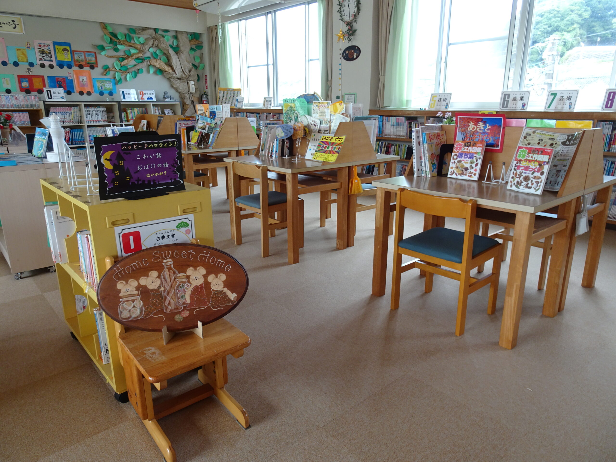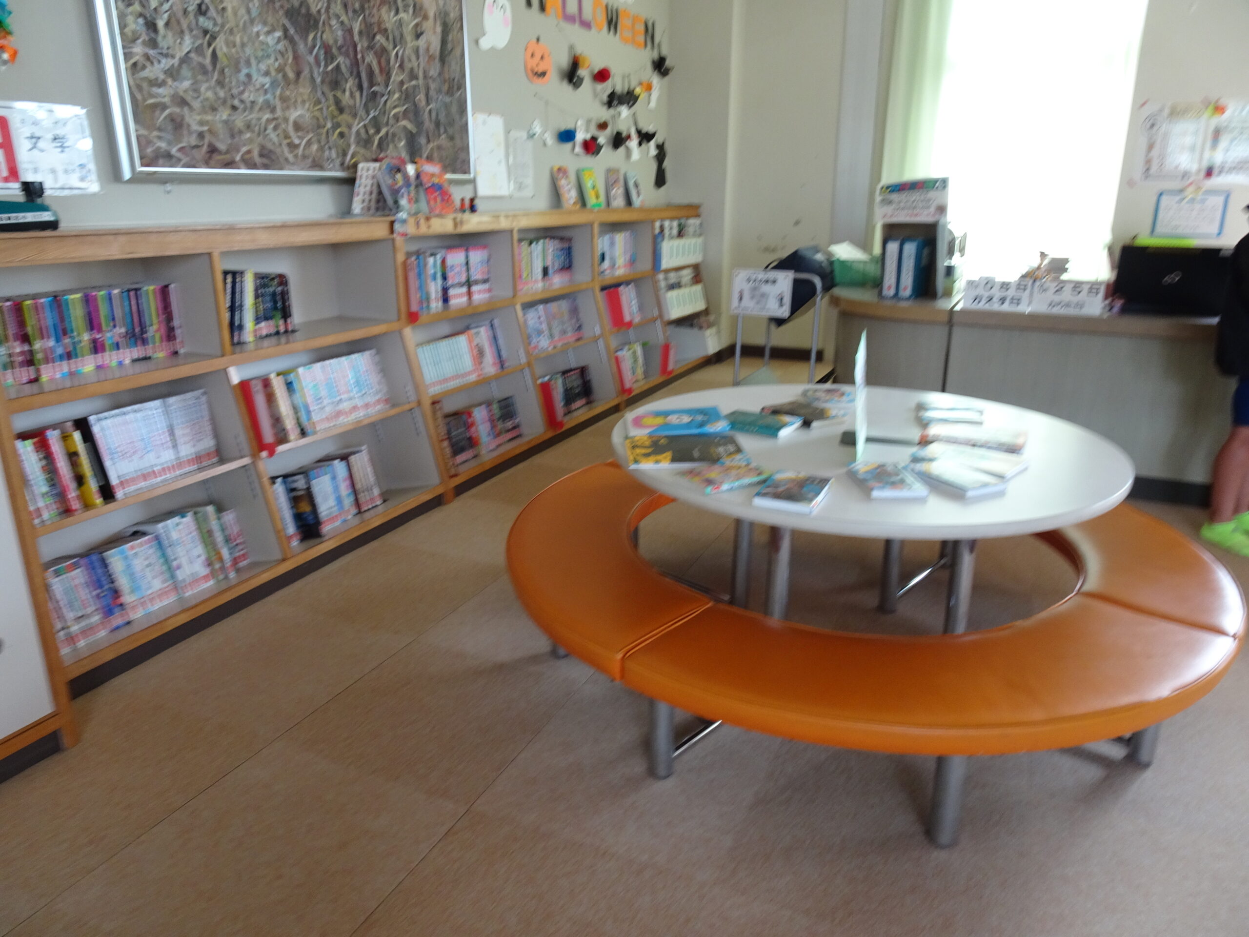 図書館で楽しもう 2024/10/28 北小図書館にはいろいろな本があります。たくさん本を読む人がいて、今年度に入って100冊突破!200冊突破!!という人もいます。「読書の秋」と言われる季節なので、ぜひ本を手に取ってみましょう。ハロウィンイベントもやっていますよ。