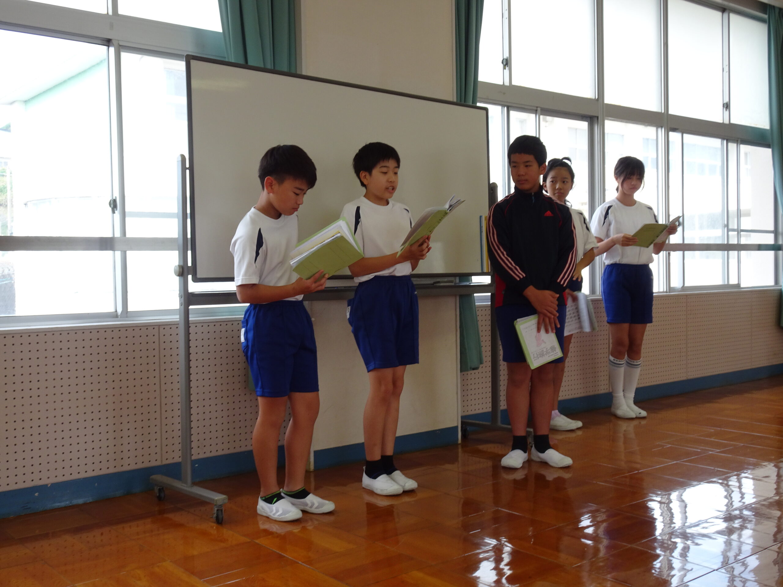 【6年生】出発の会 2024/10/30 6年生が修学旅行の出発の会をおこないました。 ここでもみんなの前で堂々と、代表の言葉や自分のめあて発表ができていました。どんな場面でも堂々と話し、それを温かな様子で聞く姿が6年生のすばらしさです。
