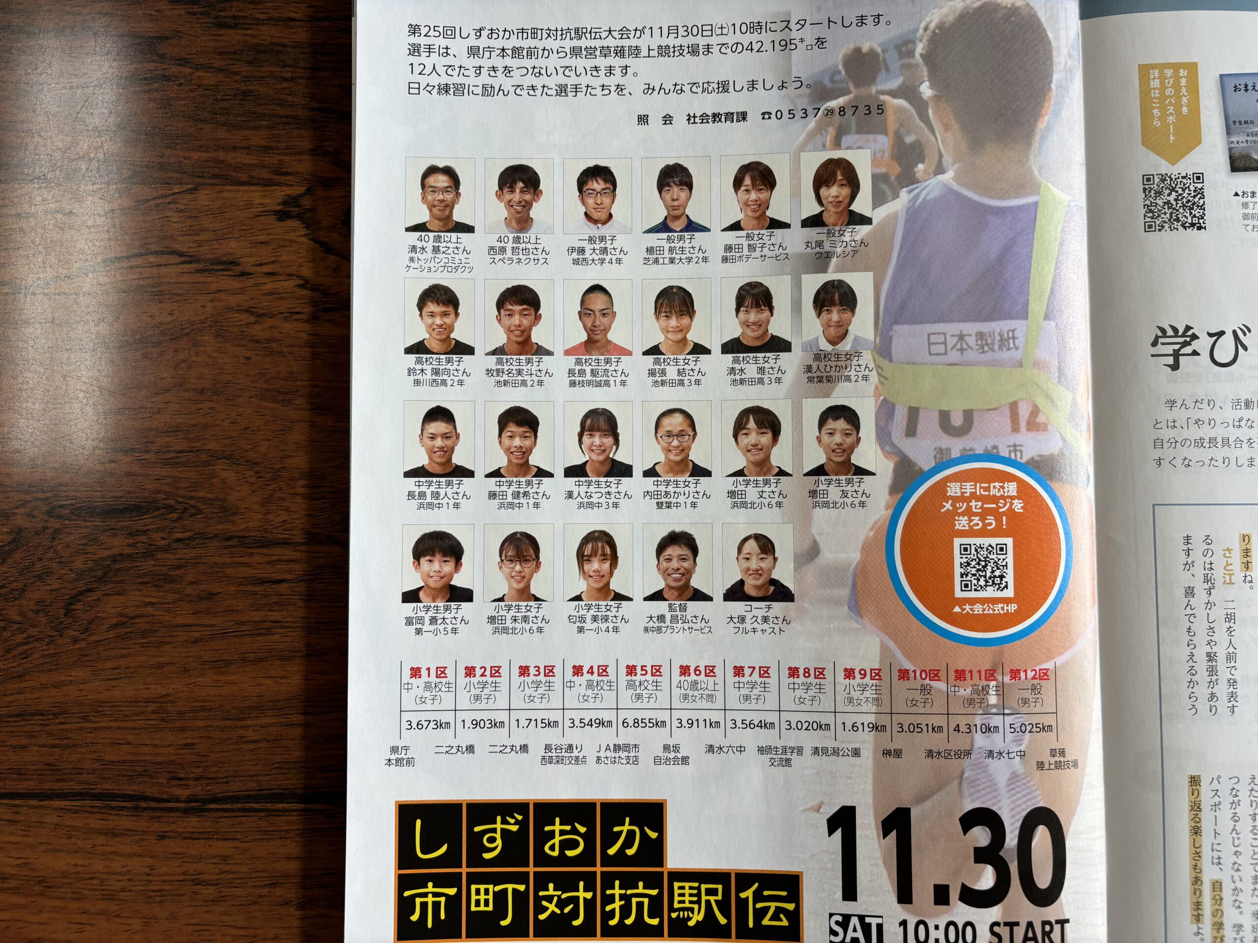「しずおか市町対抗駅伝」に出場します 2024/11/15 静岡県の冬の風物詩である、「しずおか市町対抗駅伝」の代表選手に本校から3人が選ばれました。 今年度はじめからおこなわれた練習会や記録会で上位の記録を残し、出場権を手に入れました。現在は、本番当日に走る選手を決めるための選考会にむけてがんばっています。 「北小学校は、市内小学校の中で児童数が一番少ないのに、たくさん出場してくれてすごいですね。」「みんながんばってくれています。」と温かいお言葉をたくさんいただいています。 本番は、11/30(土)です。