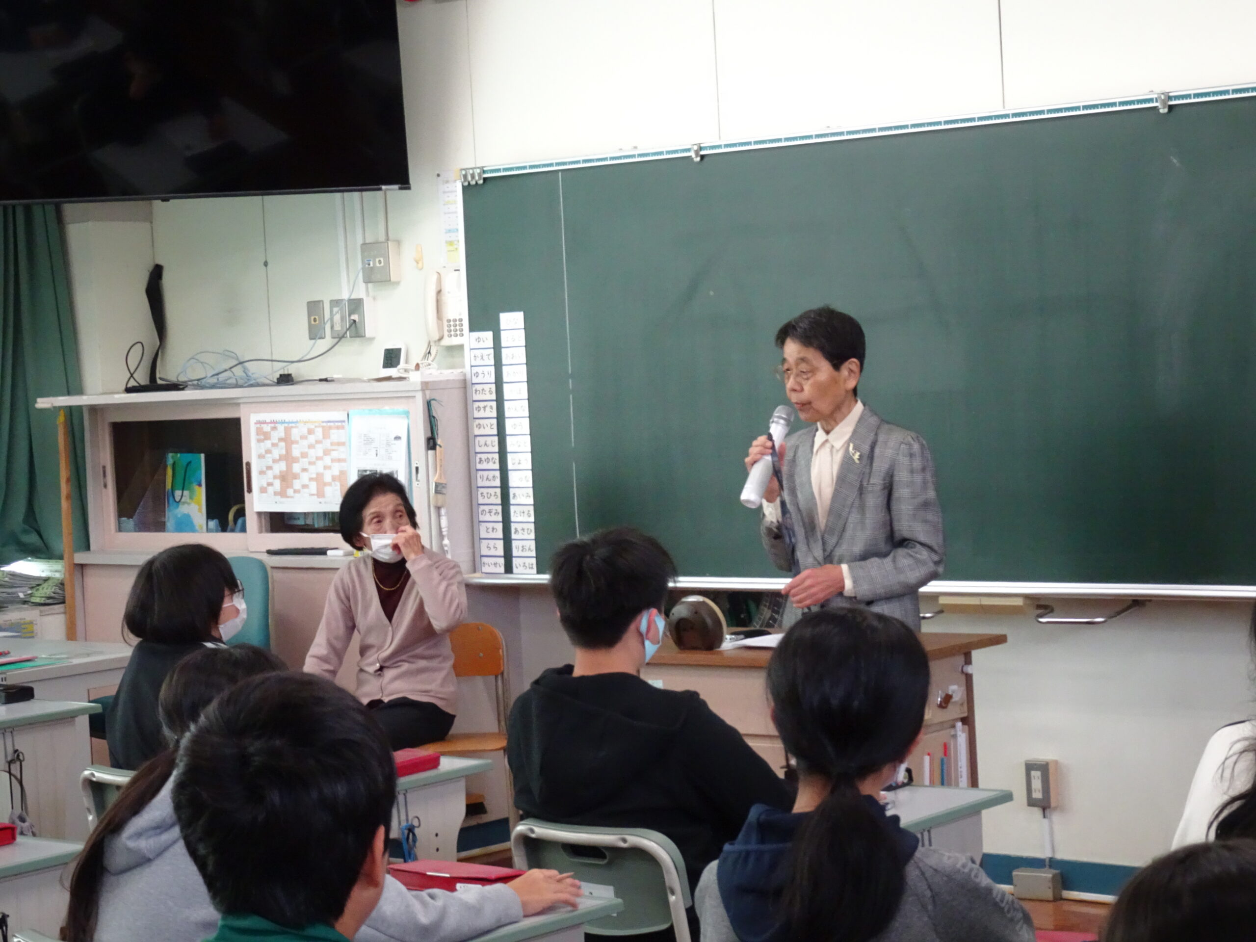 【6年生】戦争について知る 2024/12/09 今日は、退職女性教職員の会(退女教)のみなさんが、6年生に戦争の時の話をしてくれました。 「戦争について聞いたことある人?」という質問に手をあげる子供はとても少なく、戦争から時間が経過していることを感じさせられました。今回のような機会は、今後の学習にもいきてくることでしょう。おこしくださったみなさん、ありがとうございました。