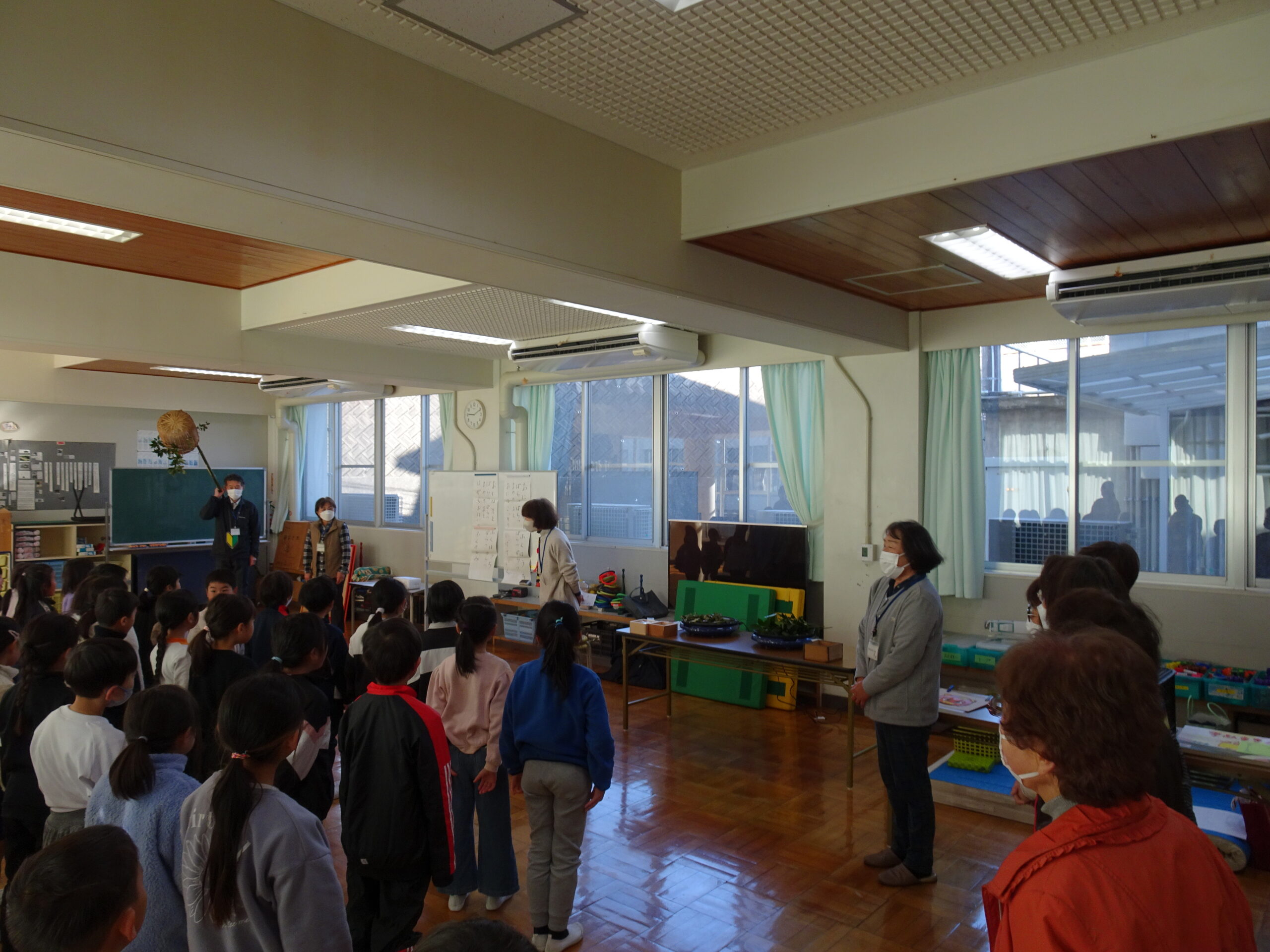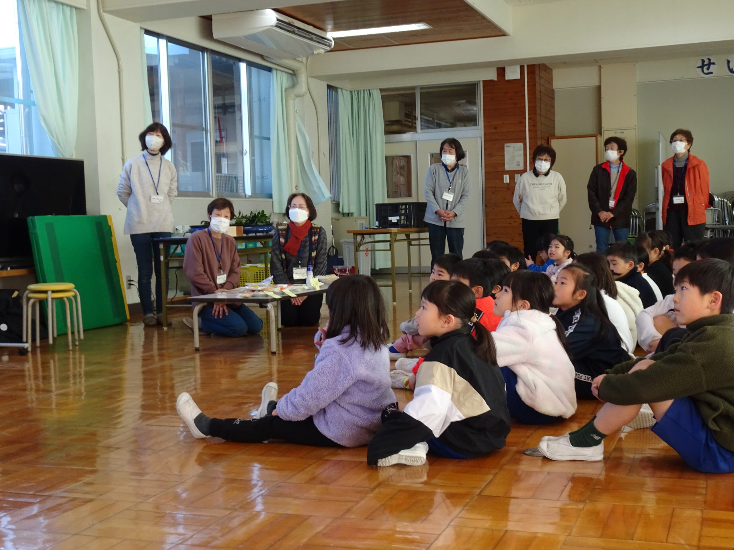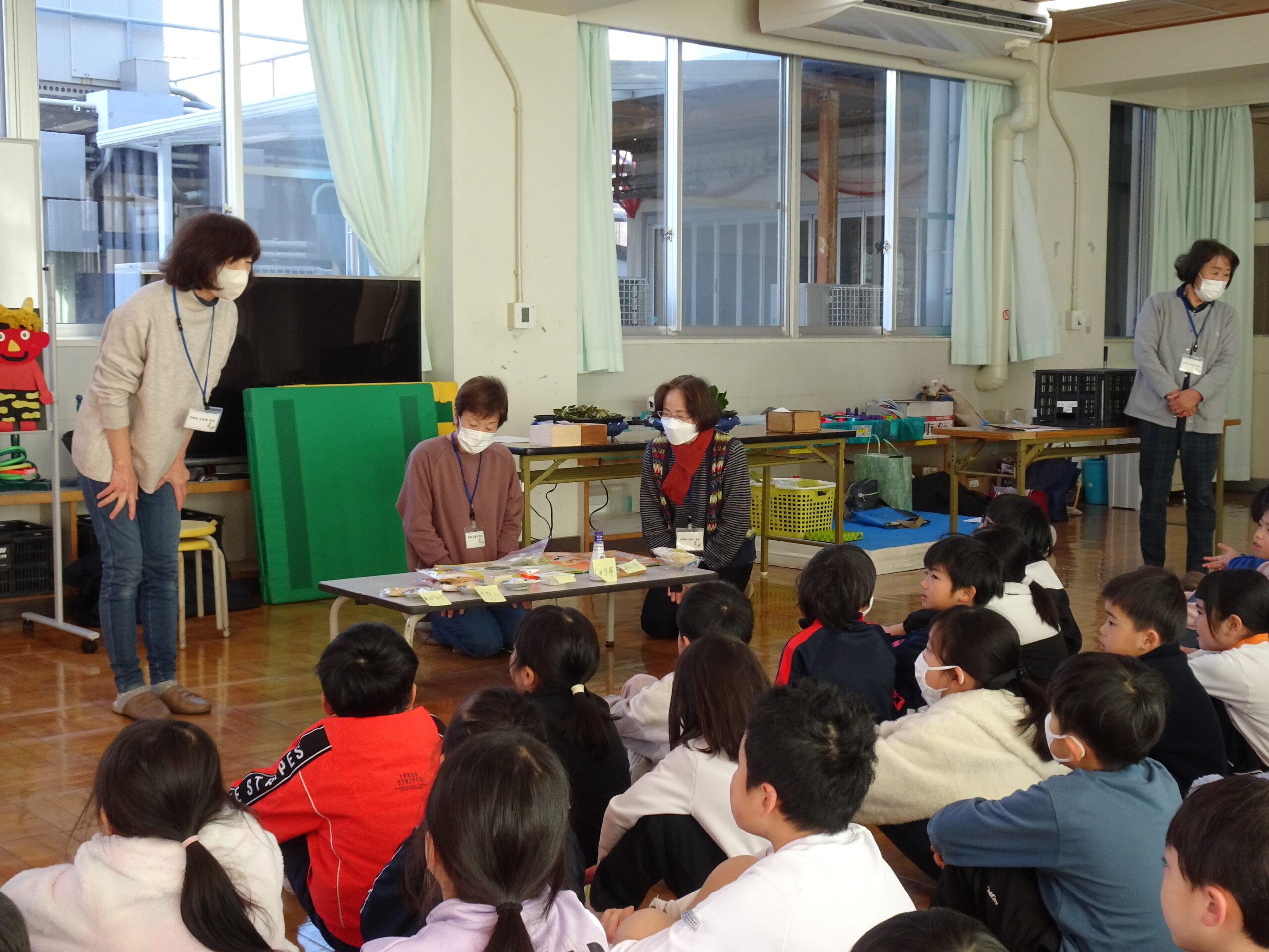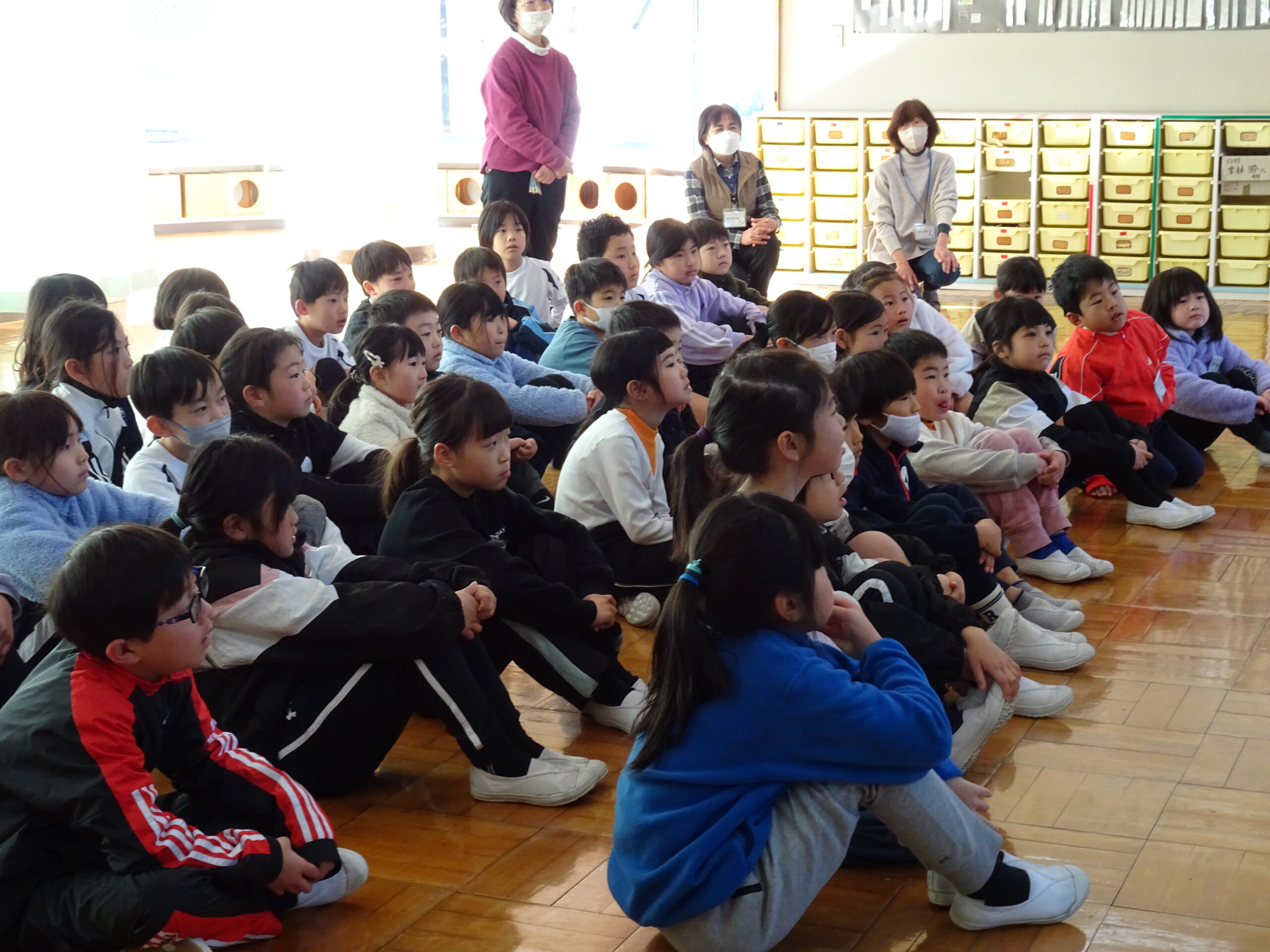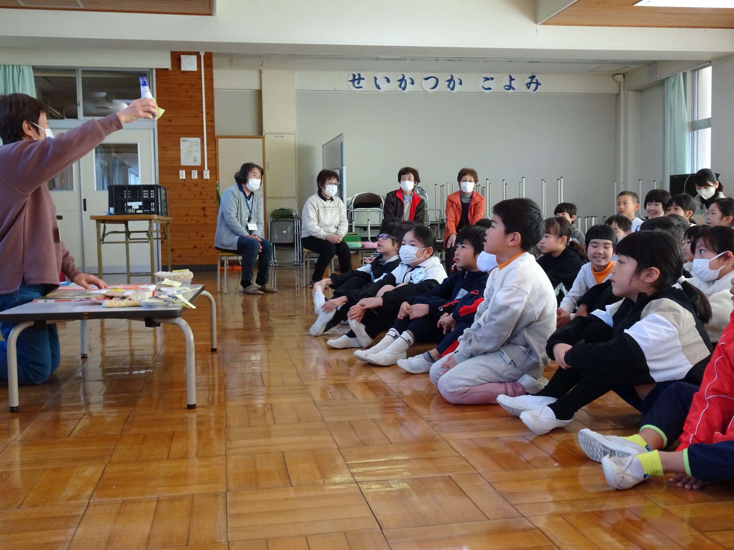 【1・2年生】節分集会がありました 2025/01/29 2時間目に節分集会がおこなわれました。1年生と2年生は朝から楽しみにしていて、ワクワクしながら登校してきました。 読み聞かせボランティアおとぎの国の皆さんが中心となって、節分という年中行事の意味や「豆にはすごいパワーがあるんだよ」ということを教えてくれました。 クイズや読み聞かせもあって、楽しい時間となりました。 ありがとうございました。