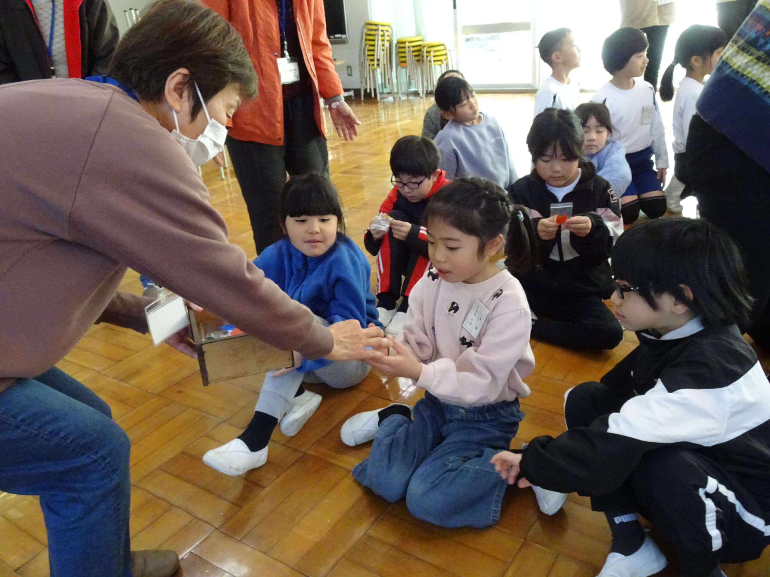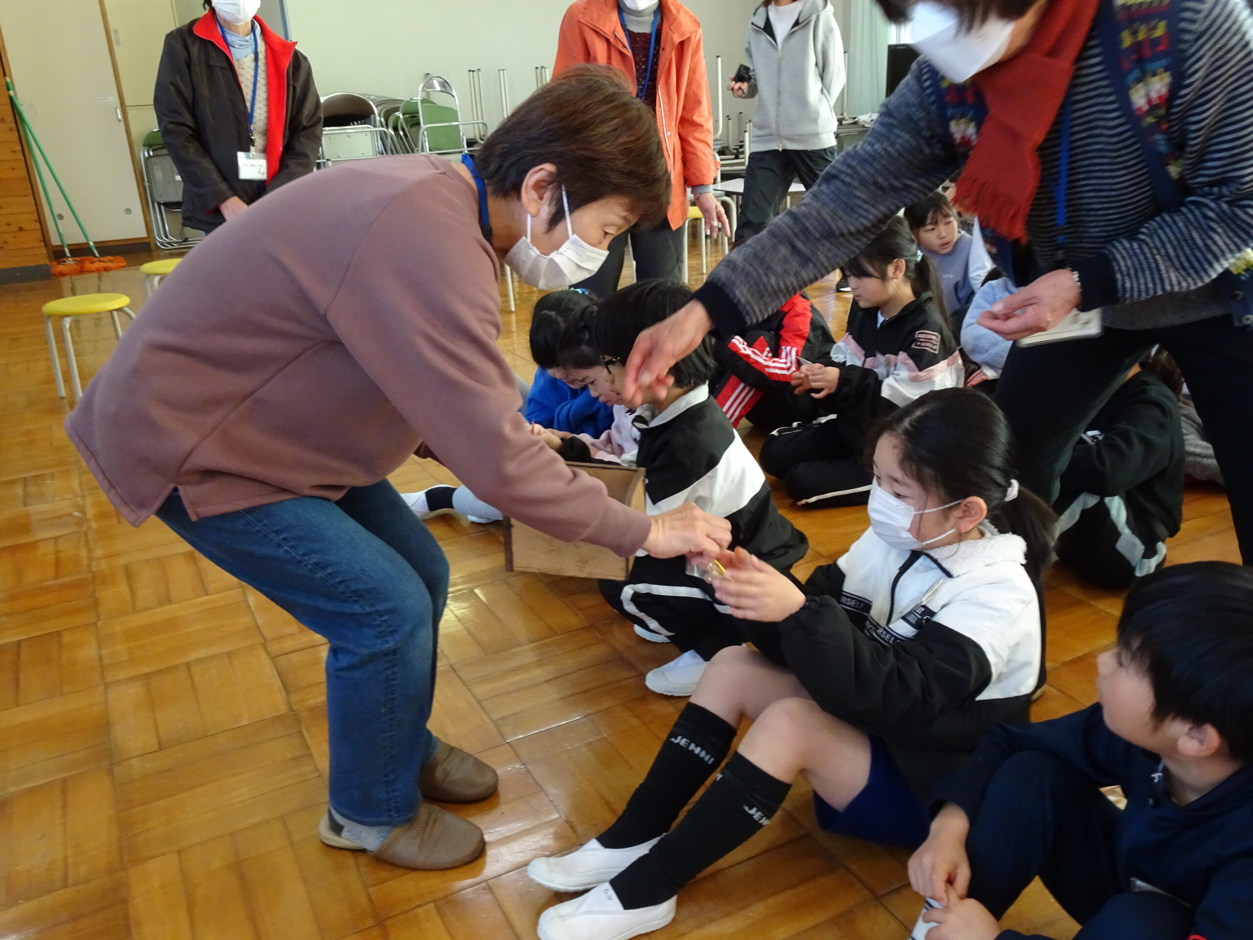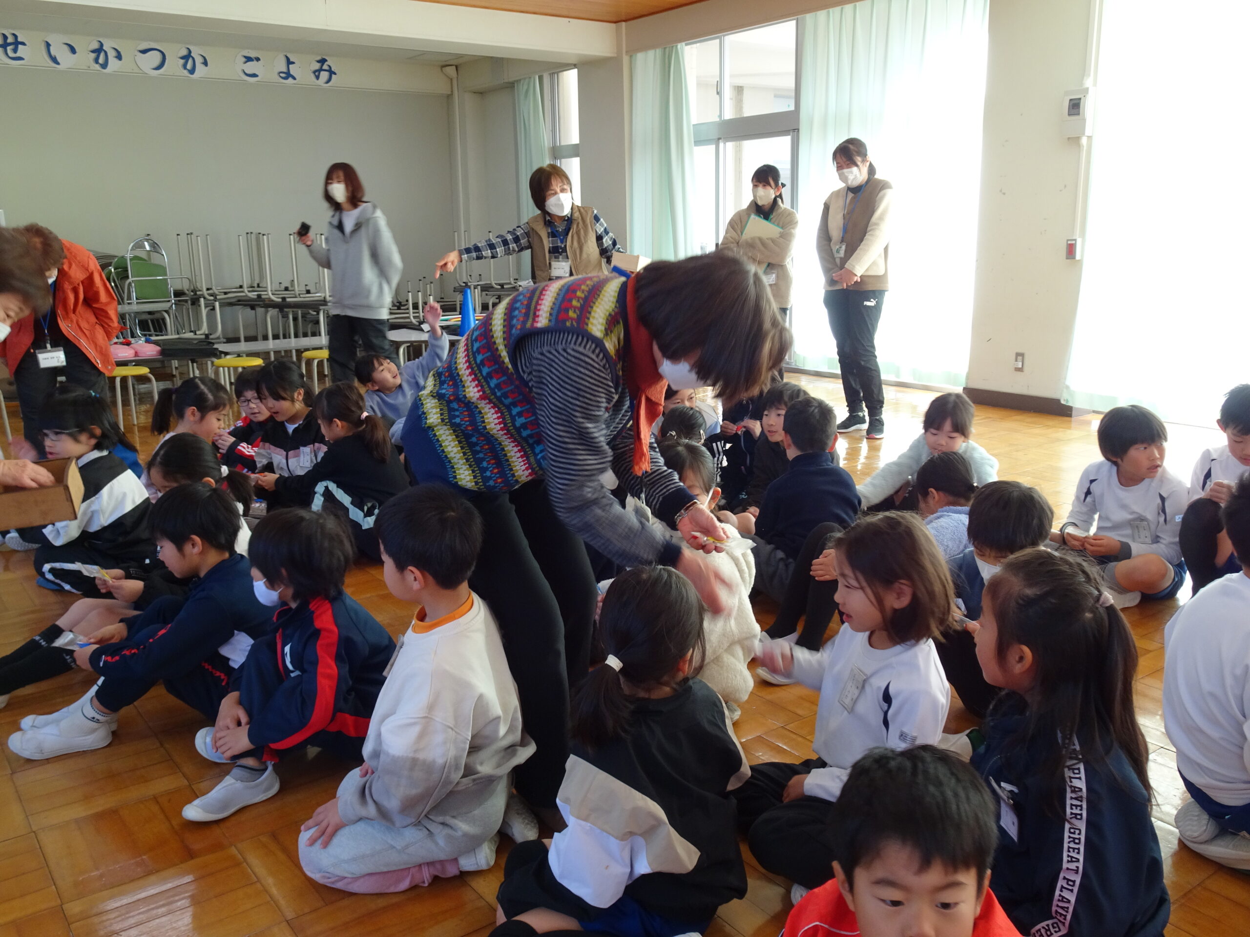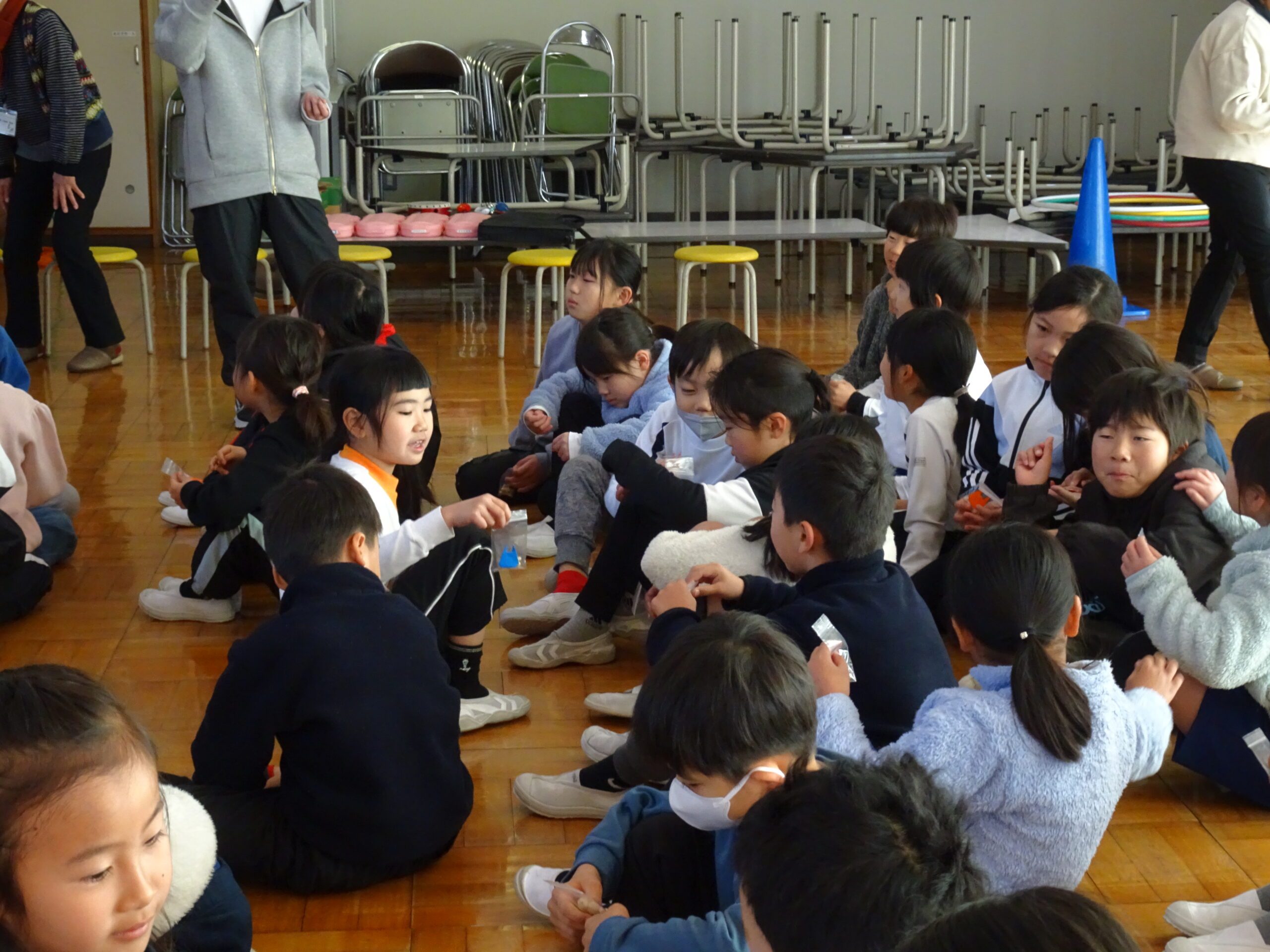 【1・2年生】節分集会がありました 2025/01/29 2時間目に節分集会がおこなわれました。1年生と2年生は朝から楽しみにしていて、ワクワクしながら登校してきました。 読み聞かせボランティアおとぎの国の皆さんが中心となって、節分という年中行事の意味や「豆にはすごいパワーがあるんだよ」ということを教えてくれました。 クイズや読み聞かせもあって、楽しい時間となりました。 ありがとうございました。
